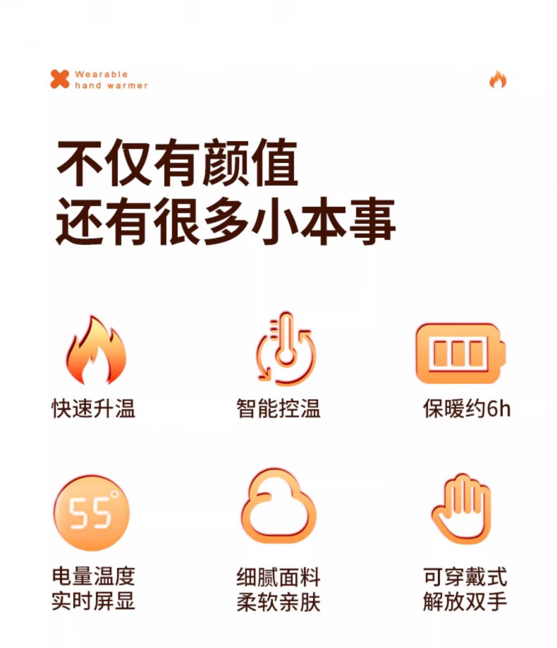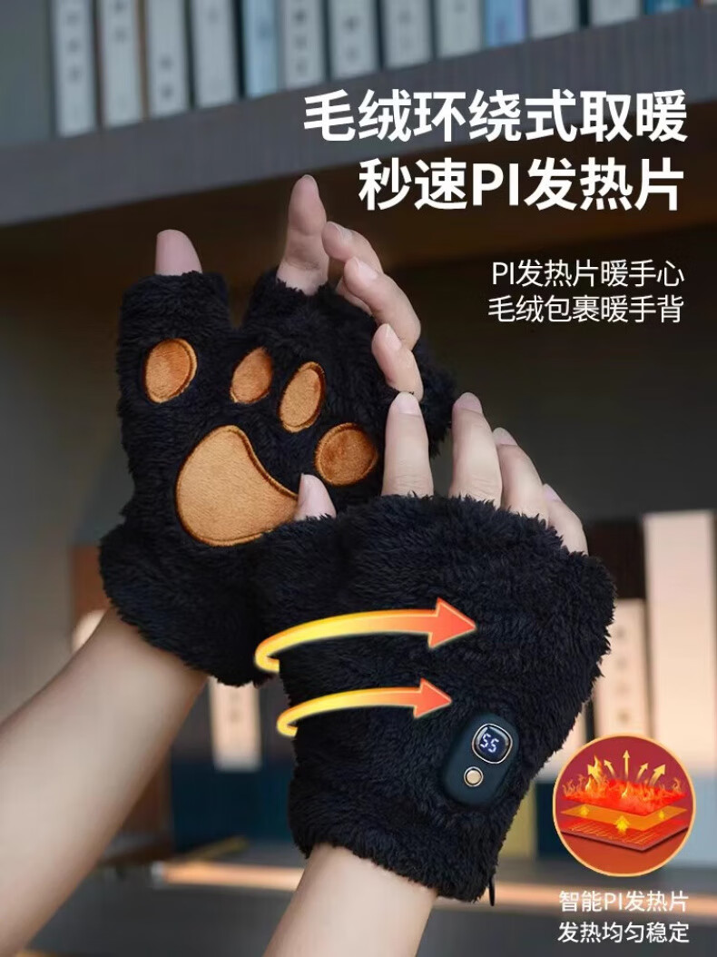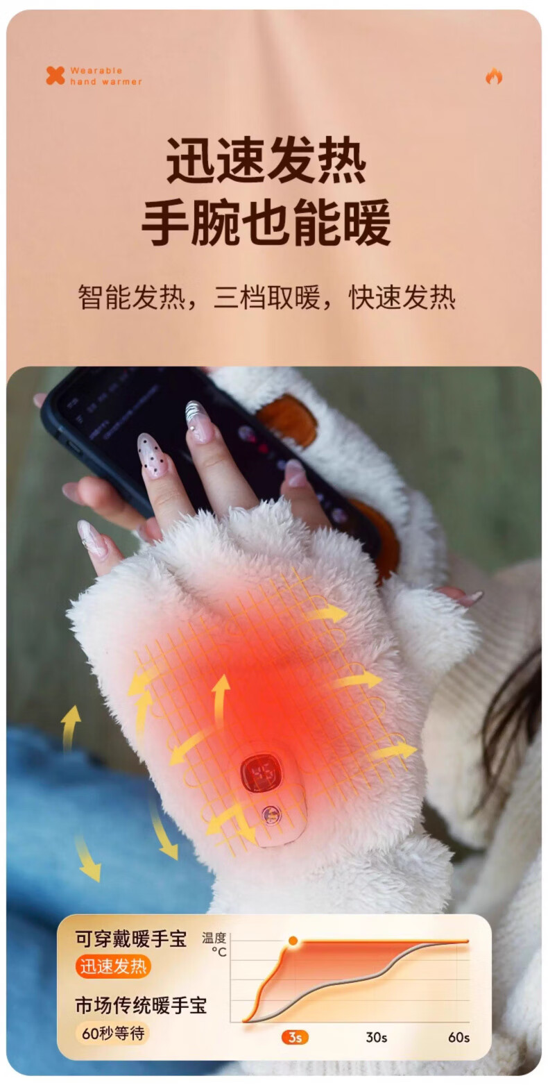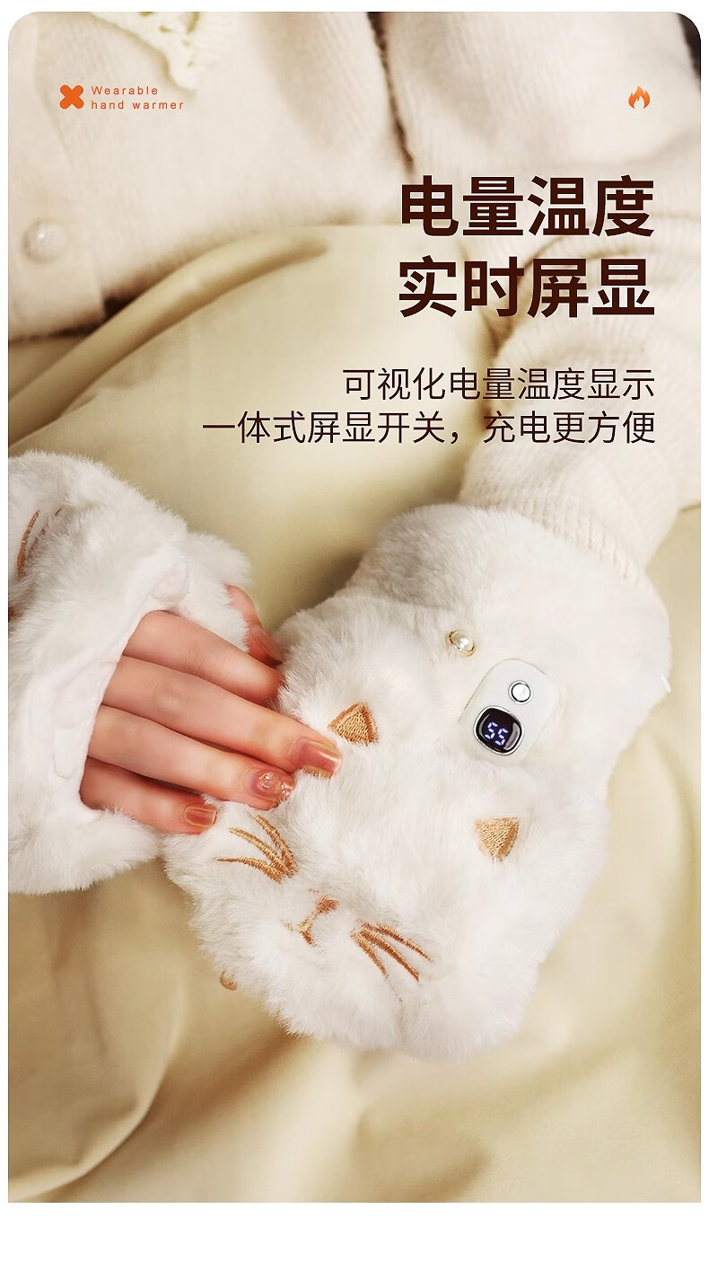 AILUKI日本智能电加热手套自发热二合一新款暖手宝发热充电暖手神器 团购 五档调温/屏幕显示