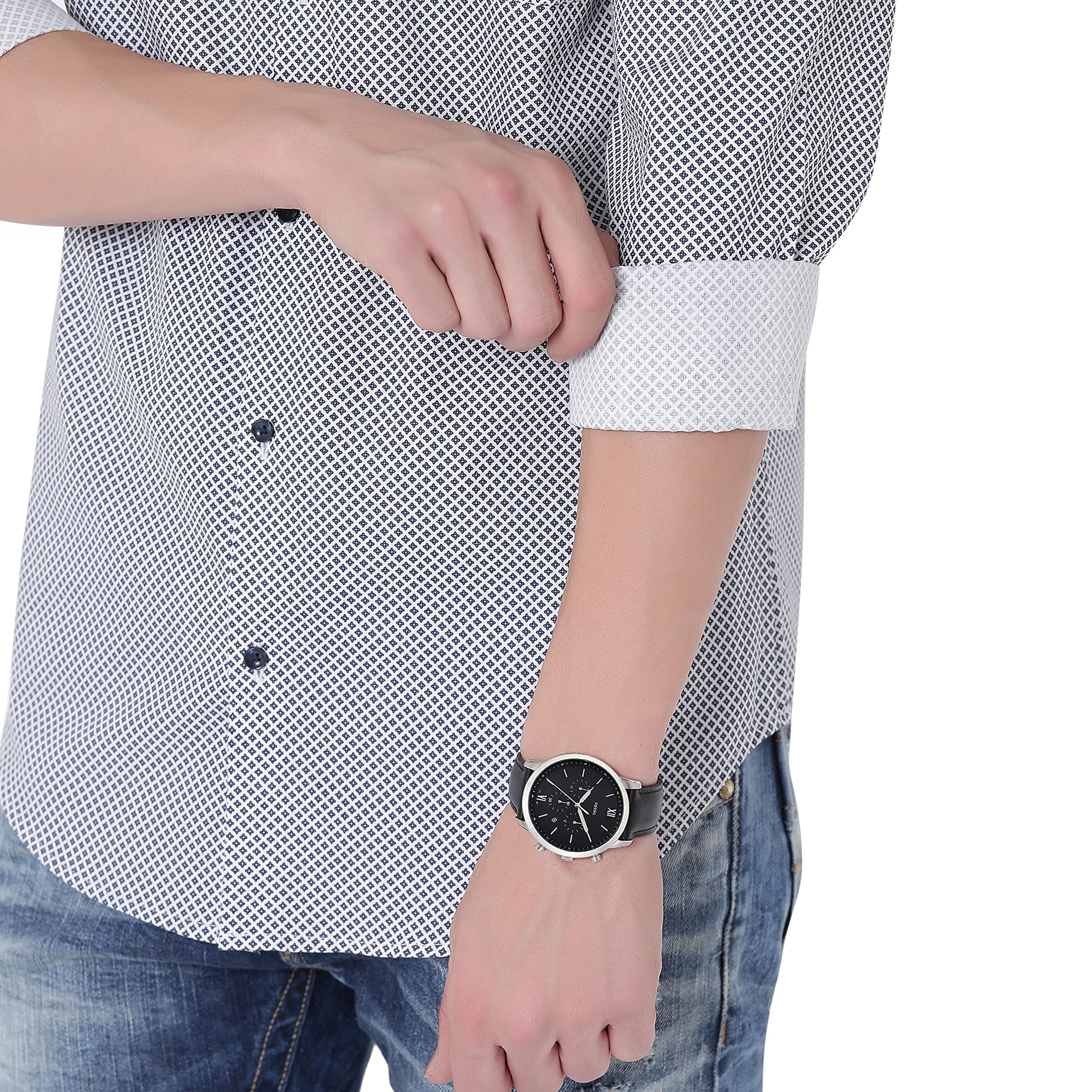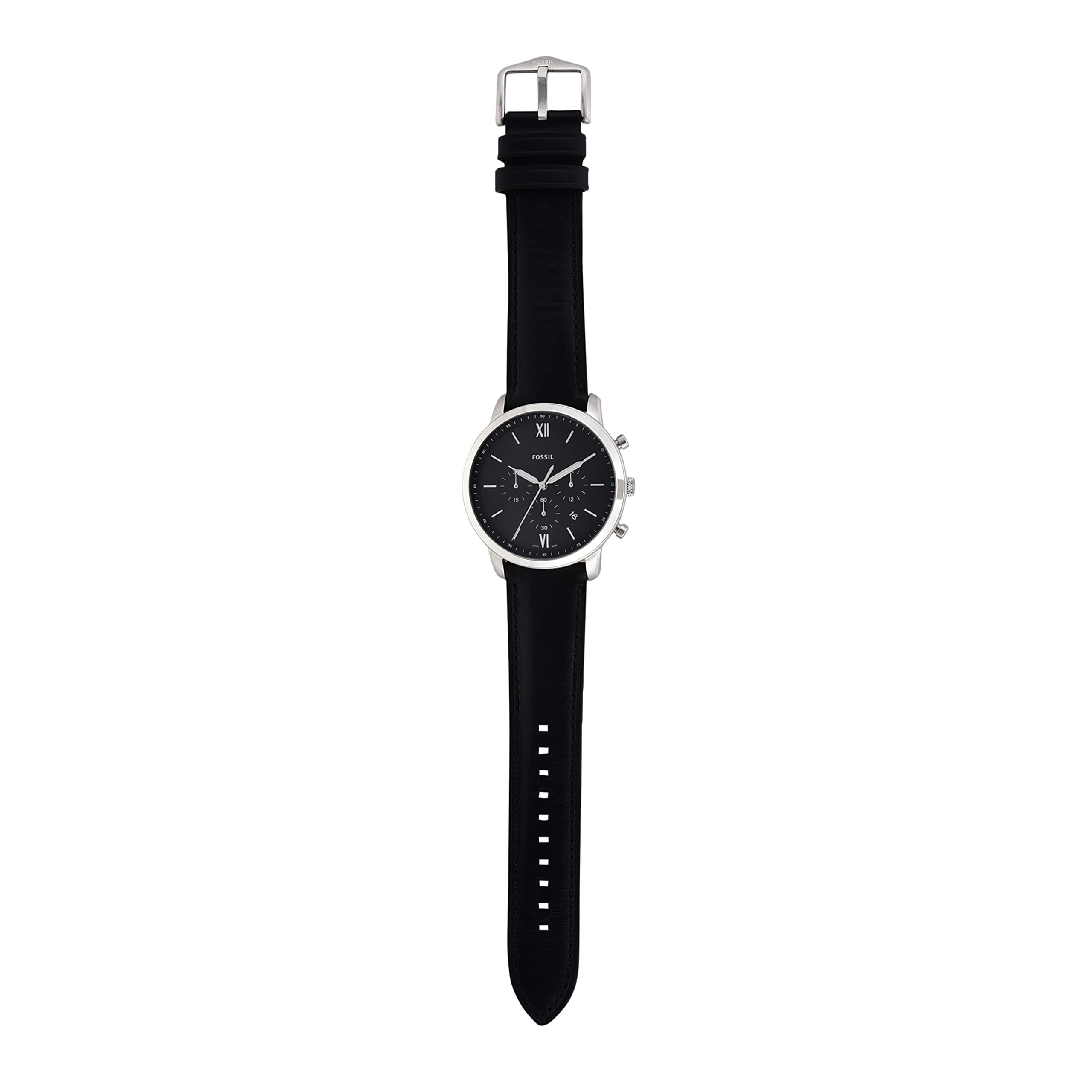 Fossil Men's Neutra Quartz Stainless Steel and Leather Silver, Black 44MM