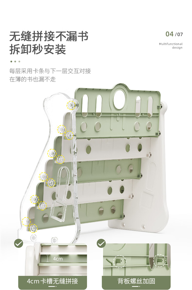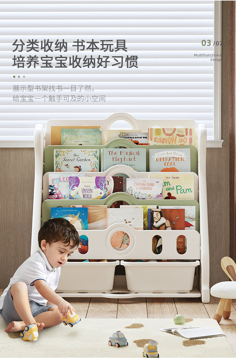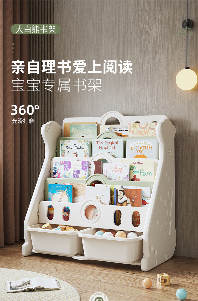 哈比树 儿童书架家用宝宝绘本架幼儿园书柜婴幼儿玩具收纳置物五层套装