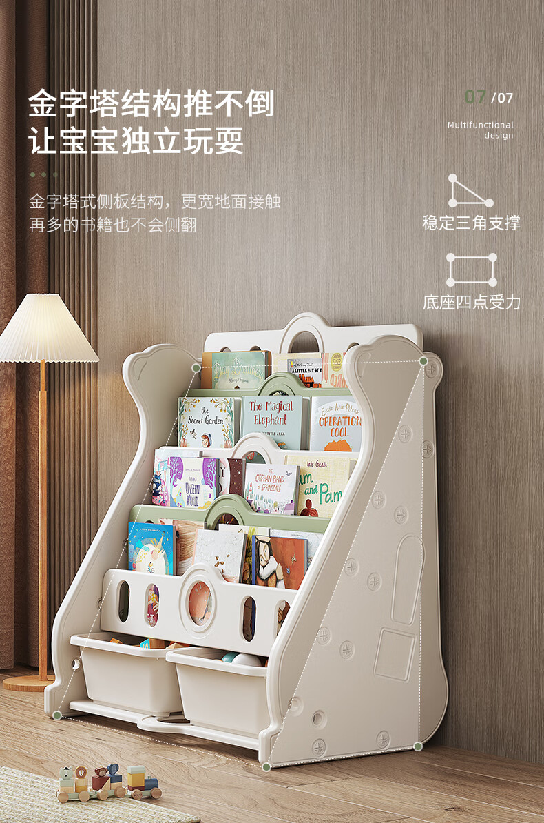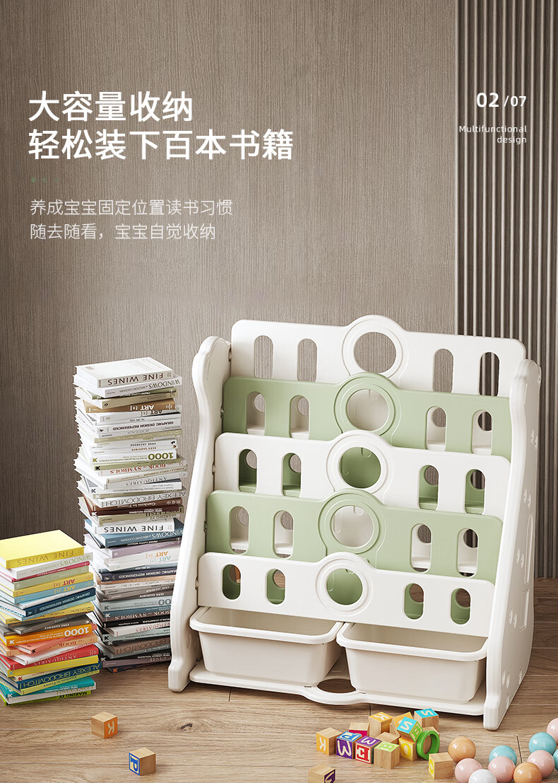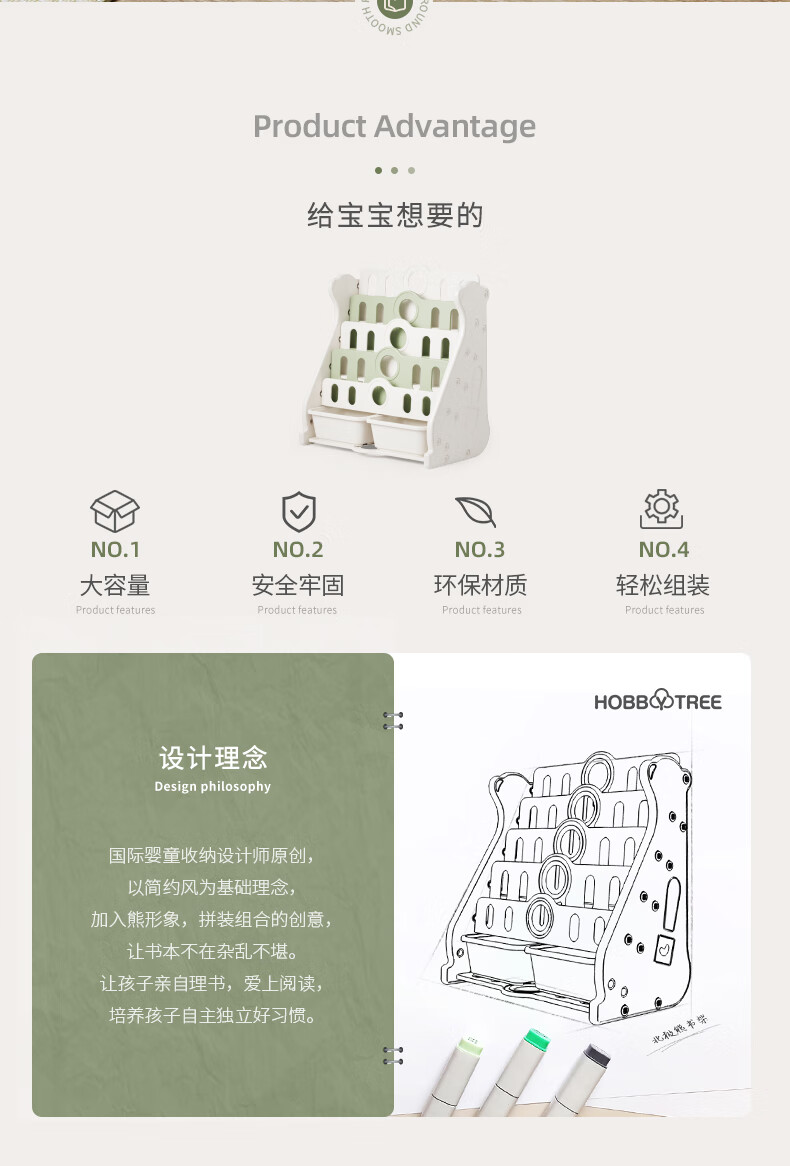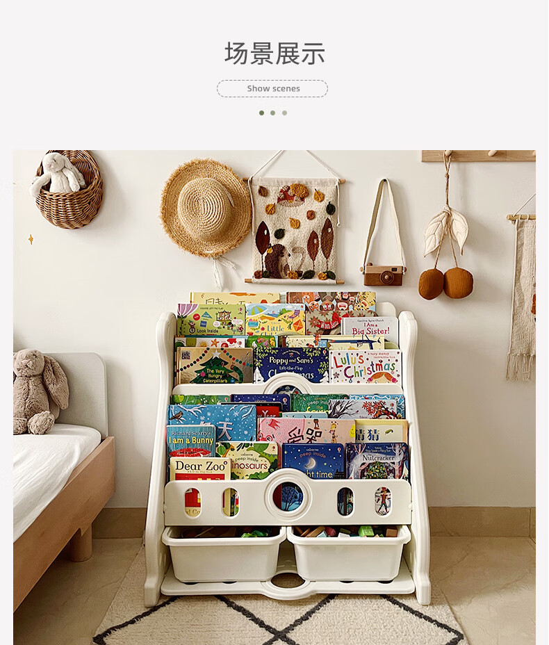 哈比树 儿童书架家用宝宝绘本架幼儿园书柜婴幼儿玩具收纳置物五层套装