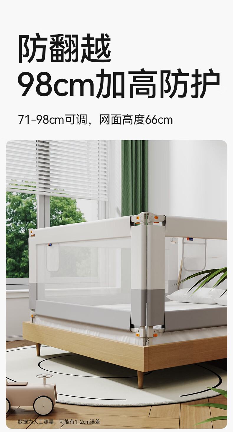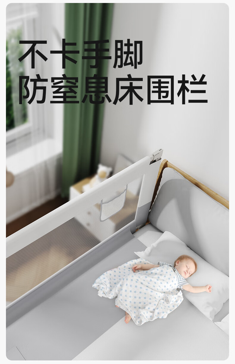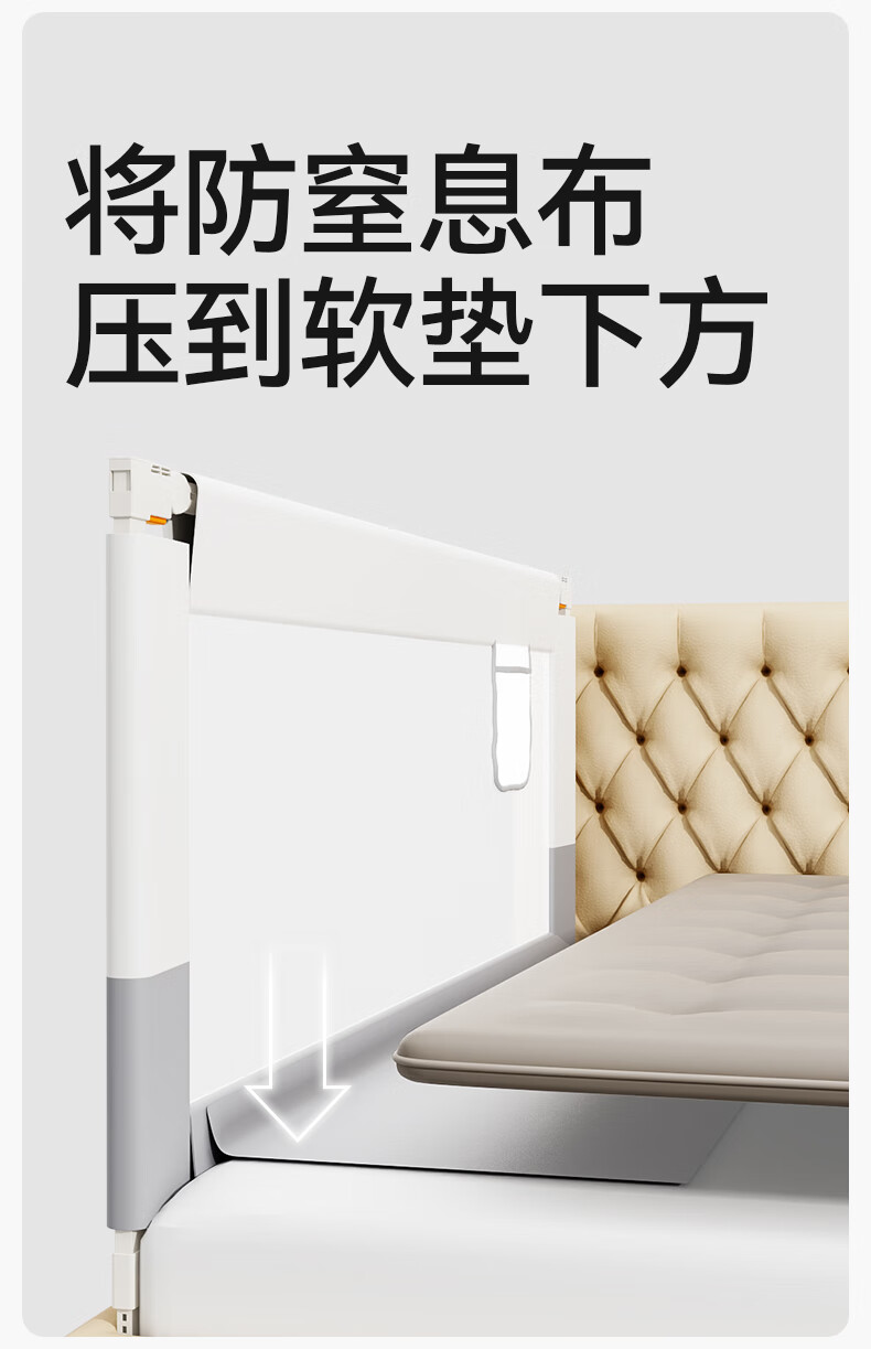 慕卡索宝宝床护栏防摔床围栏婴儿童安全护栏床边防护栏床上防窒息床围挡 月光白 2.0米/单面装
