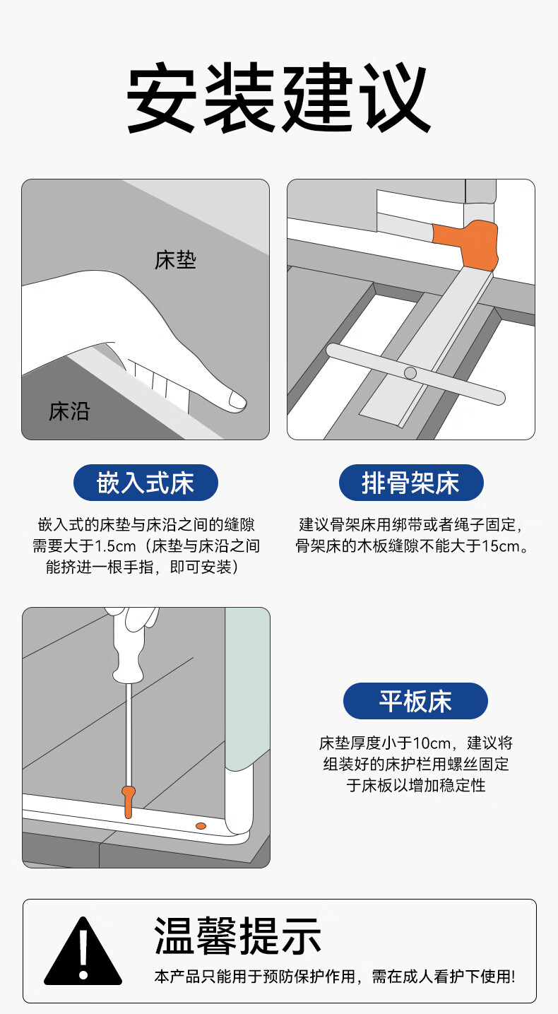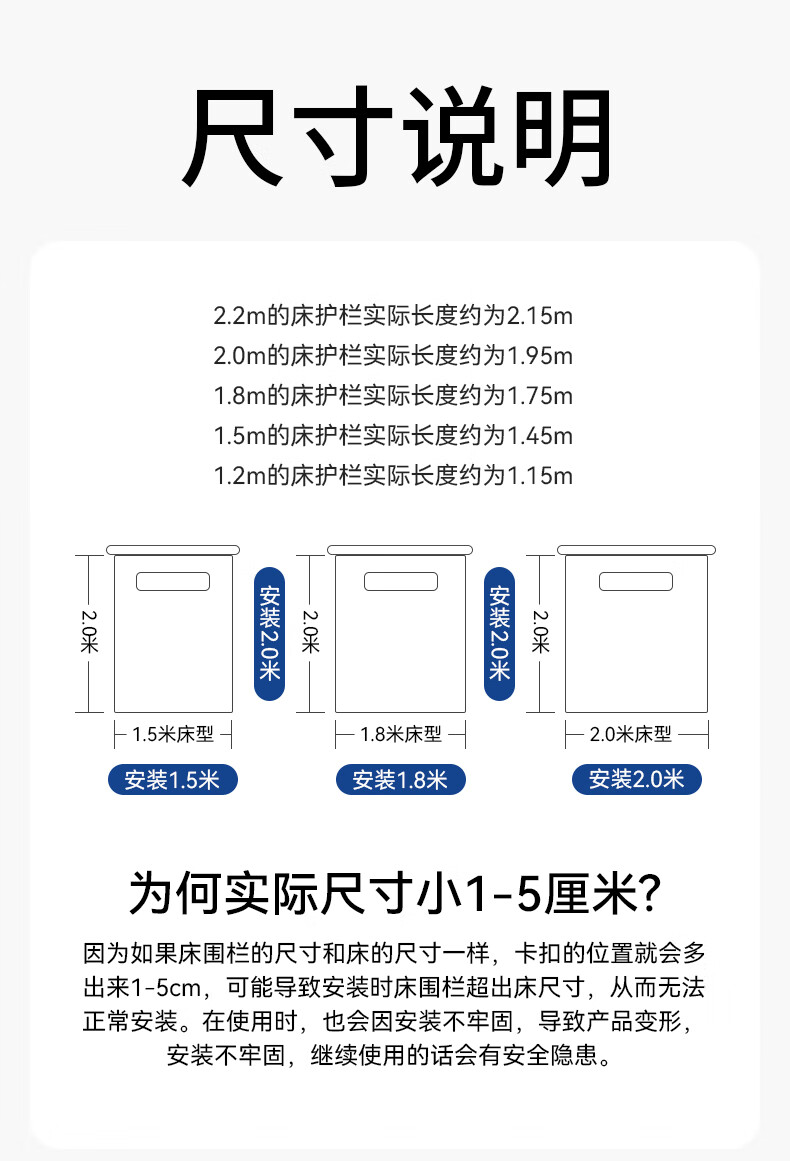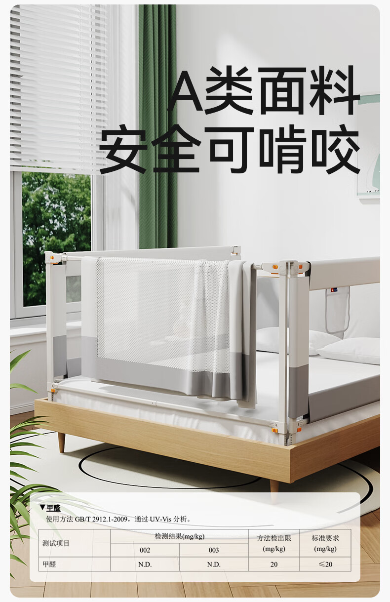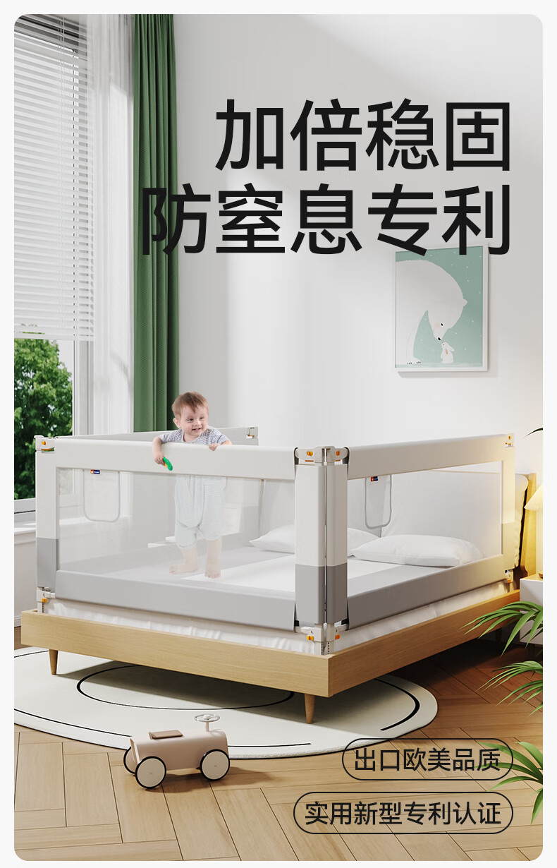 慕卡索宝宝床护栏防摔床围栏婴儿童安全护栏床边防护栏床上防窒息床围挡 月光白 2.0米/单面装