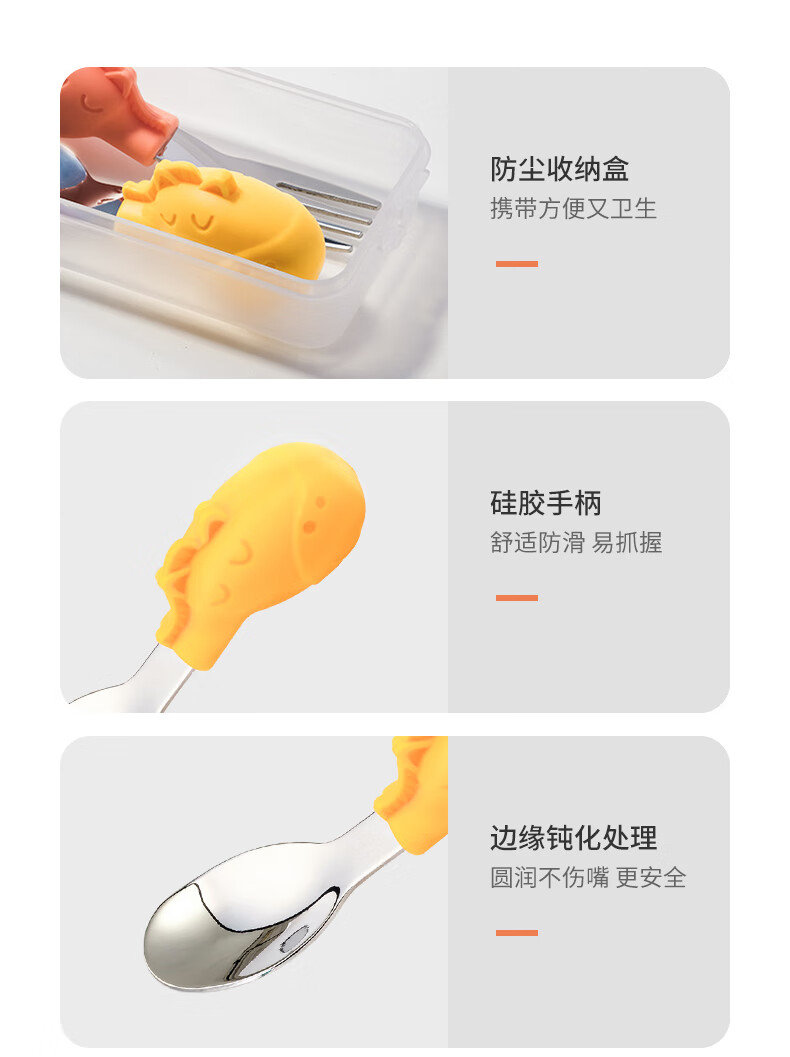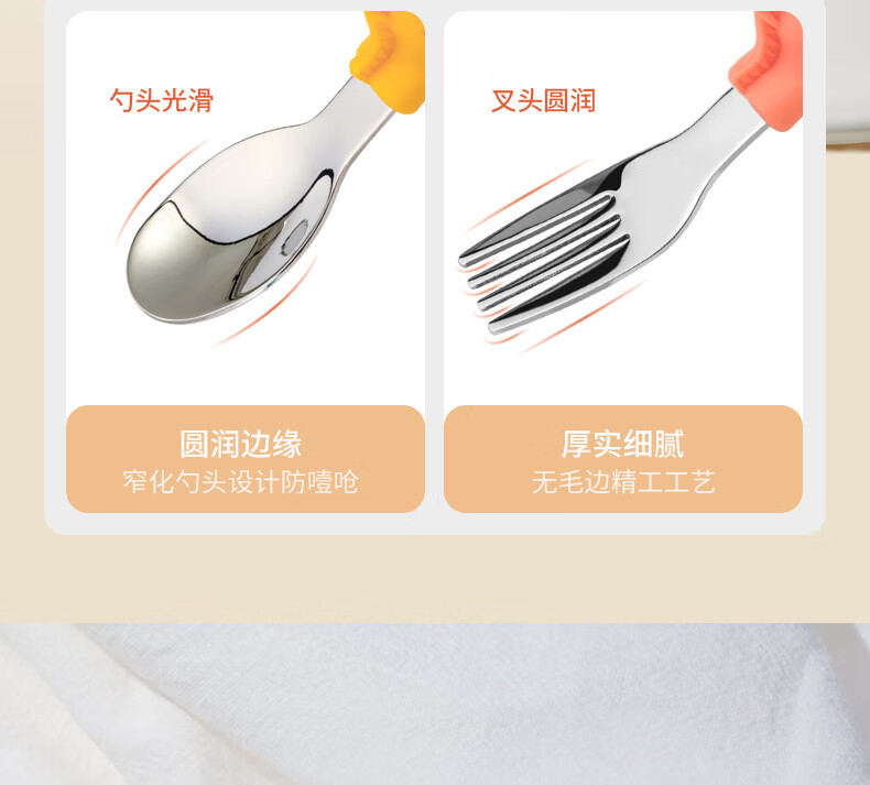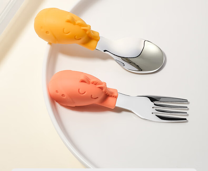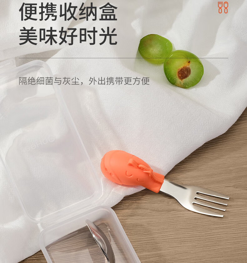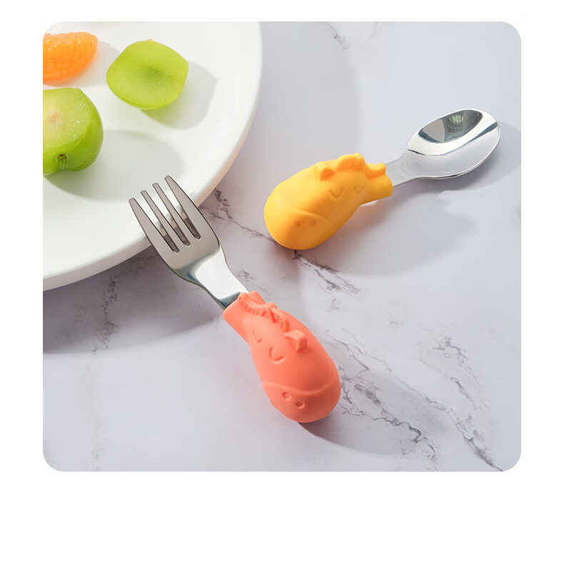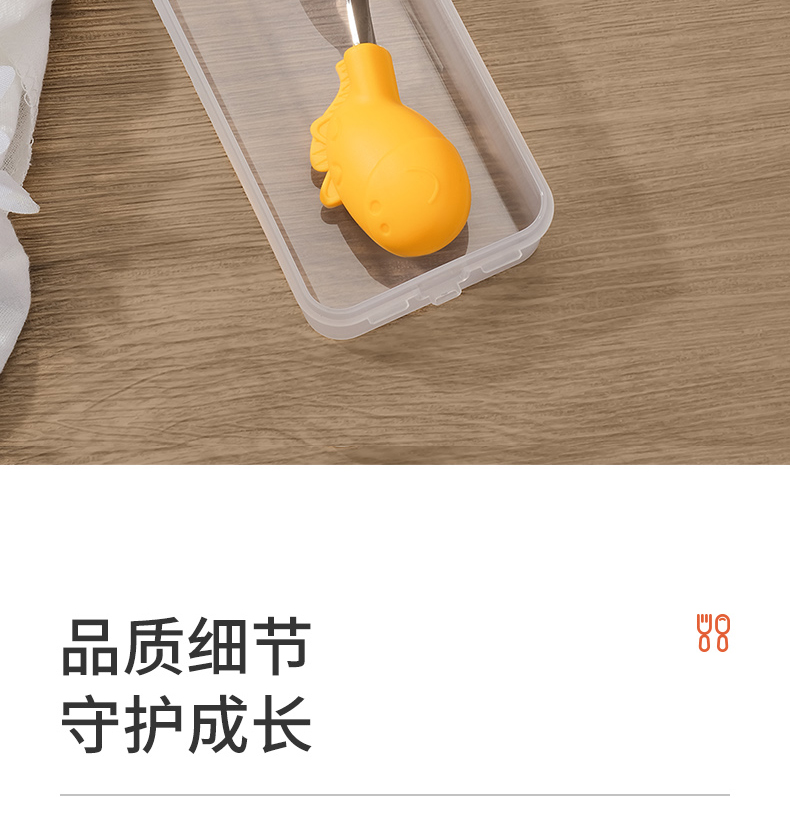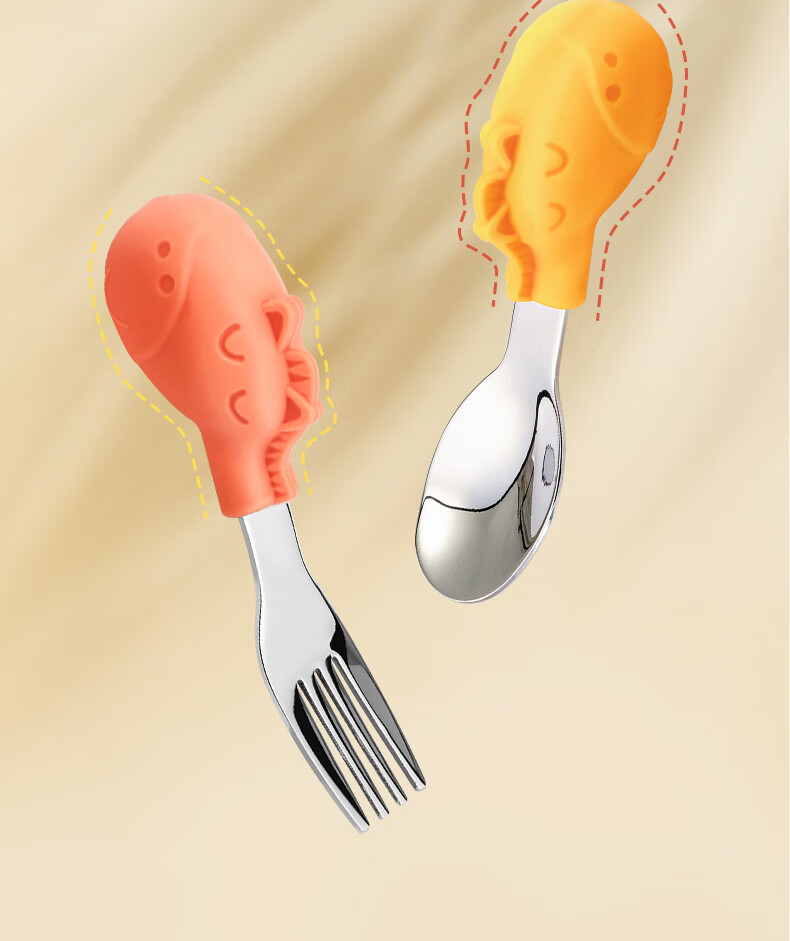 英氏(YEEHOO)宝宝叉勺学吃饭短柄勺子婴儿训练勺叉辅食勺不锈钢儿童餐具装 橙黄组合+收纳盒