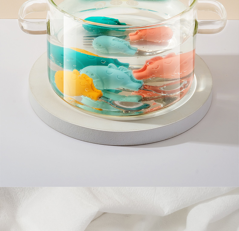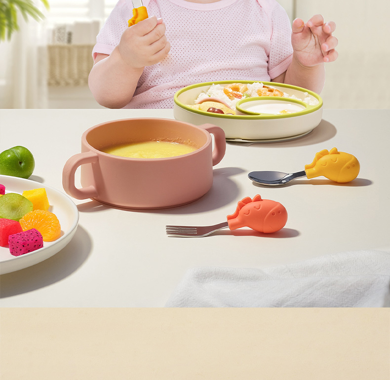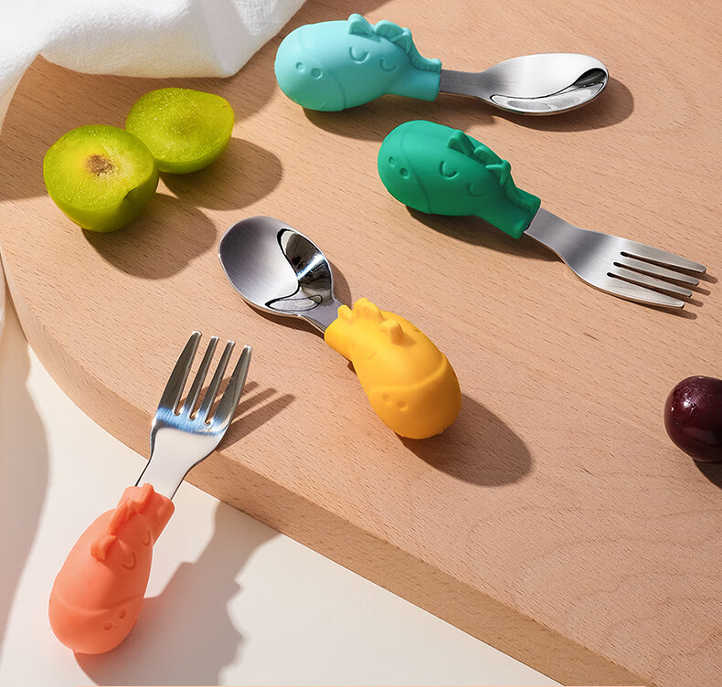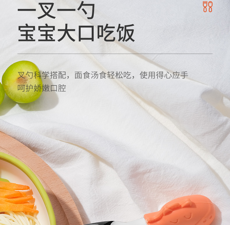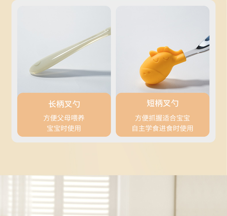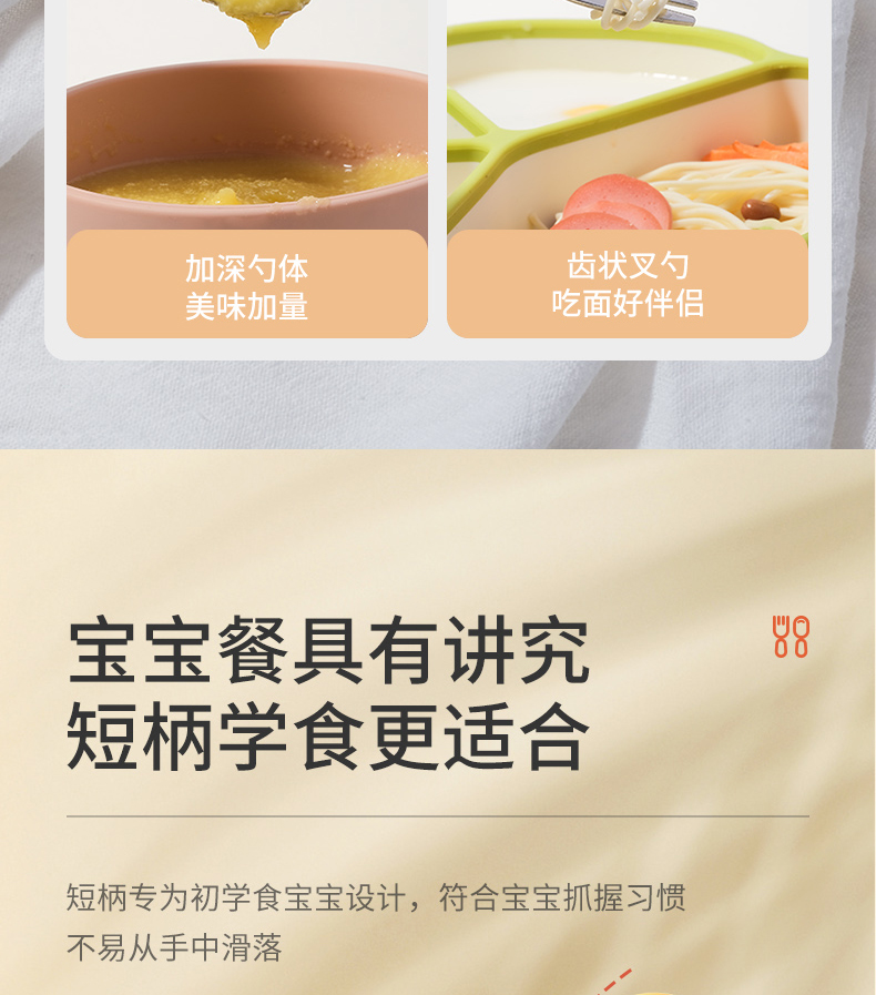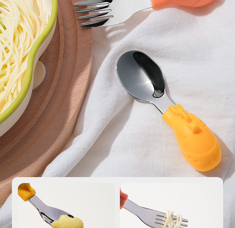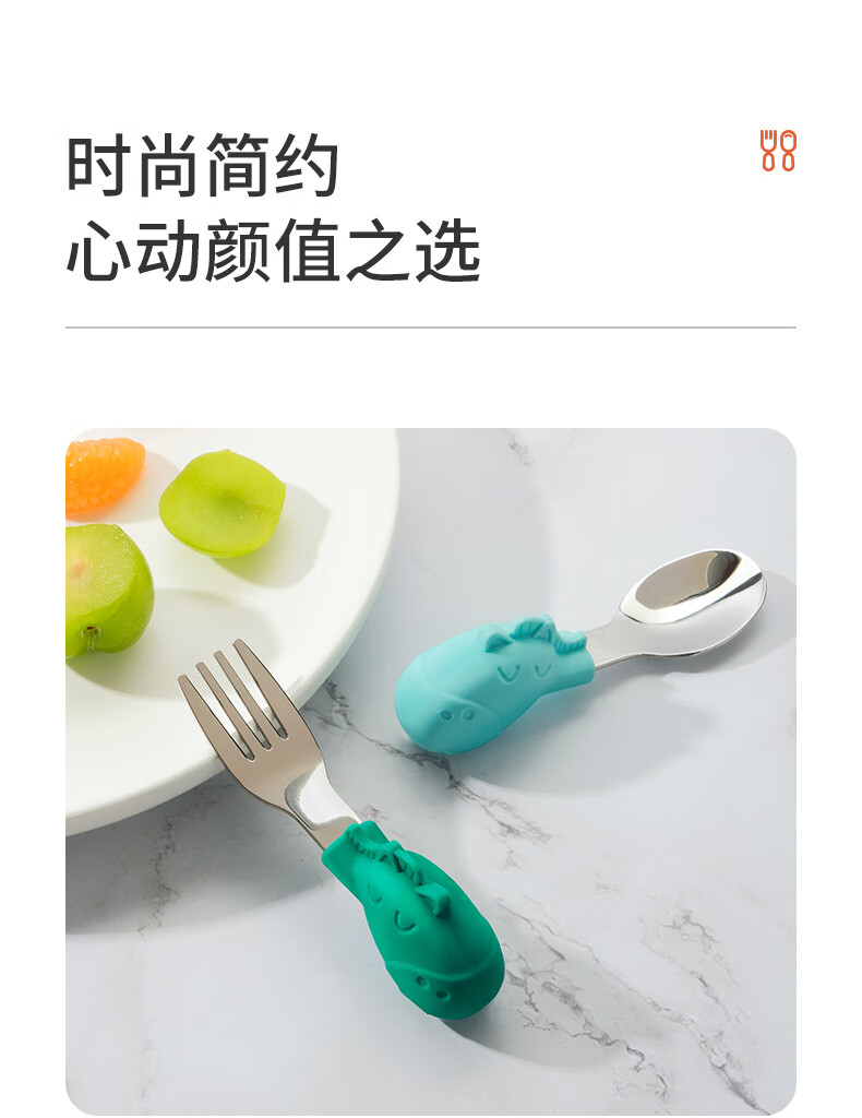 英氏(YEEHOO)宝宝叉勺学吃饭短柄勺子婴儿训练勺叉辅食勺不锈钢儿童餐具装 橙黄组合+收纳盒