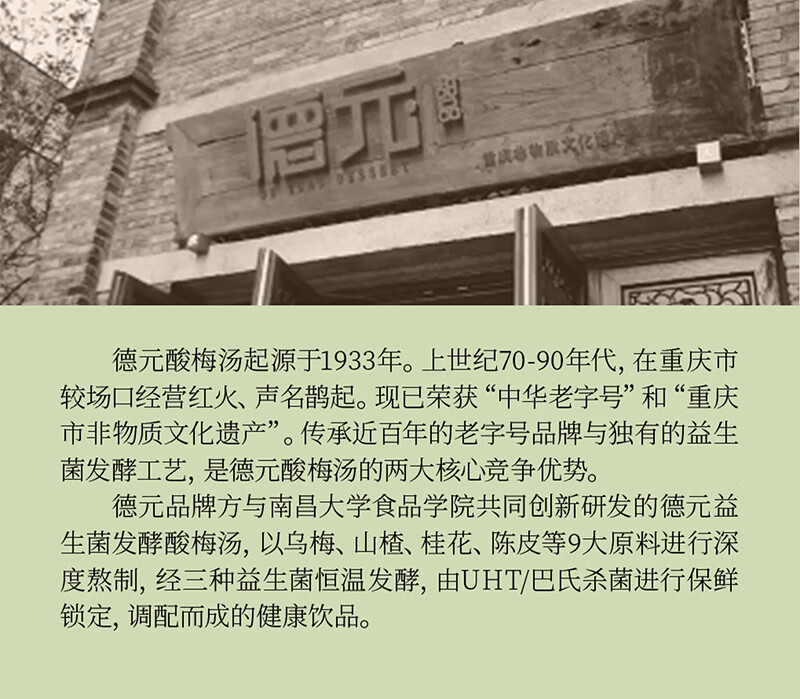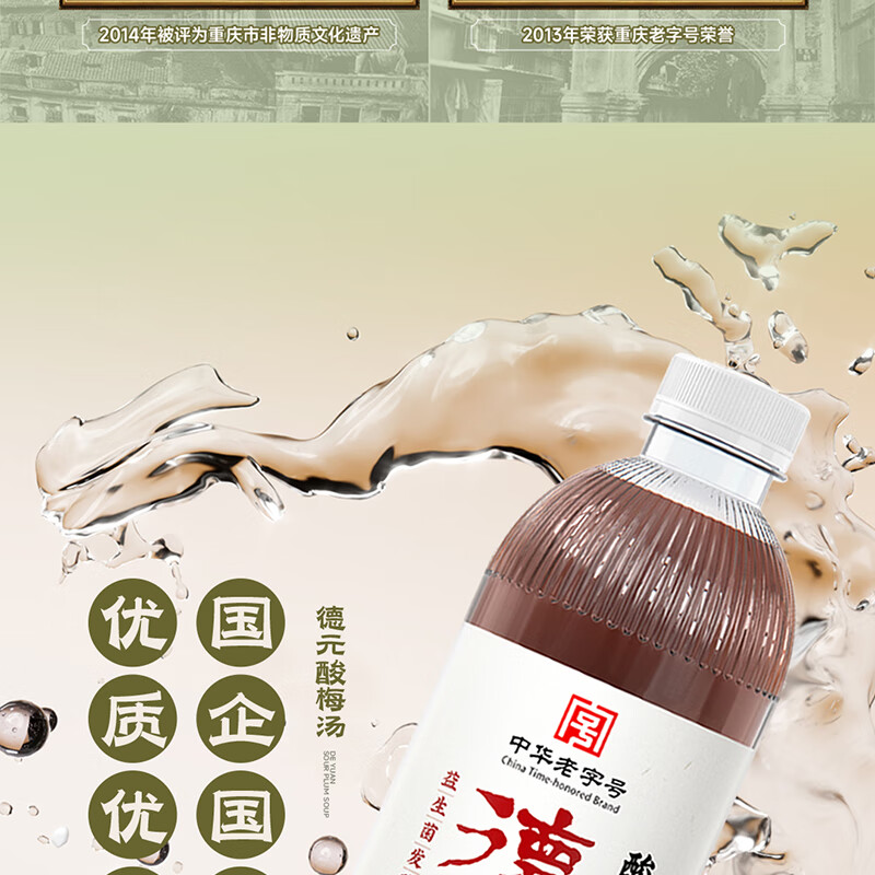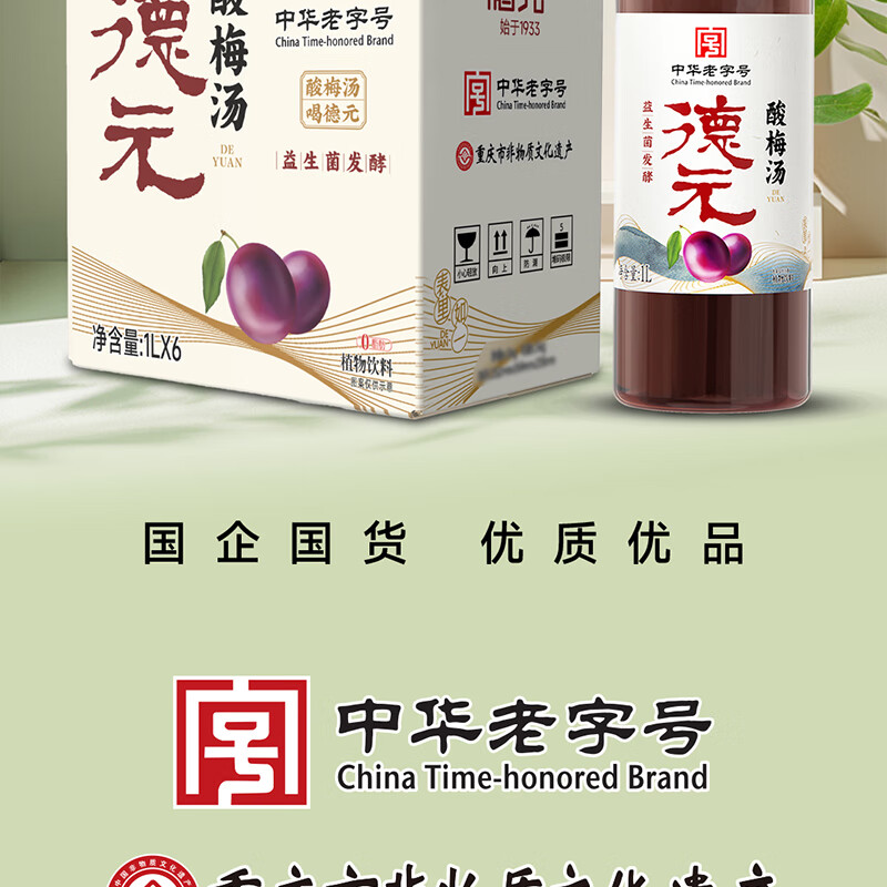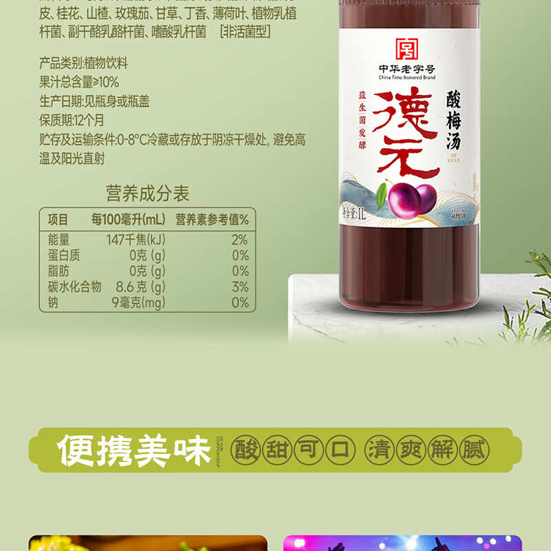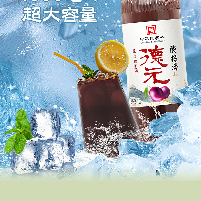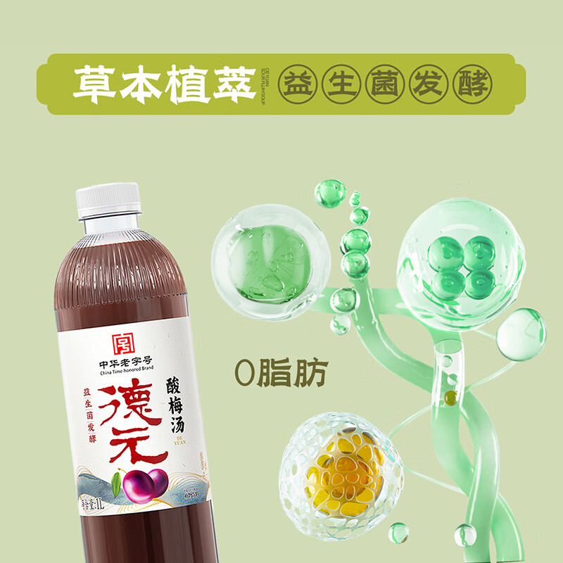 德元酸梅汤果汁饮料益生菌发酵酸梅汤饮料火锅解辣大容量1L家庭装 1L*2瓶