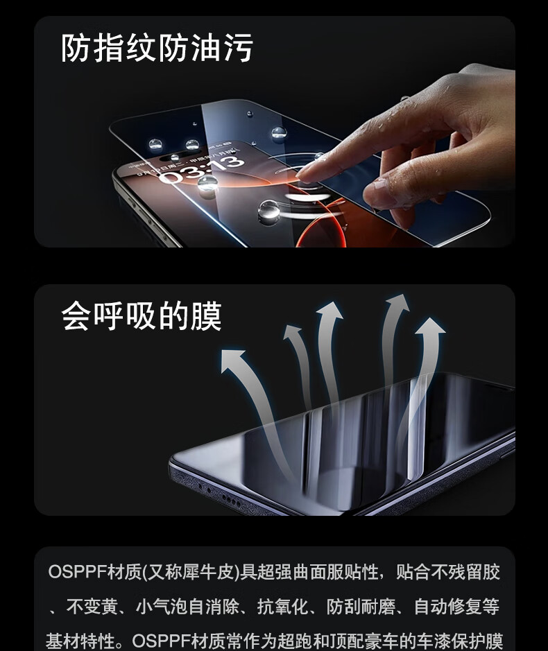 NE适用OPPO一加15/13T/12/11手机膜屏幕保护膜ar高清膜防偷窥膜磨砂贴膜防指纹软膜台湾犀牛膜水凝 2片装丨磨砂电竞膜丨无指纹 一加 15
