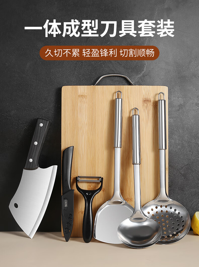 厨房菜板菜刀二合一组合全套装锋利家用锻打切肉切片刀宿舍水果刀 【全套】菜刀菜板七件套