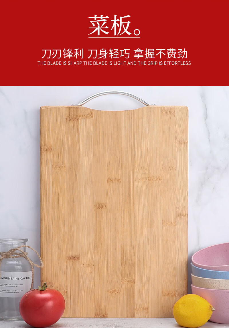 家用竹菜板多功能加厚菜板竹木砧板厨房切菜板案板竹砧板 38*26*1.8 方形