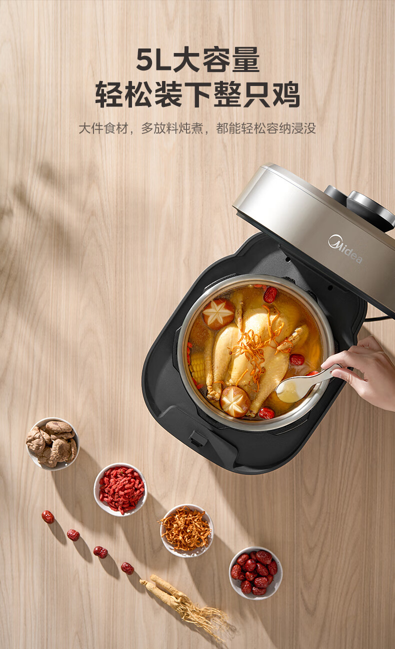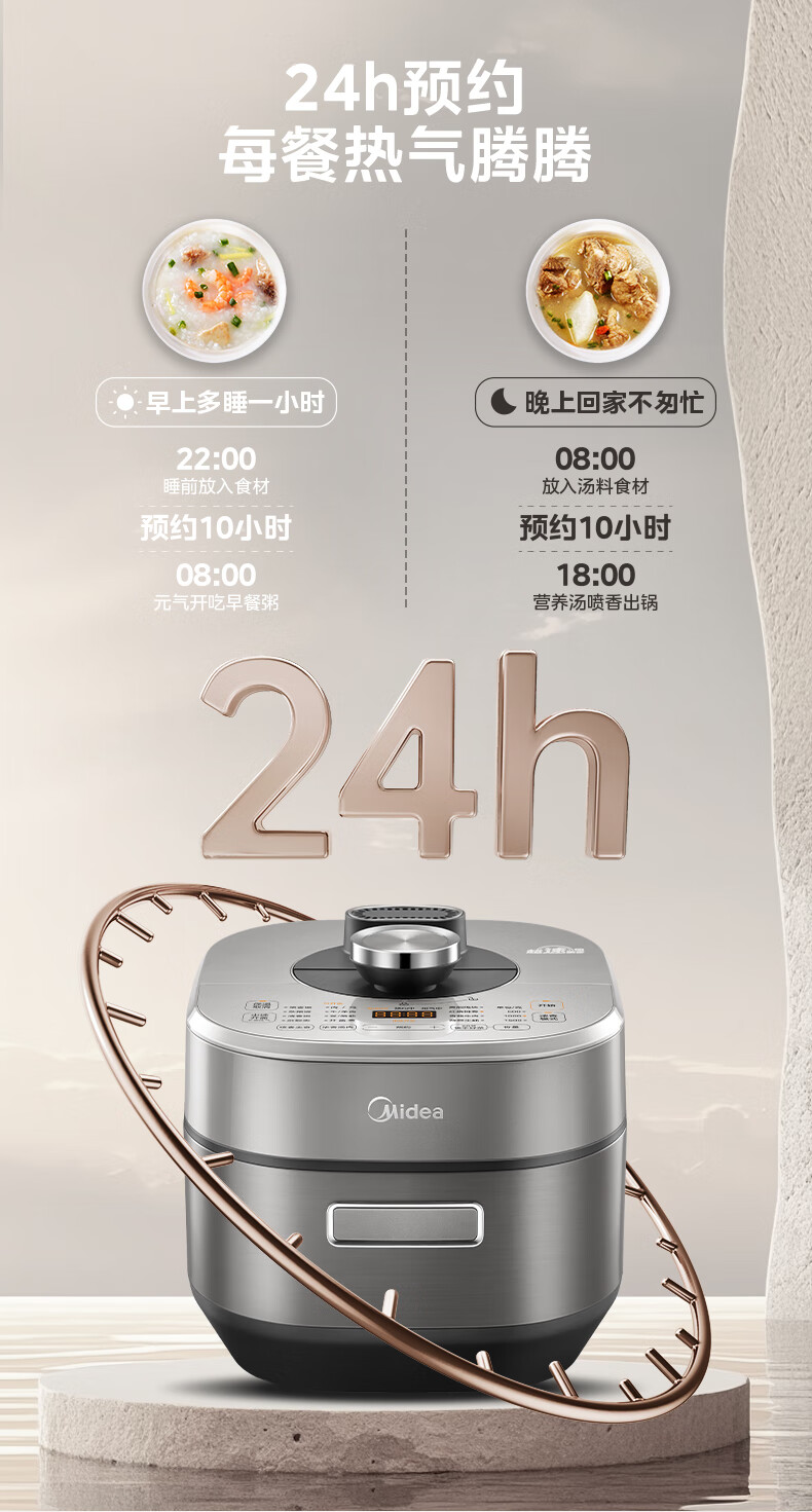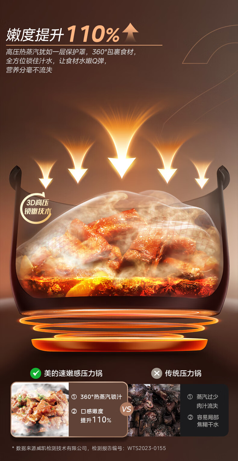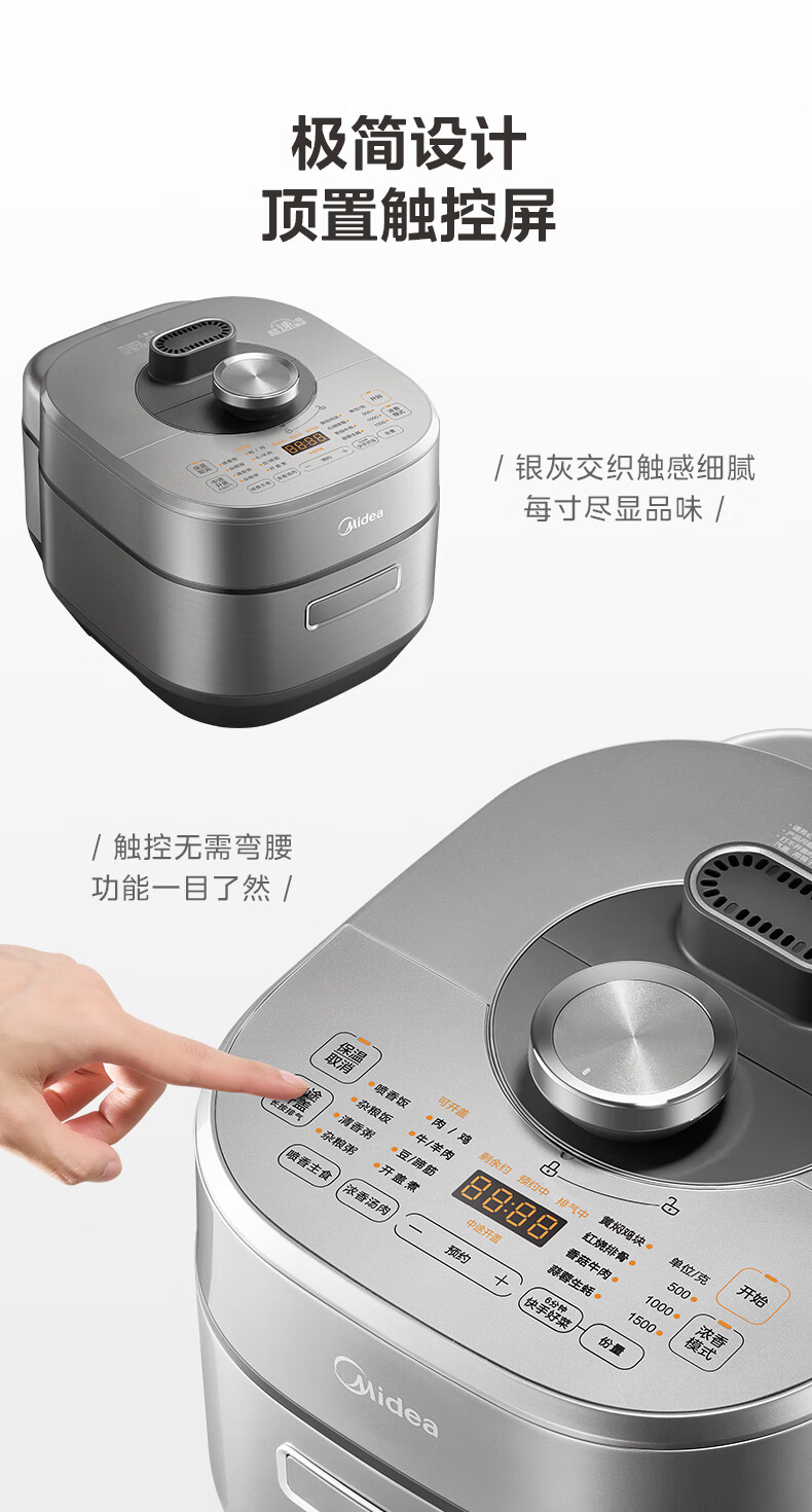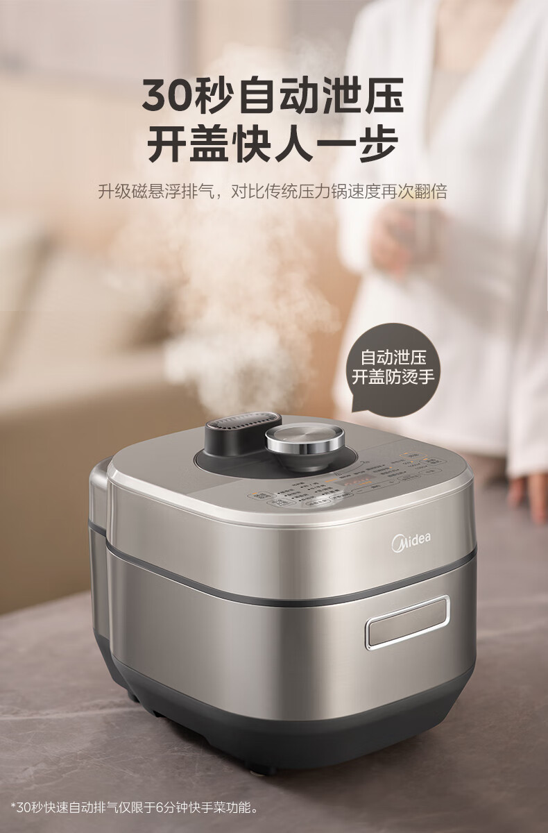 美的(Midea)电压力锅速嫩感6分钟一道菜5L高压锅猛火2200W家用煲汤全自动4-6人电饭煲MY-S572N升级316L钢胆