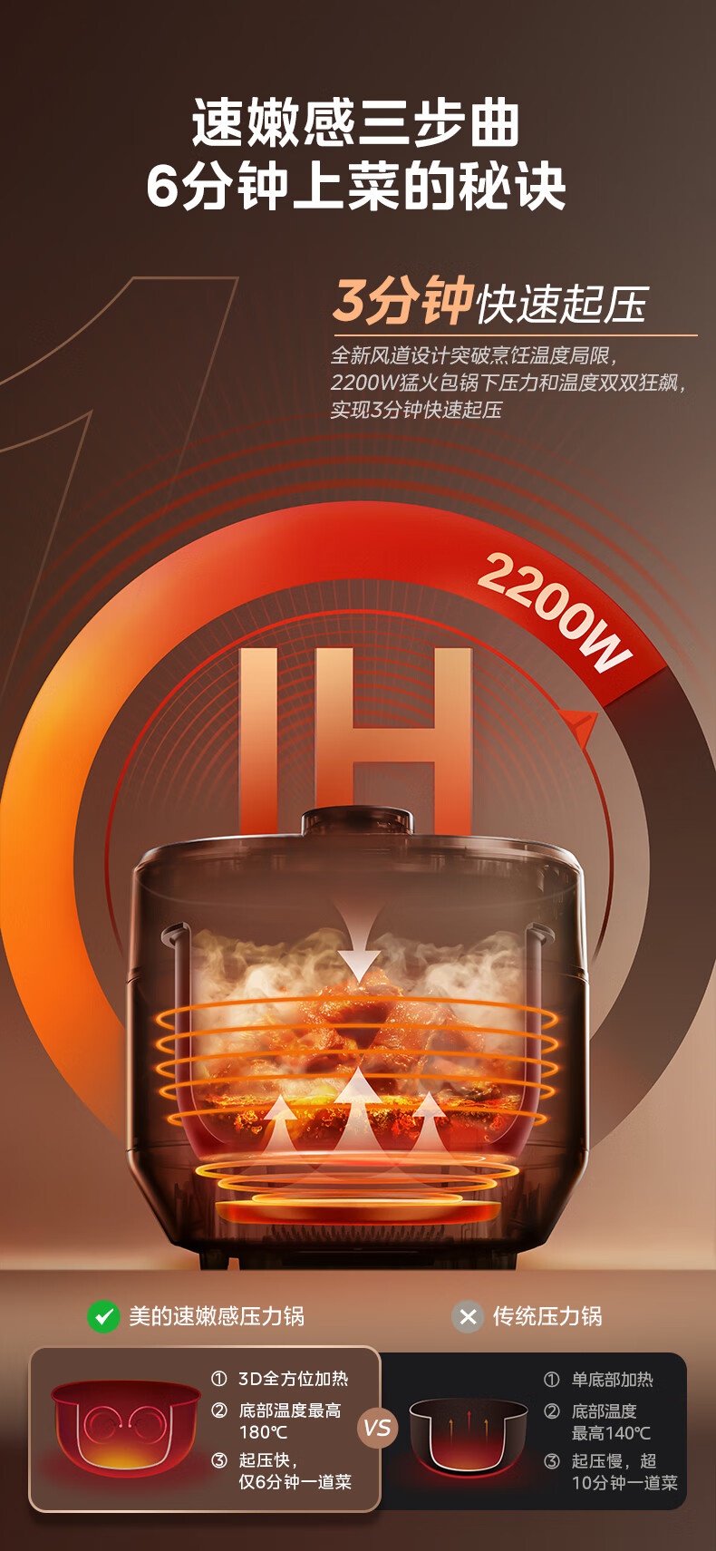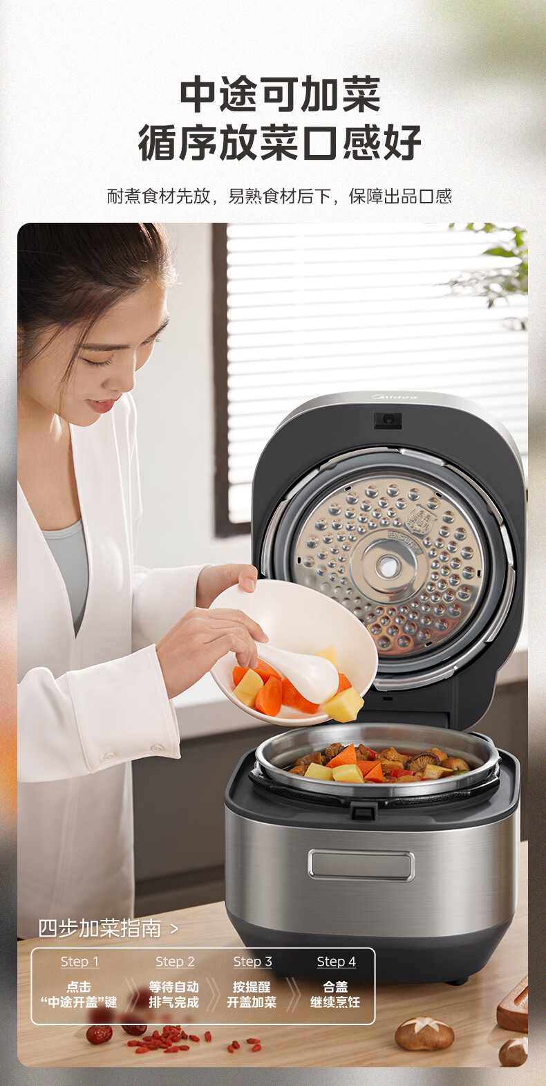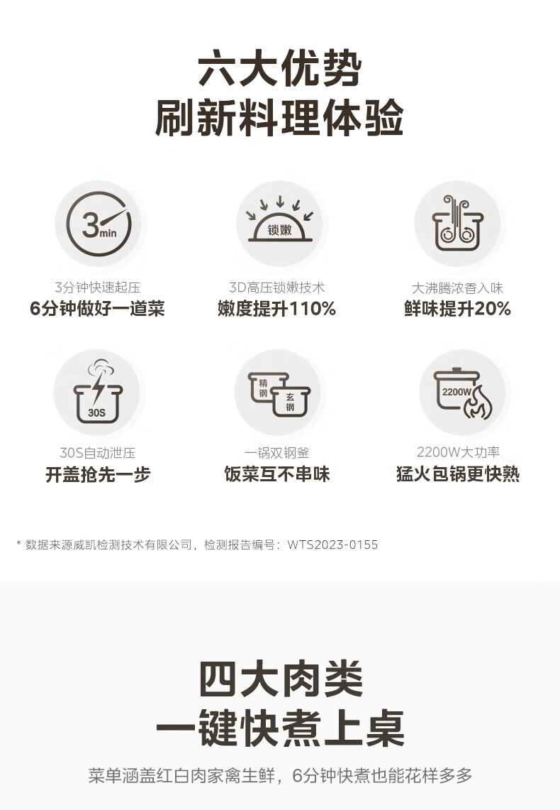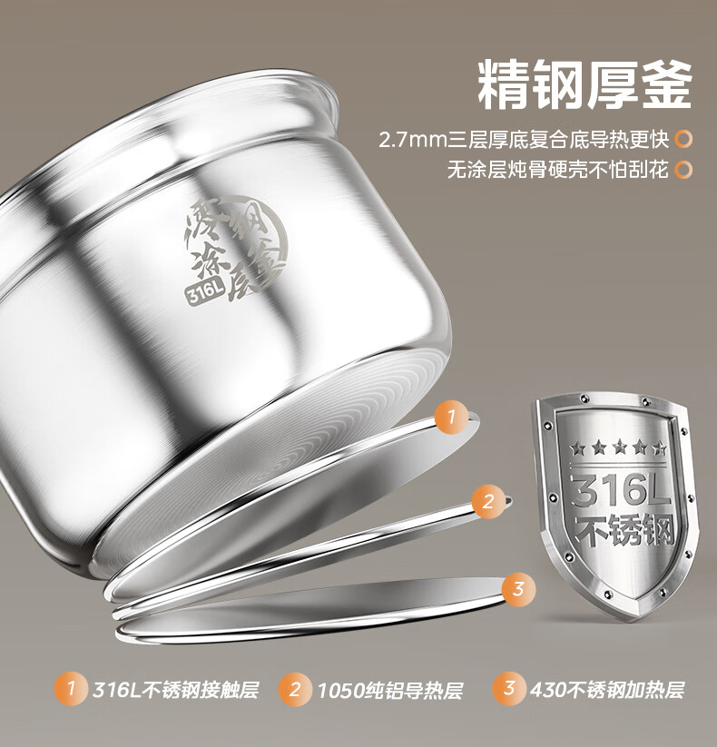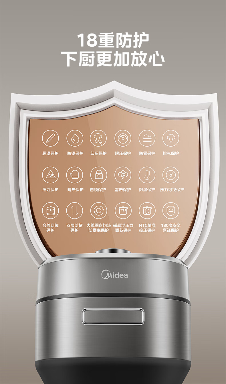 美的(Midea)电压力锅速嫩感6分钟一道菜5L高压锅猛火2200W家用煲汤全自动4-6人电饭煲MY-S572N升级316L钢胆