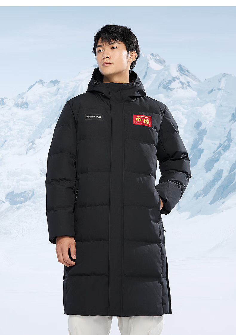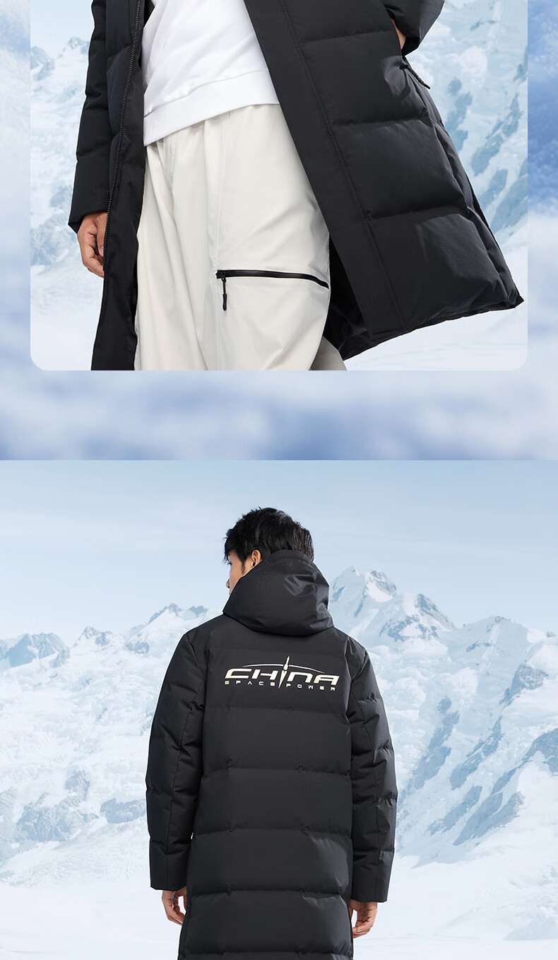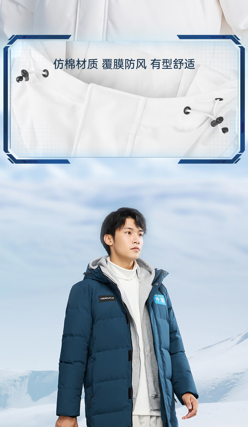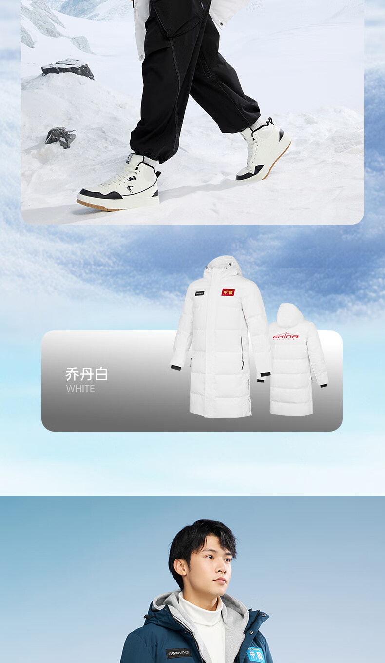 乔丹中国长款羽绒服男秋冬季保暖连帽外套男棉服时尚潮流舒适运动服