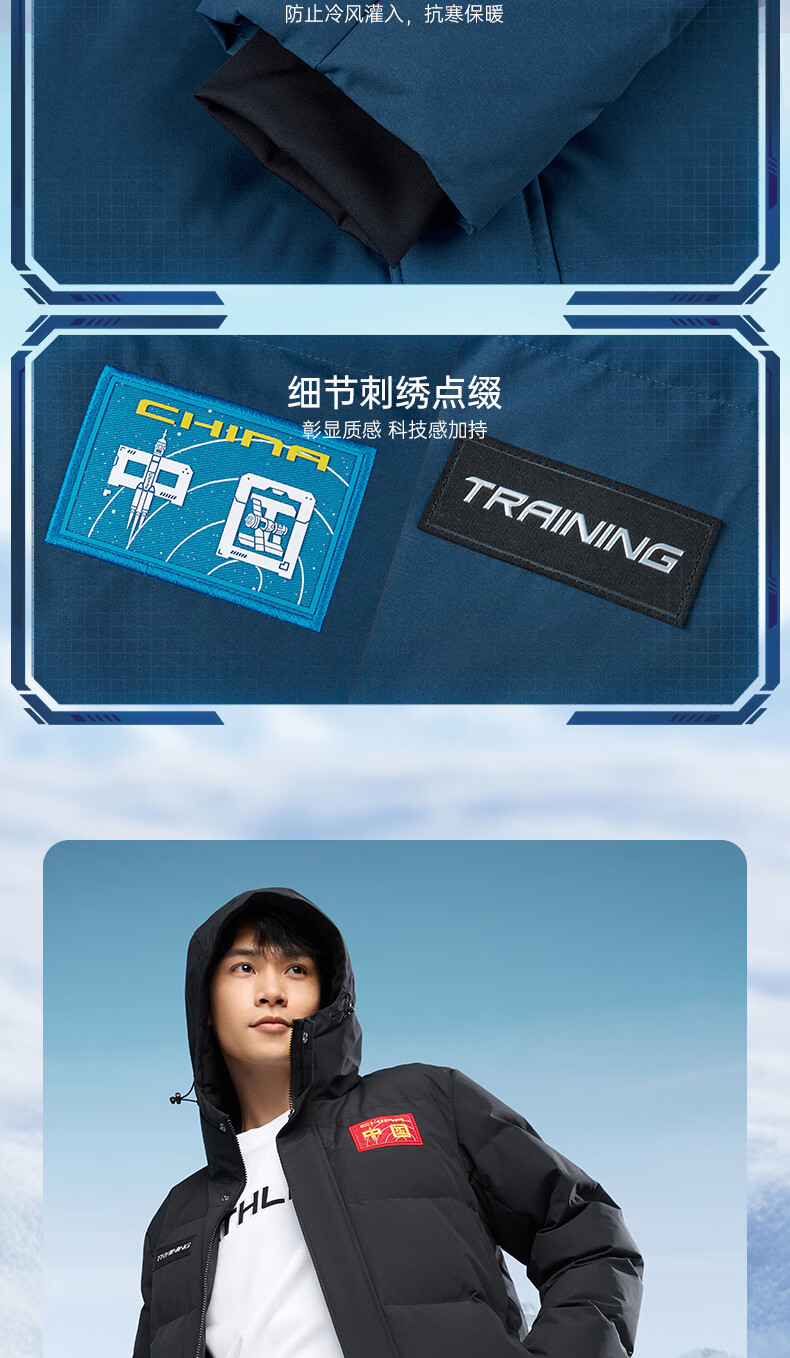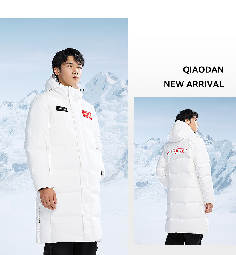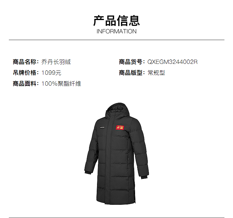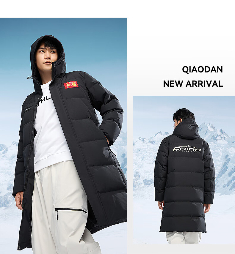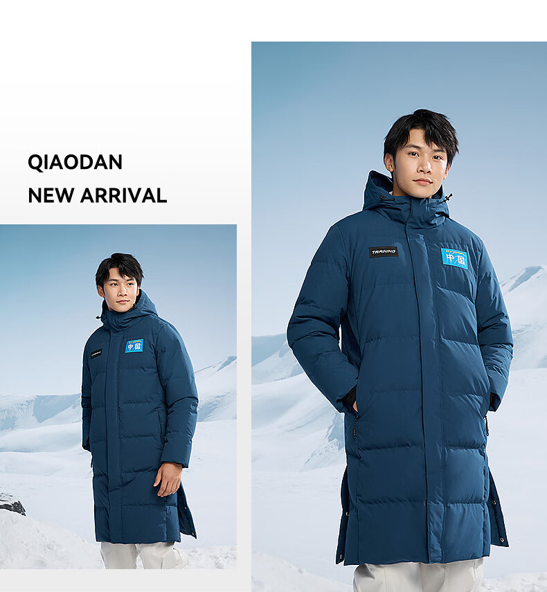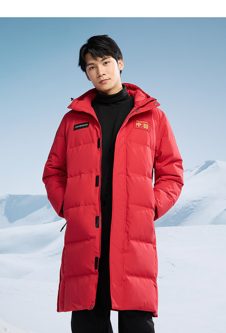 乔丹中国长款羽绒服男秋冬季保暖连帽外套男棉服时尚潮流舒适运动服