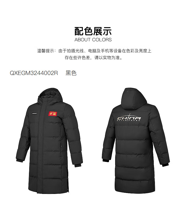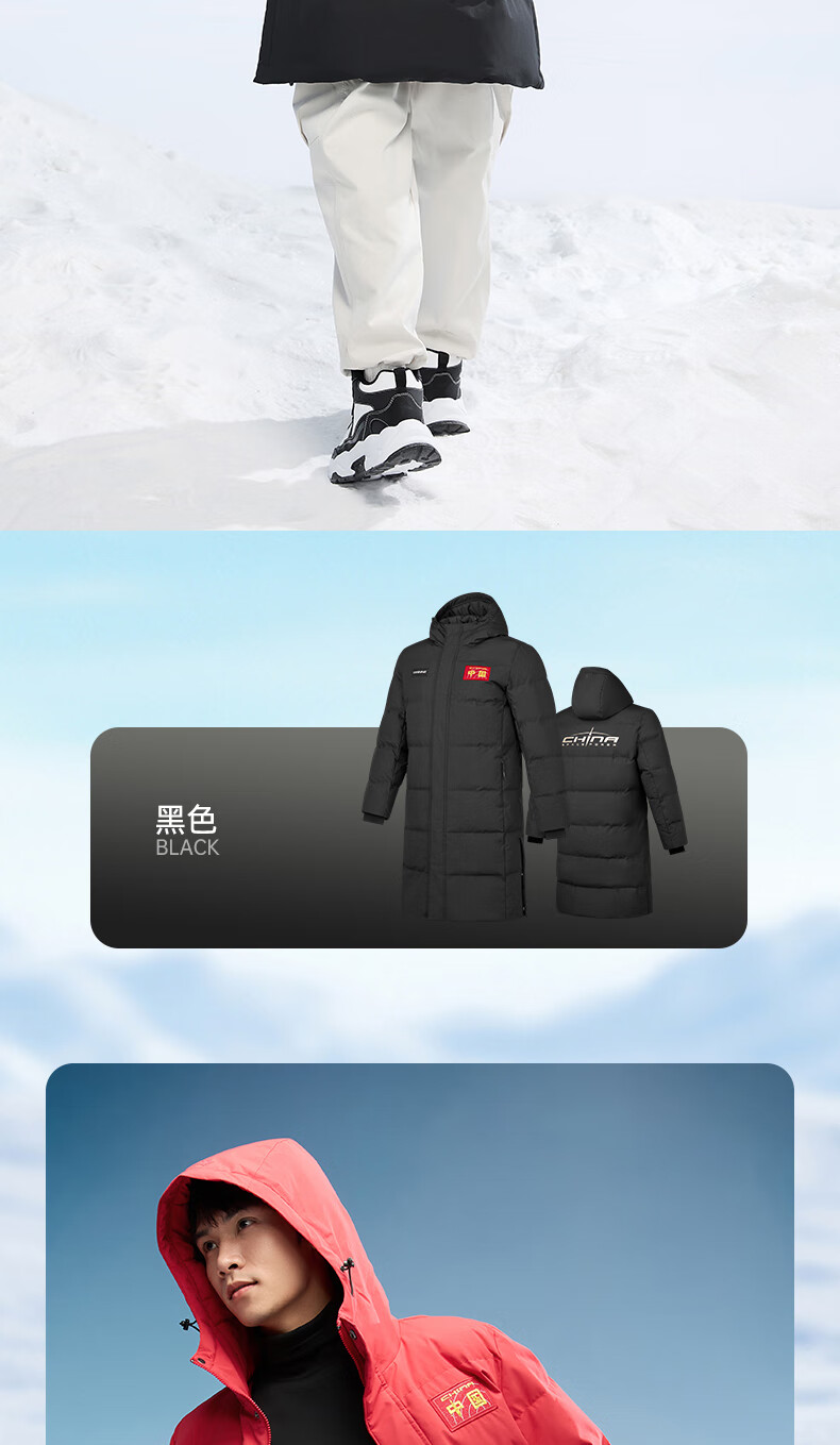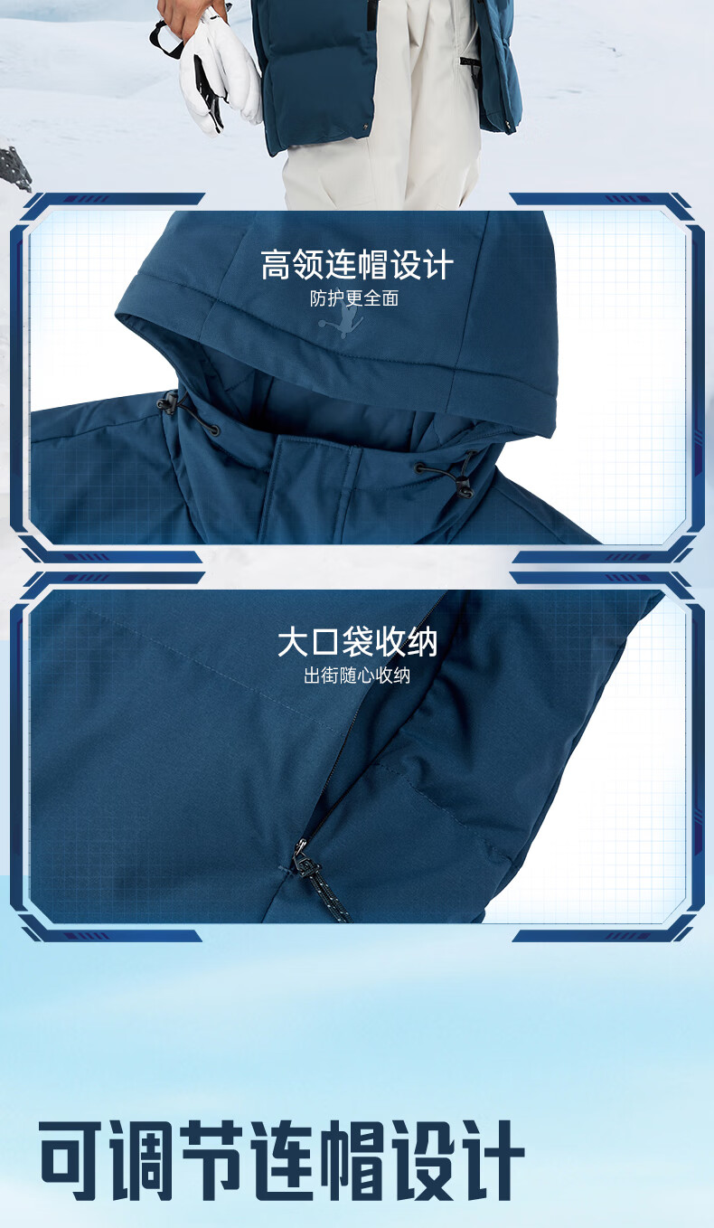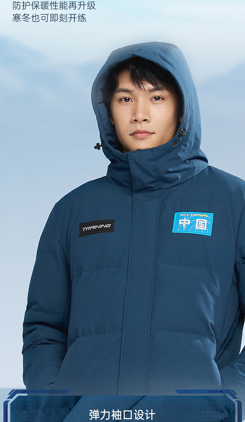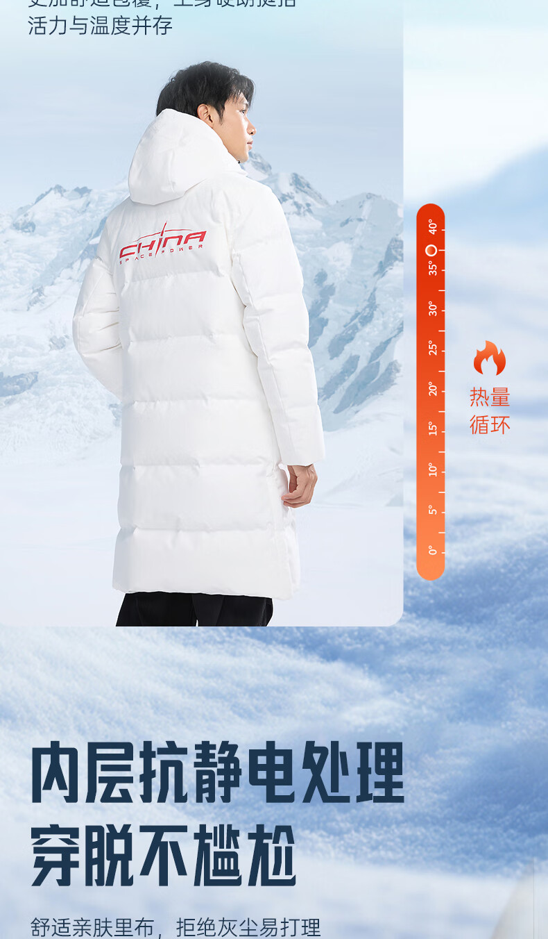 乔丹中国长款羽绒服男秋冬季保暖连帽外套男棉服时尚潮流舒适运动服