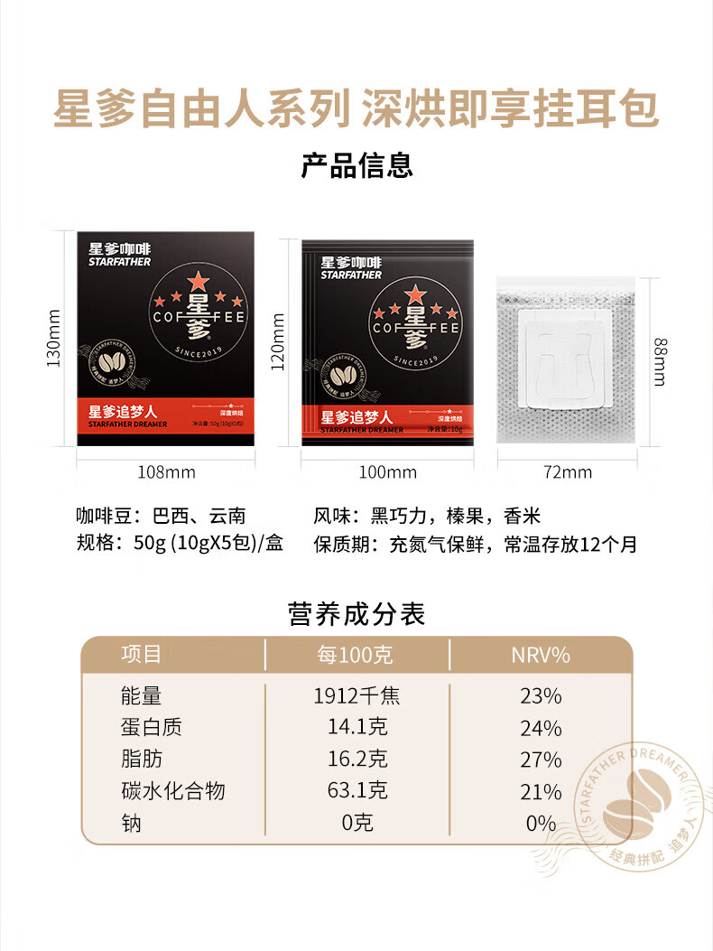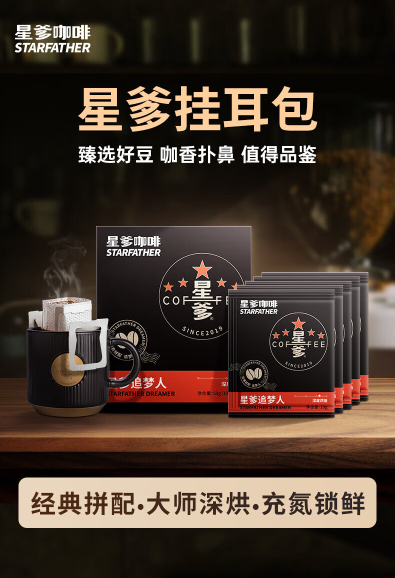 星爹挂耳滤泡式黑咖啡 阿拉比卡豆深度烘焙 美式咖啡粉手冲 【5杯】【尝鲜】