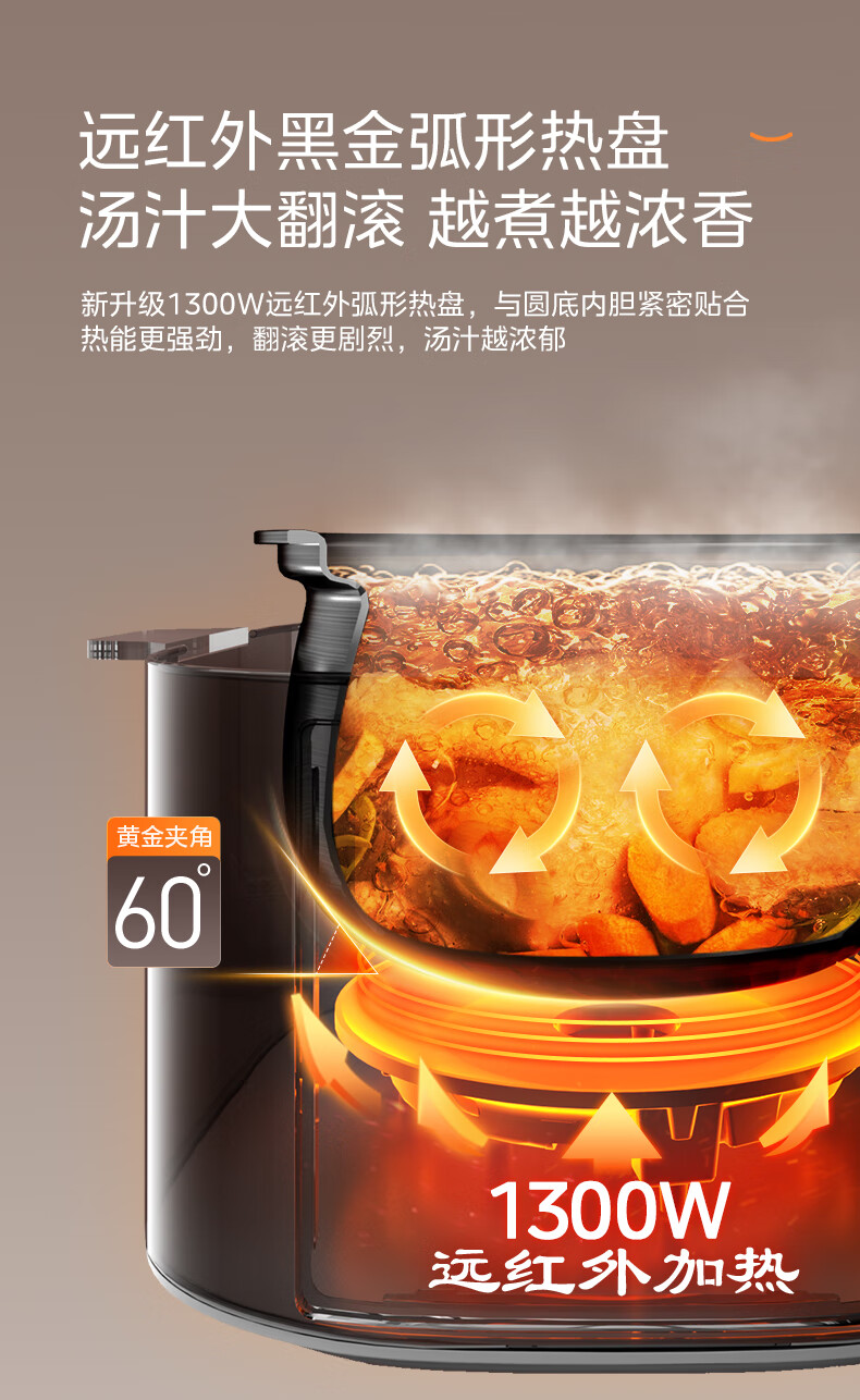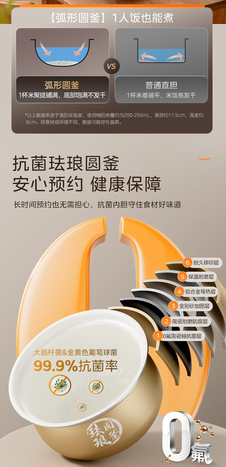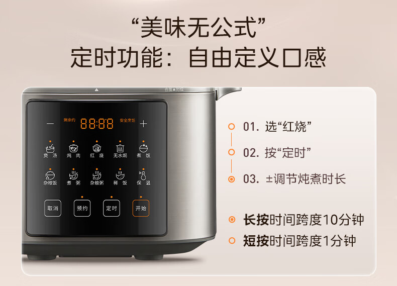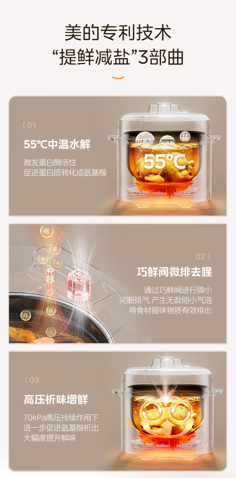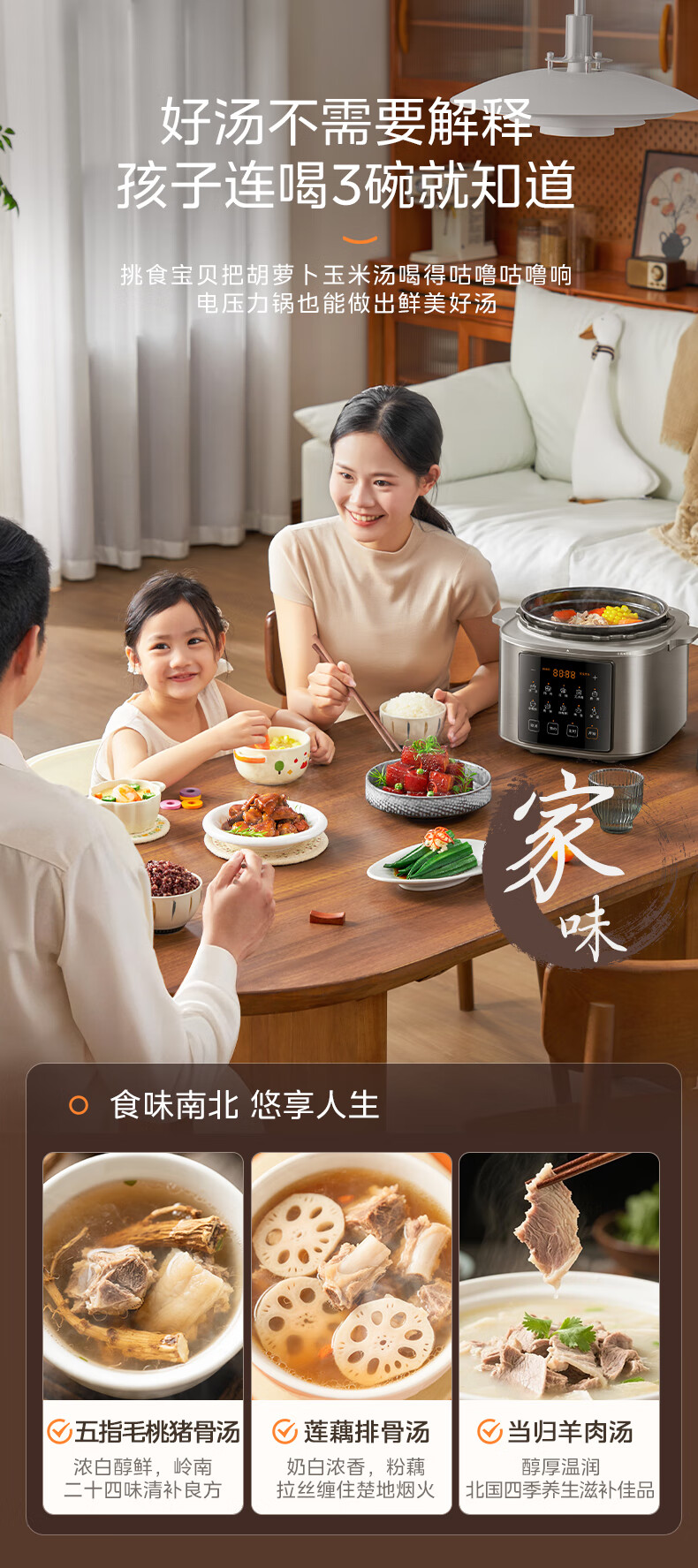 美的(Midea)电压力锅少盐浓香系列0氟内胆电高压锅电压锅双胆 电饭煲稳定控压技术高压汤锅电炖锅电饭锅 【0氟浓香】少盐提鲜 5L 【新上市】E5923