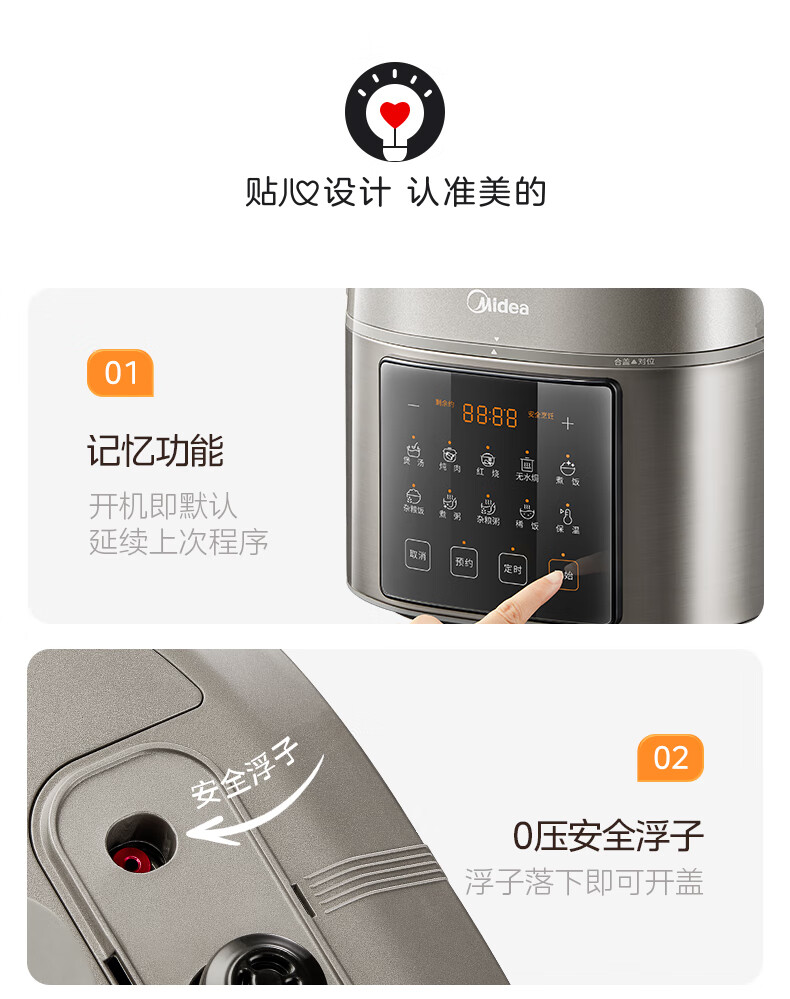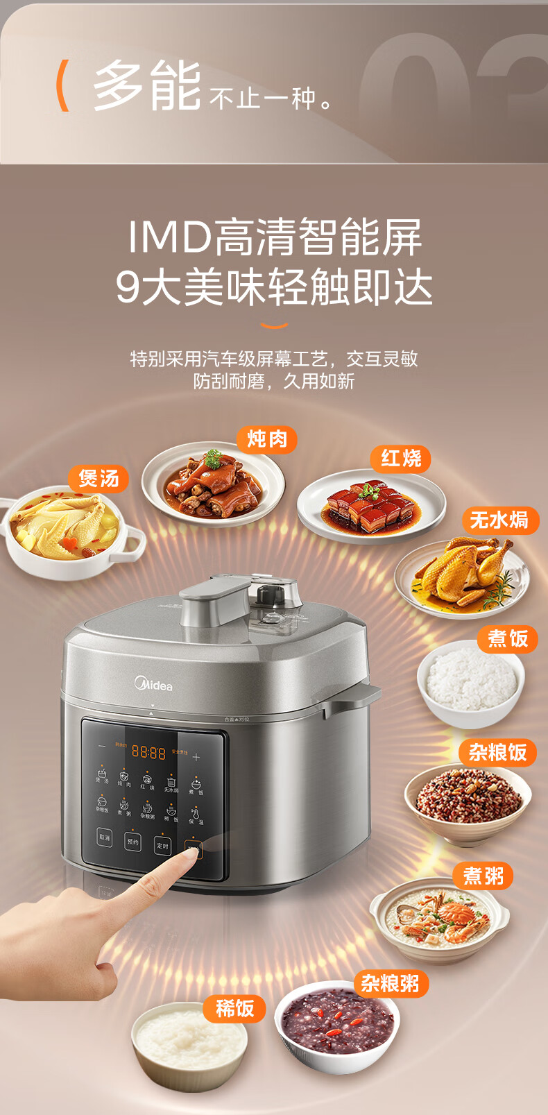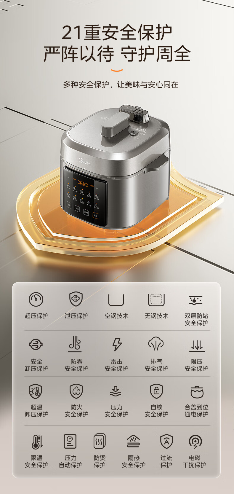 美的(Midea)电压力锅电饭煲高压锅4L家用多功能内胆开盖火锅电压力锅 大容量1-2-3-4-6-8人