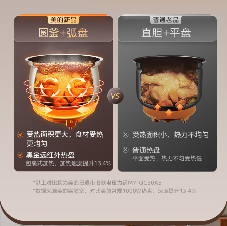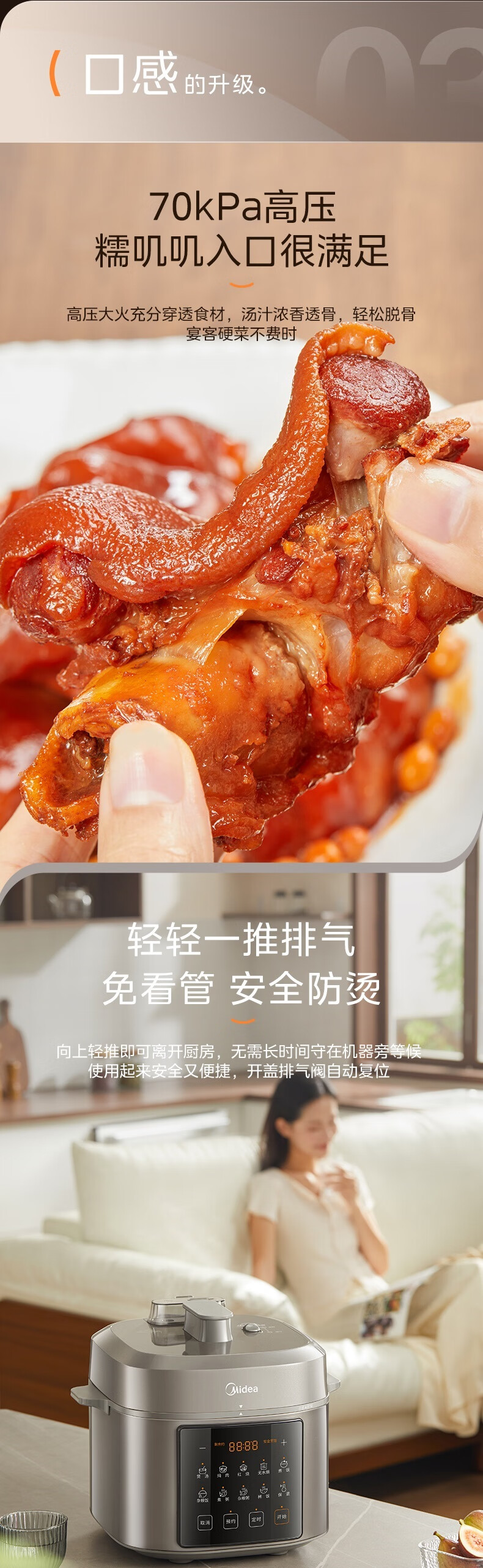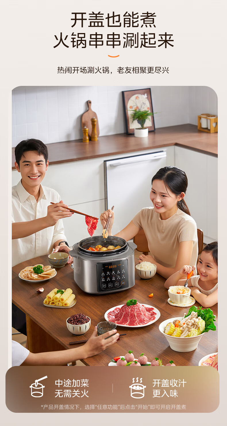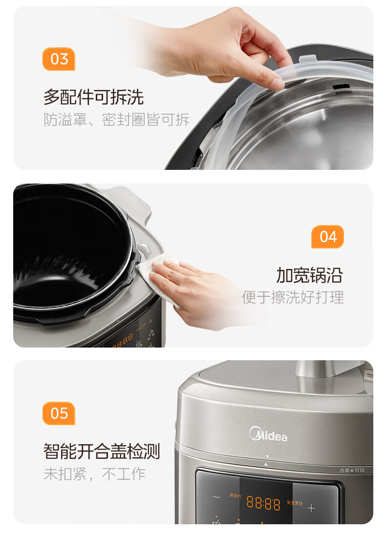 美的(Midea)电压力锅电饭煲高压锅4L家用多功能内胆开盖火锅电压力锅 大容量1-2-3-4-6-8人
