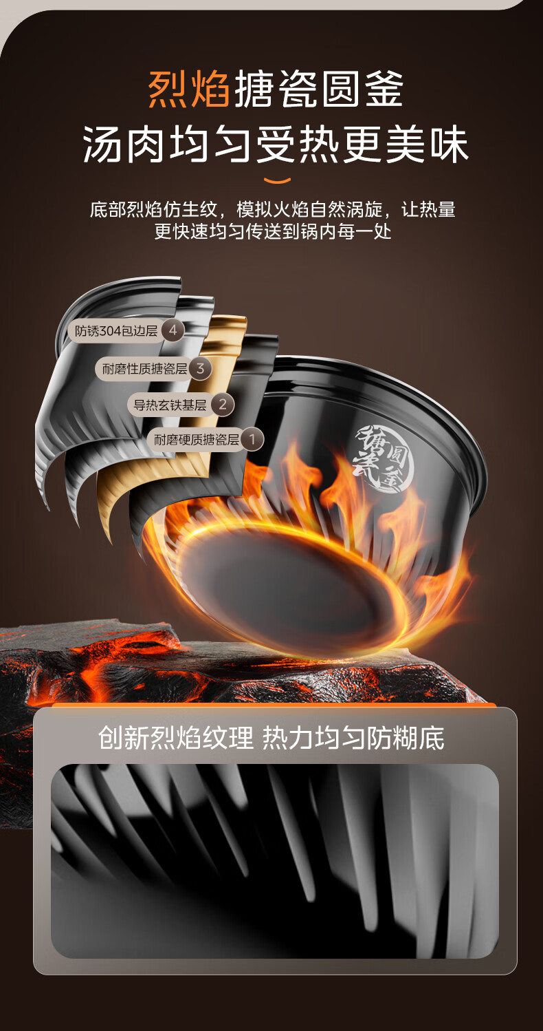 苏泊尔(SUPOR)电饭煲电饭锅4L容量琉瓷内胆新一代小快Max家用煮饭锅一键柴火饭陶瓷不粘耐磨智能微压 F40X71 4L