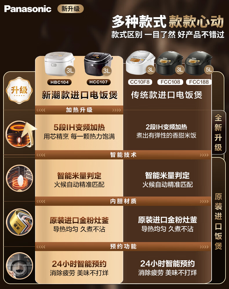松下(Panasonic)【以旧换新】原装进口电饭煲2-3人IH加热电饭锅家用3升不粘锅一级能效以旧换新SR-HBC104