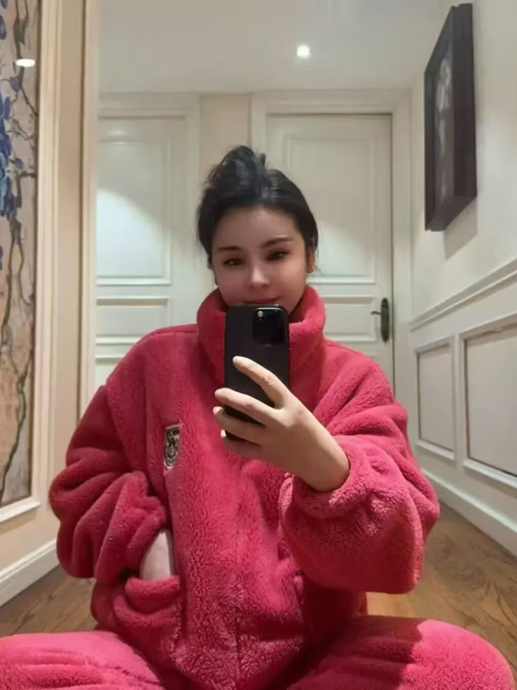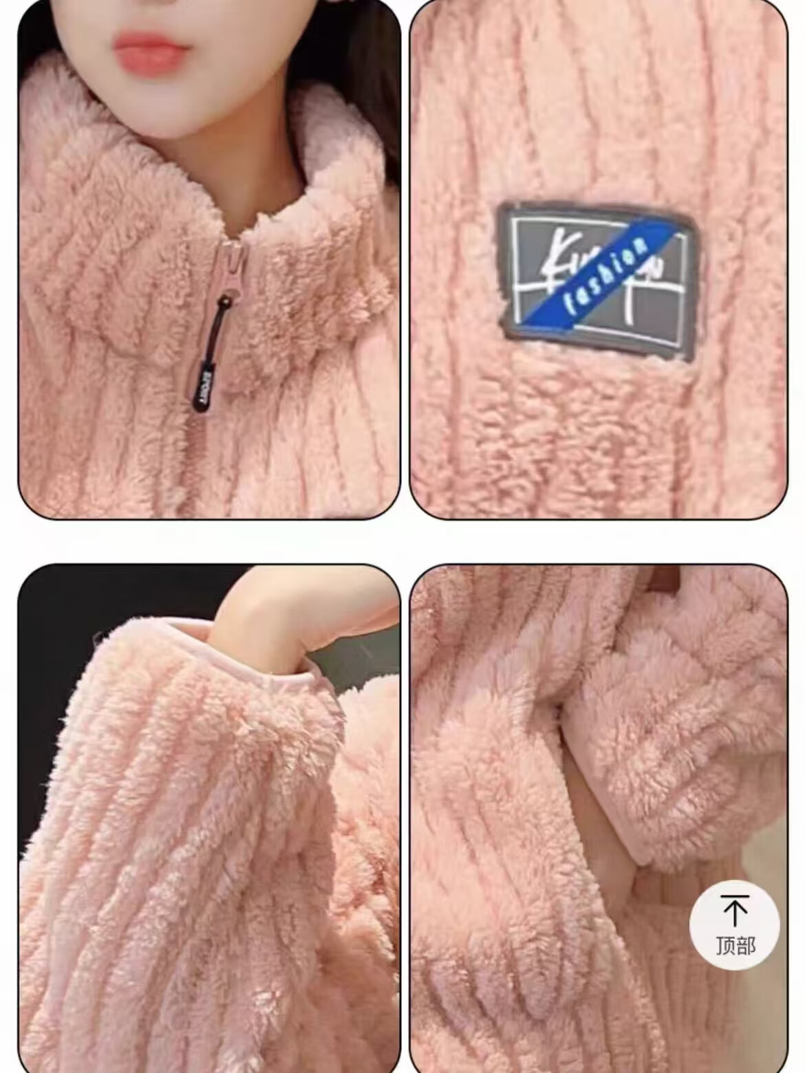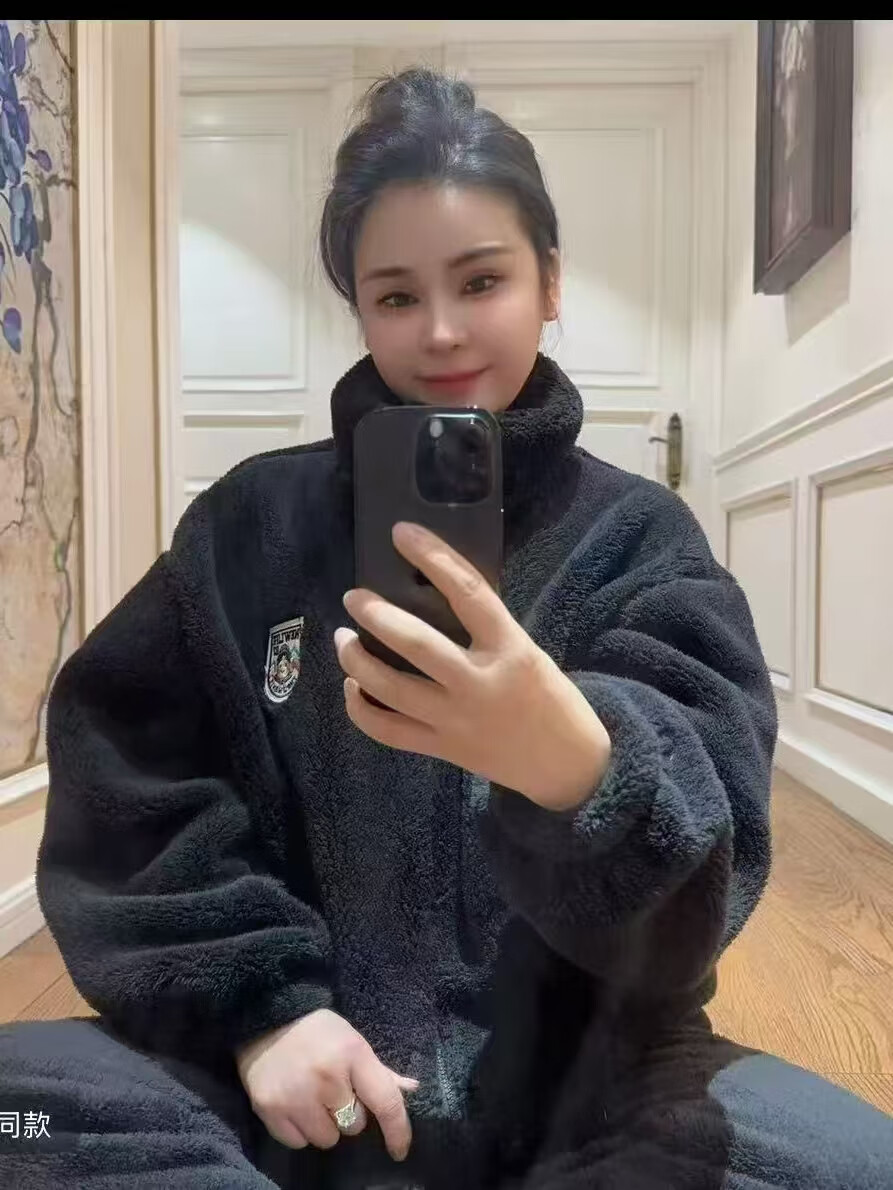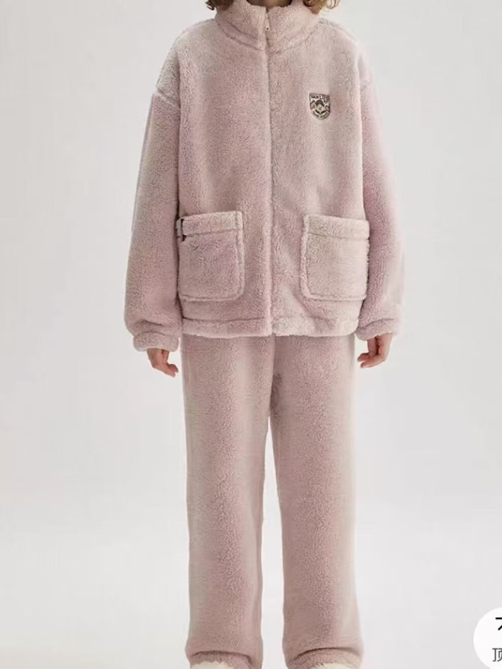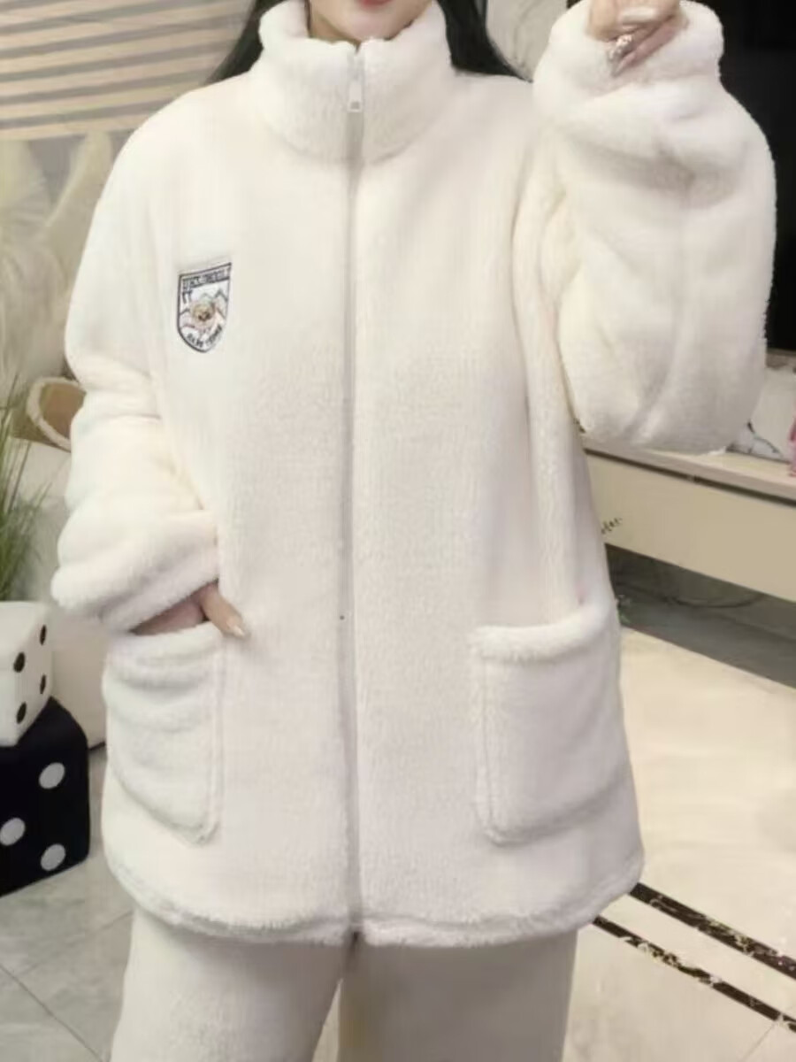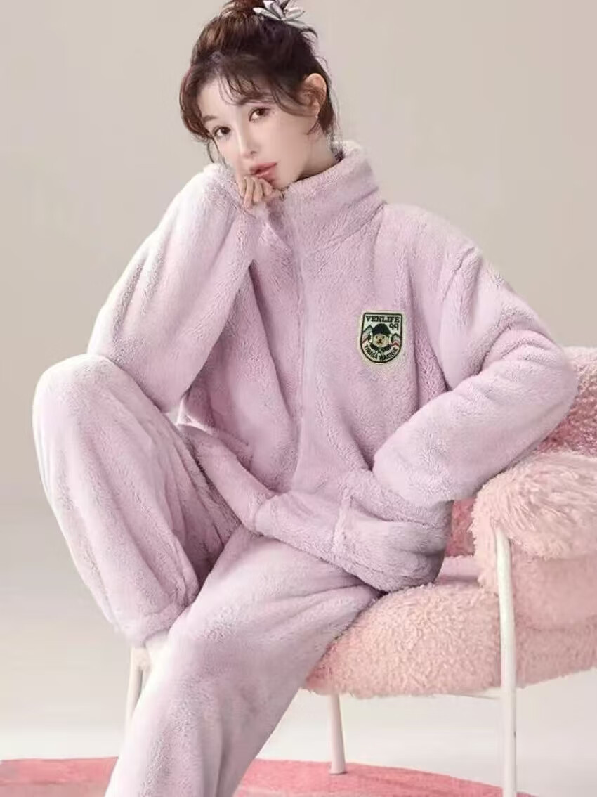 秋冬立领女睡衣拉链加绒加厚舒适柔软珊瑚绒休闲可外穿家居服套装 大红色(CR2035小方标) L (110-130)