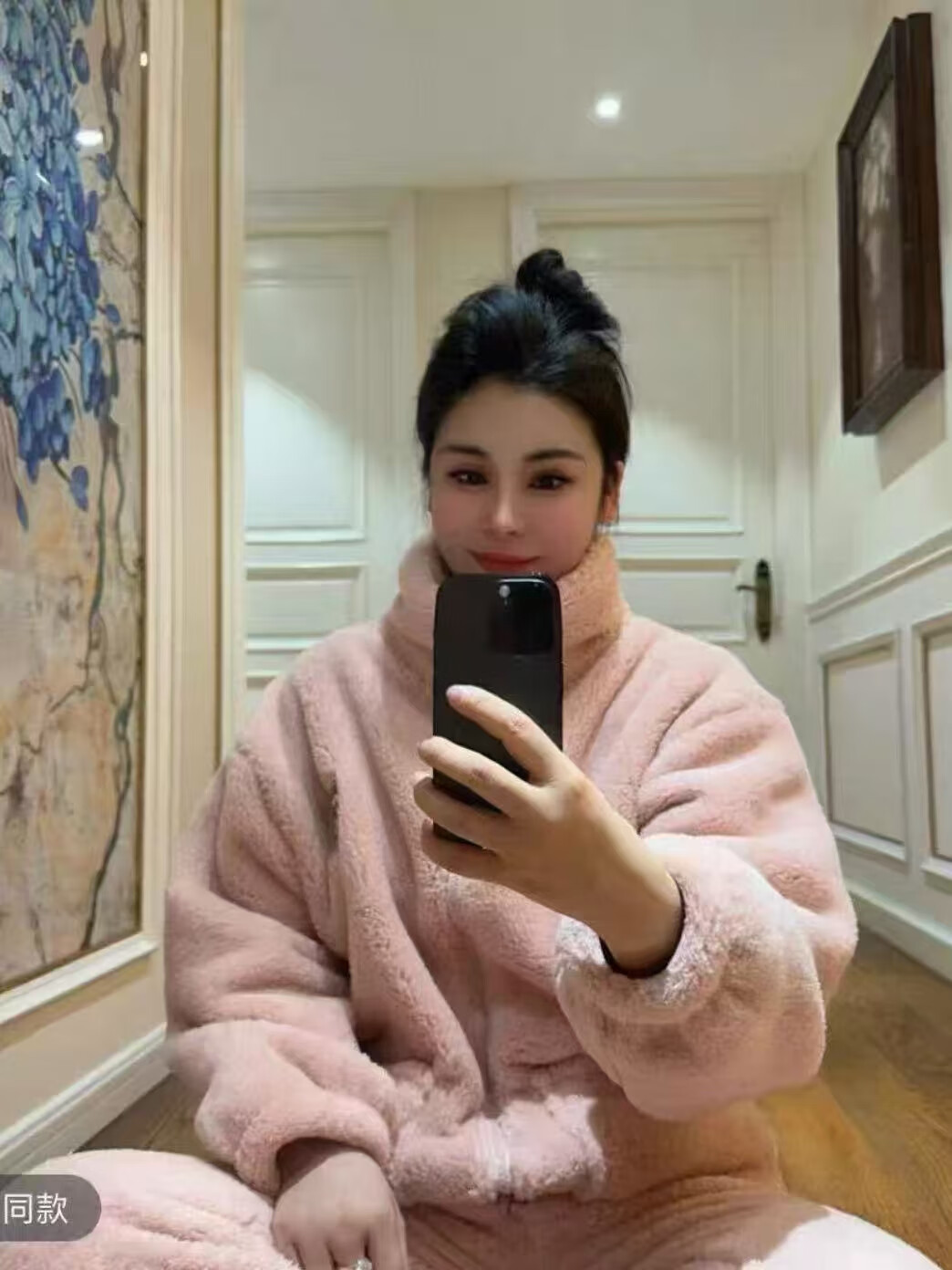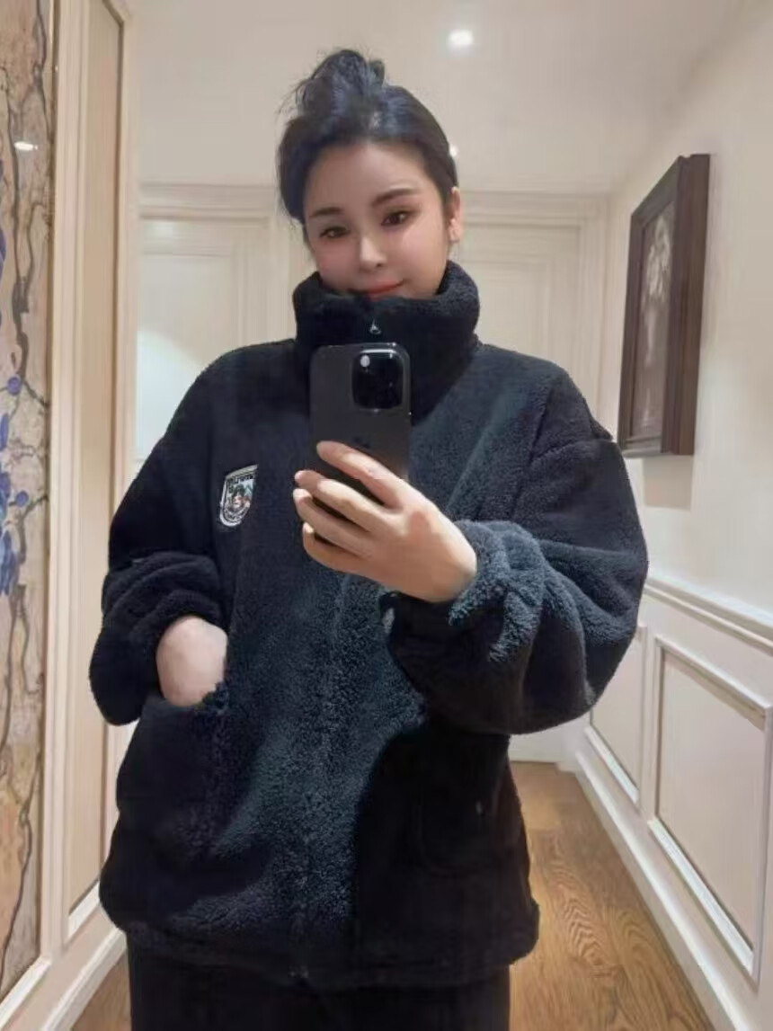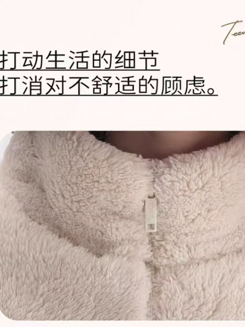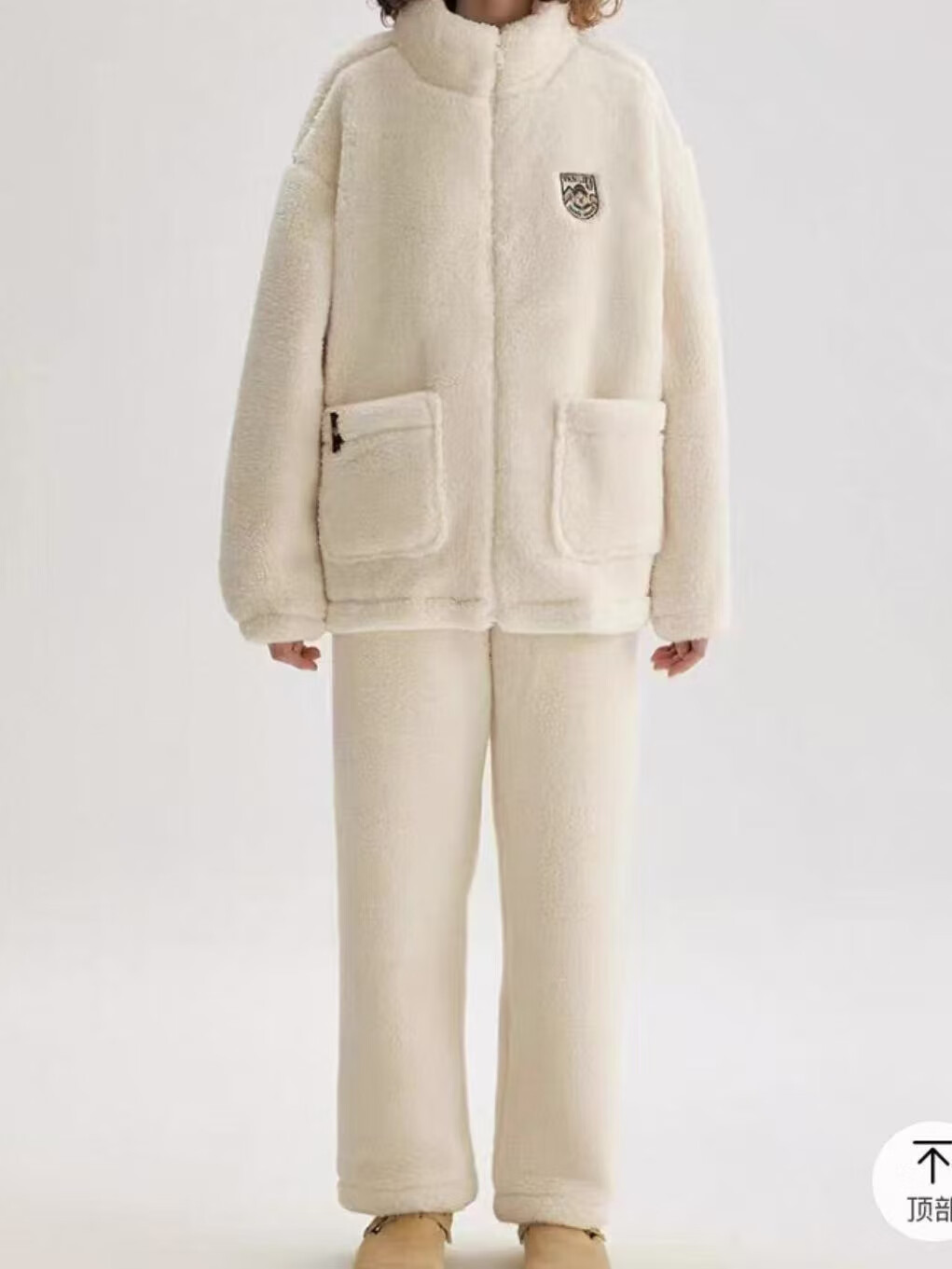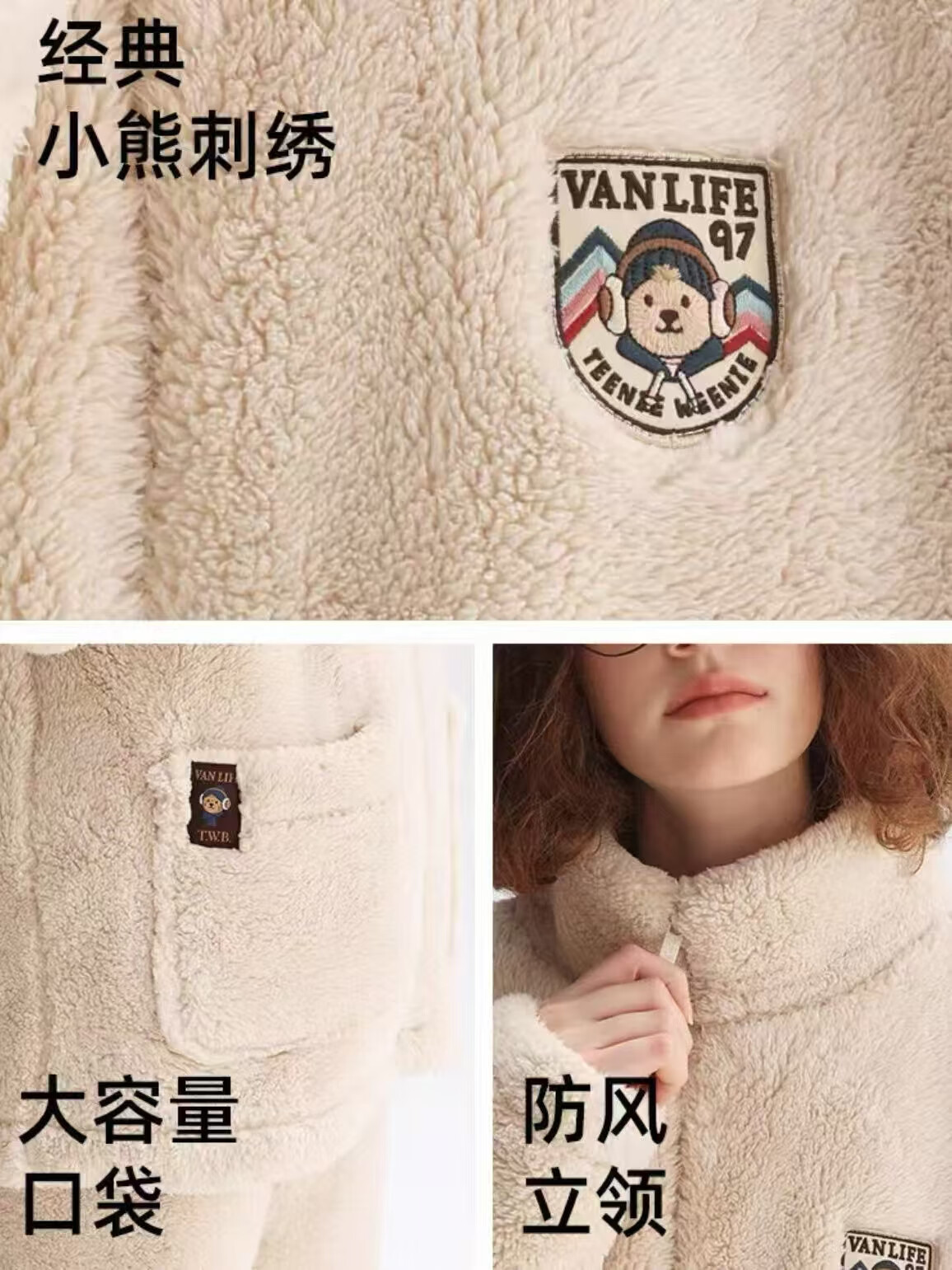 秋冬立领女睡衣拉链加绒加厚舒适柔软珊瑚绒休闲可外穿家居服套装 大红色(CR2035小方标) L (110-130)