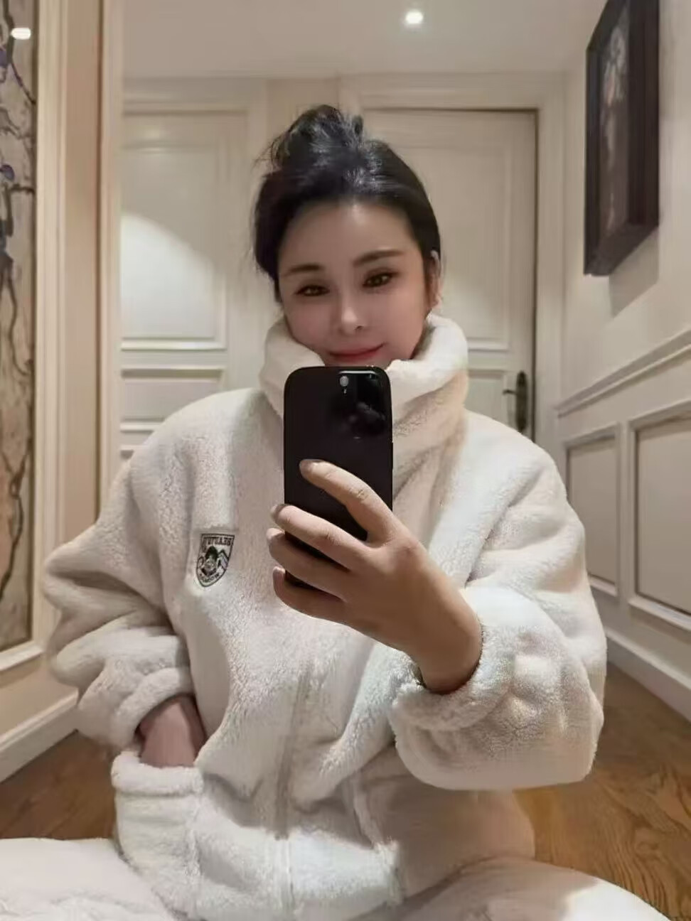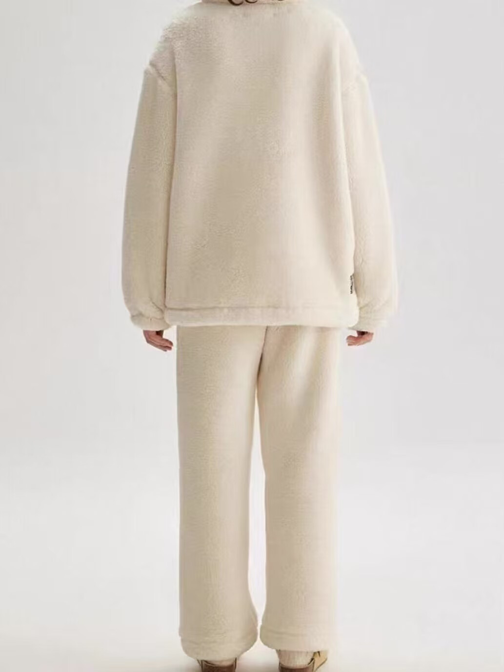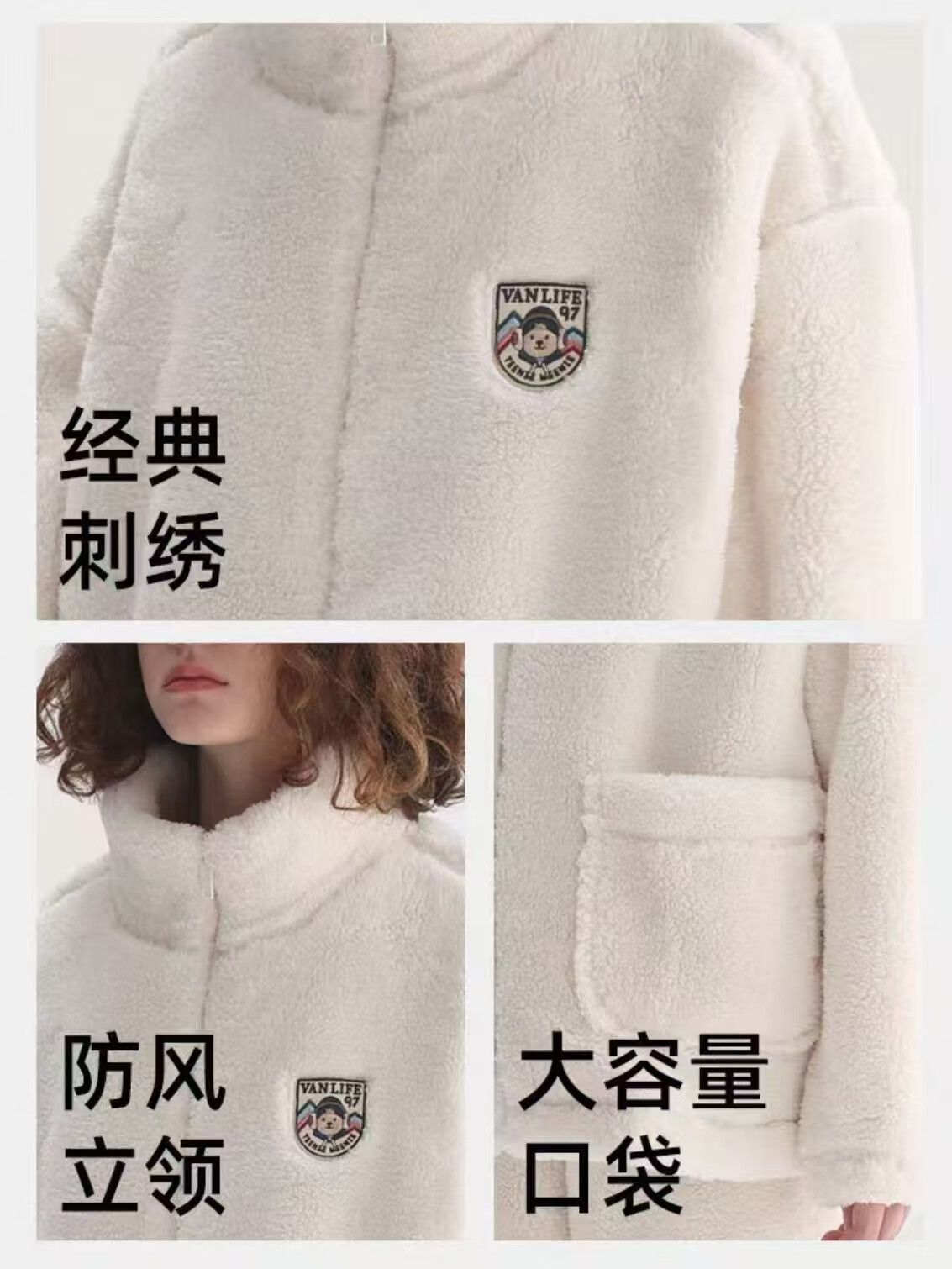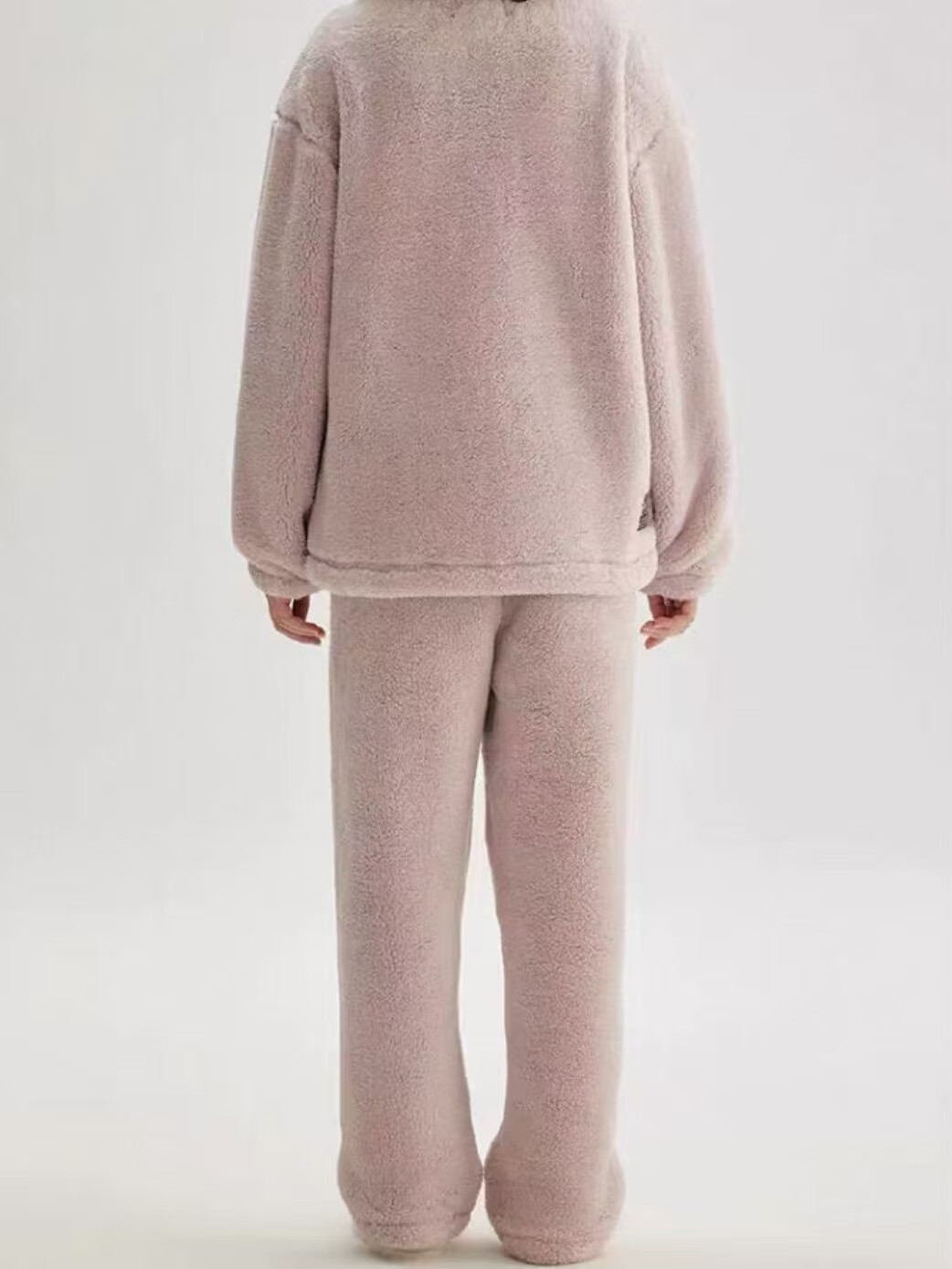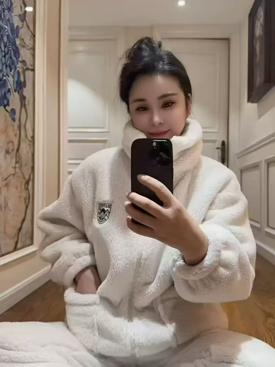 秋冬立领女睡衣拉链加绒加厚舒适柔软珊瑚绒休闲可外穿家居服套装 大红色(CR2035小方标) L (110-130)