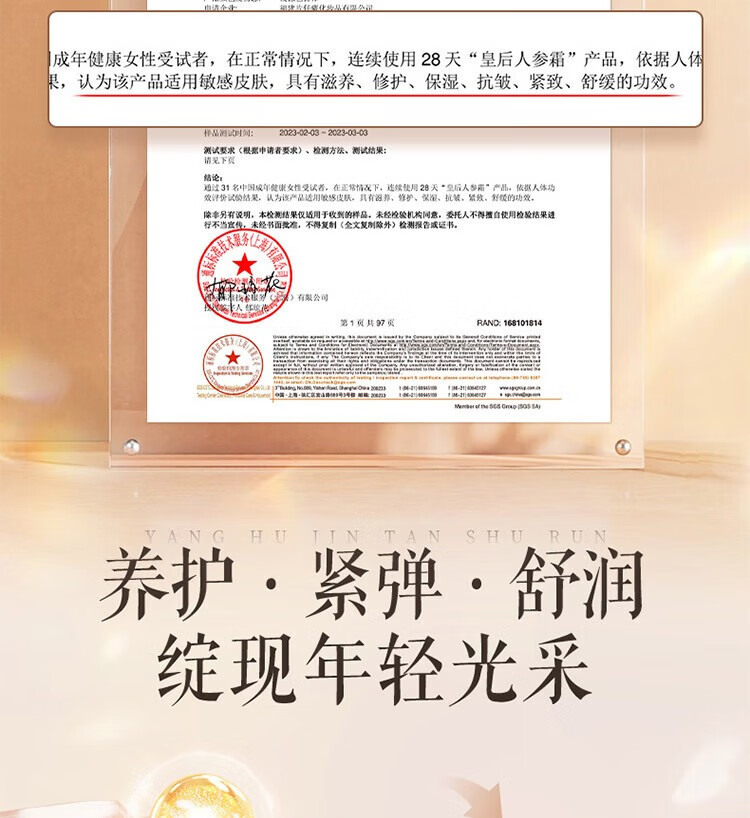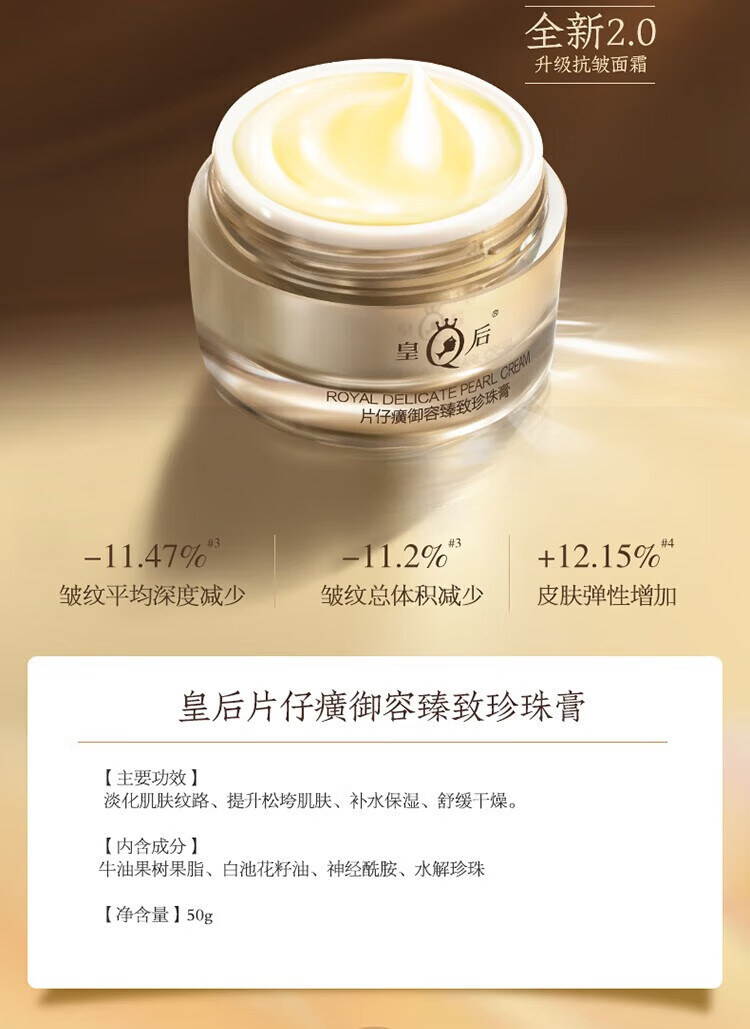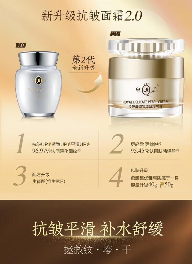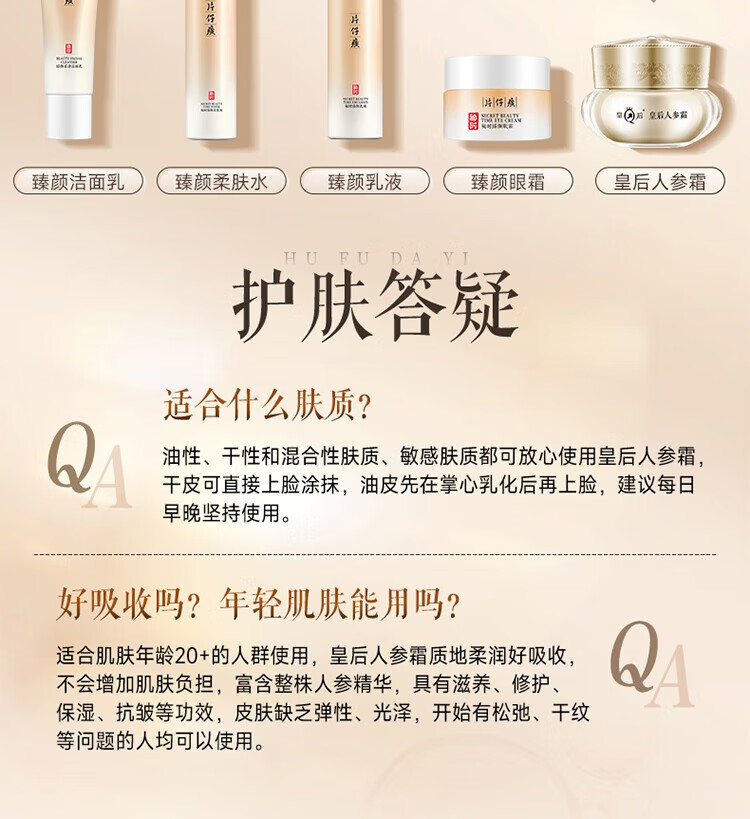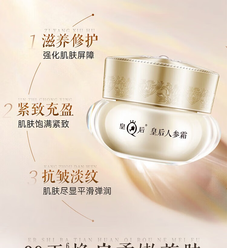 片仔癀皇后御容臻致珍珠膏钻石人参霜补水保湿抗皱淡纹紧致舒缓贵妇面霜 皇后人参霜48g+15g*2