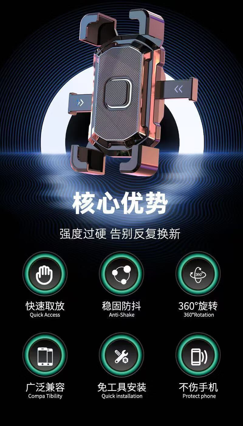 【厂家直发】手机导航支架外卖电瓶车自行车摩托支架适用于小米防 升级稳固版-黑色[车把款]狂甩不