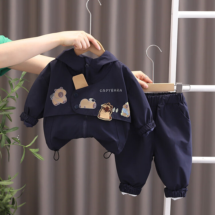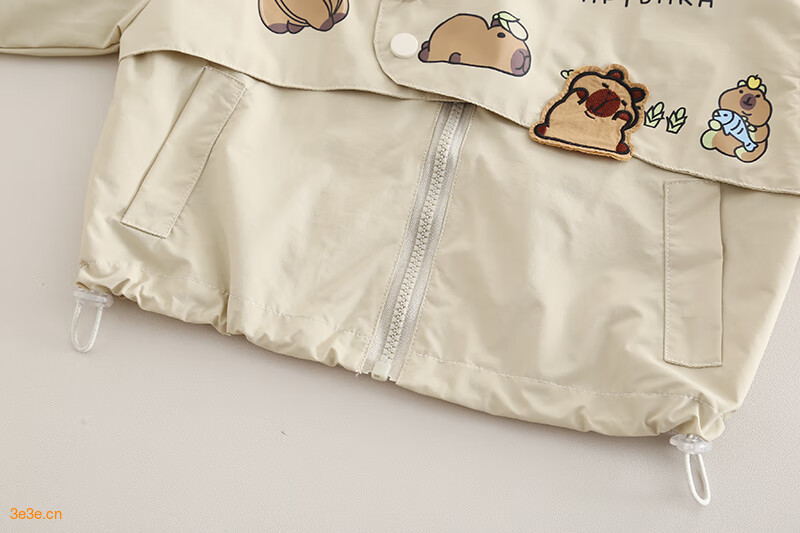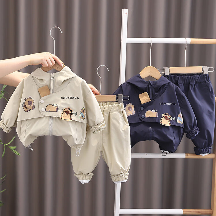 G.duck小黄鸭男童套装春秋季25新款0-4岁男宝宝衣服婴幼儿童冲锋衣外套 米色 90 建议宝宝10-12公斤 24-36个月