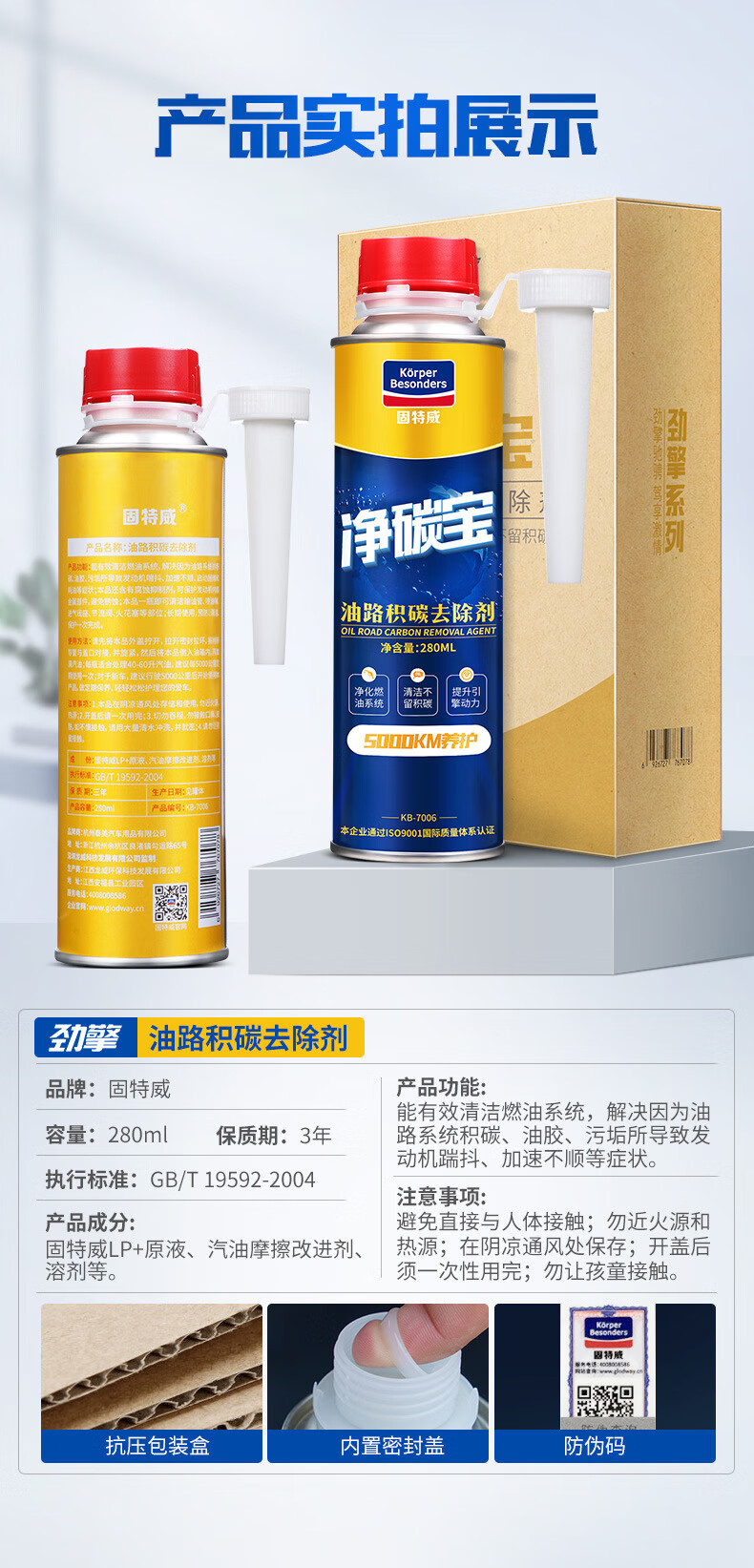 燃油宝固特威油路积碳去除剂 净碳宝280ml 汽车用品汽车添加剂 固特威净碳宝汽油燃油车通用款添加剂燃烧室积碳清洗剂 车奔驰宝马奥迪大众雪佛兰长城汽油车除积碳燃油添加剂