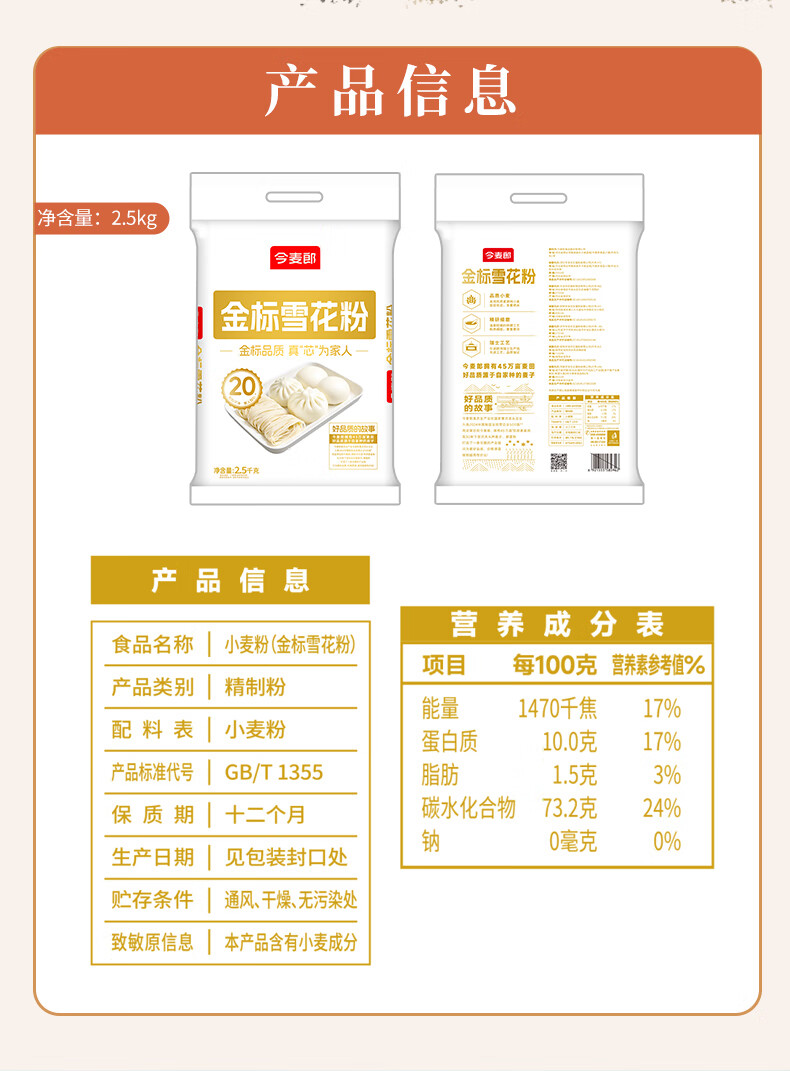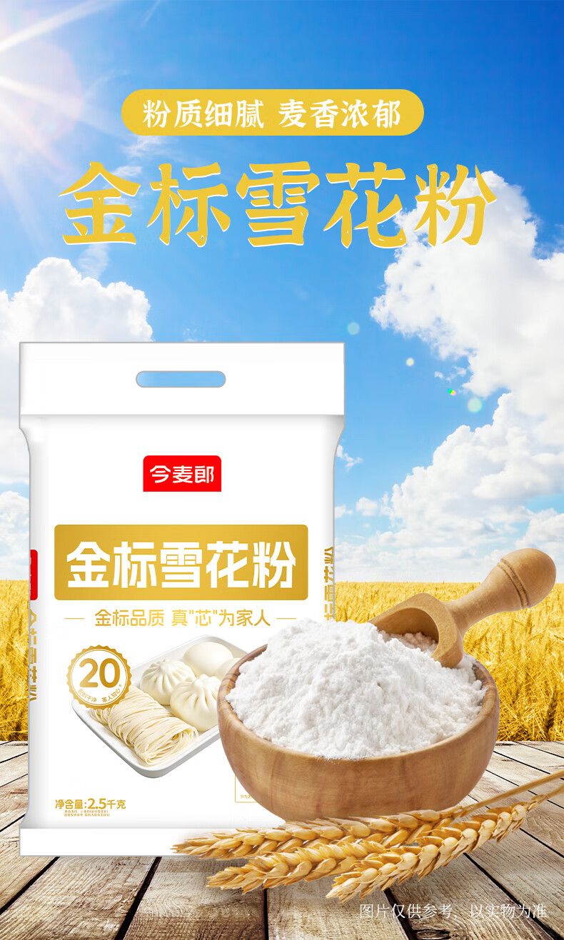 今麦郎面粉饺子面条馒头烙饼家用中筋通用小麦粉雪花粉5斤装 金标雪花粉2.5kg*1袋
