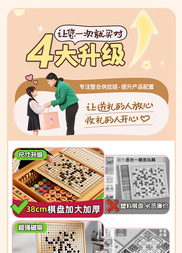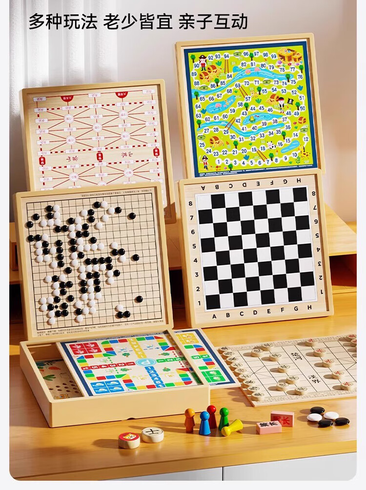 贝初众多功能棋盘多合一磁吸五子棋智能棋盘类玩具8-15岁男孩生日礼物女 30cm磁性款五子棋【十合一】+礼袋 中国际象棋围飞行军旗斗兽桌游6-10儿童玩具2025火最的
