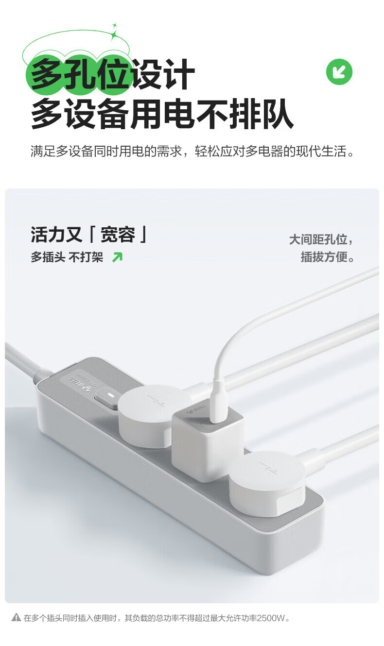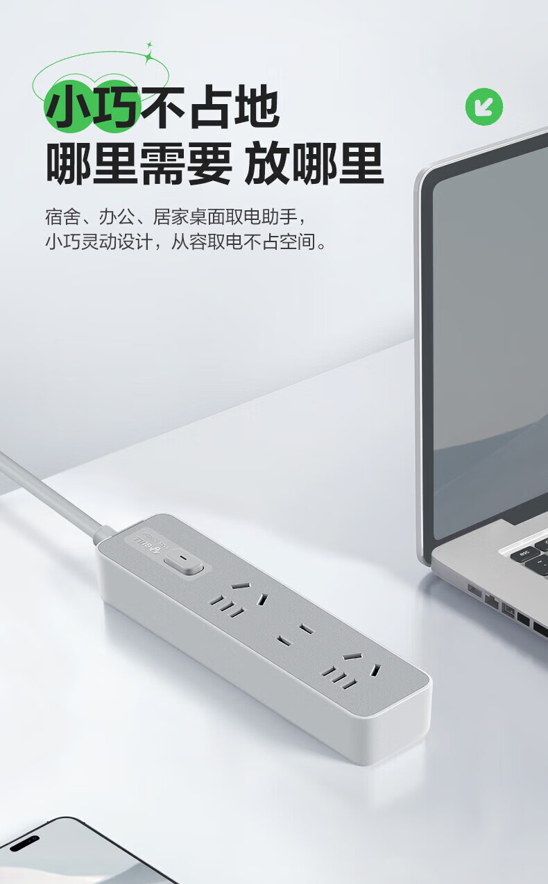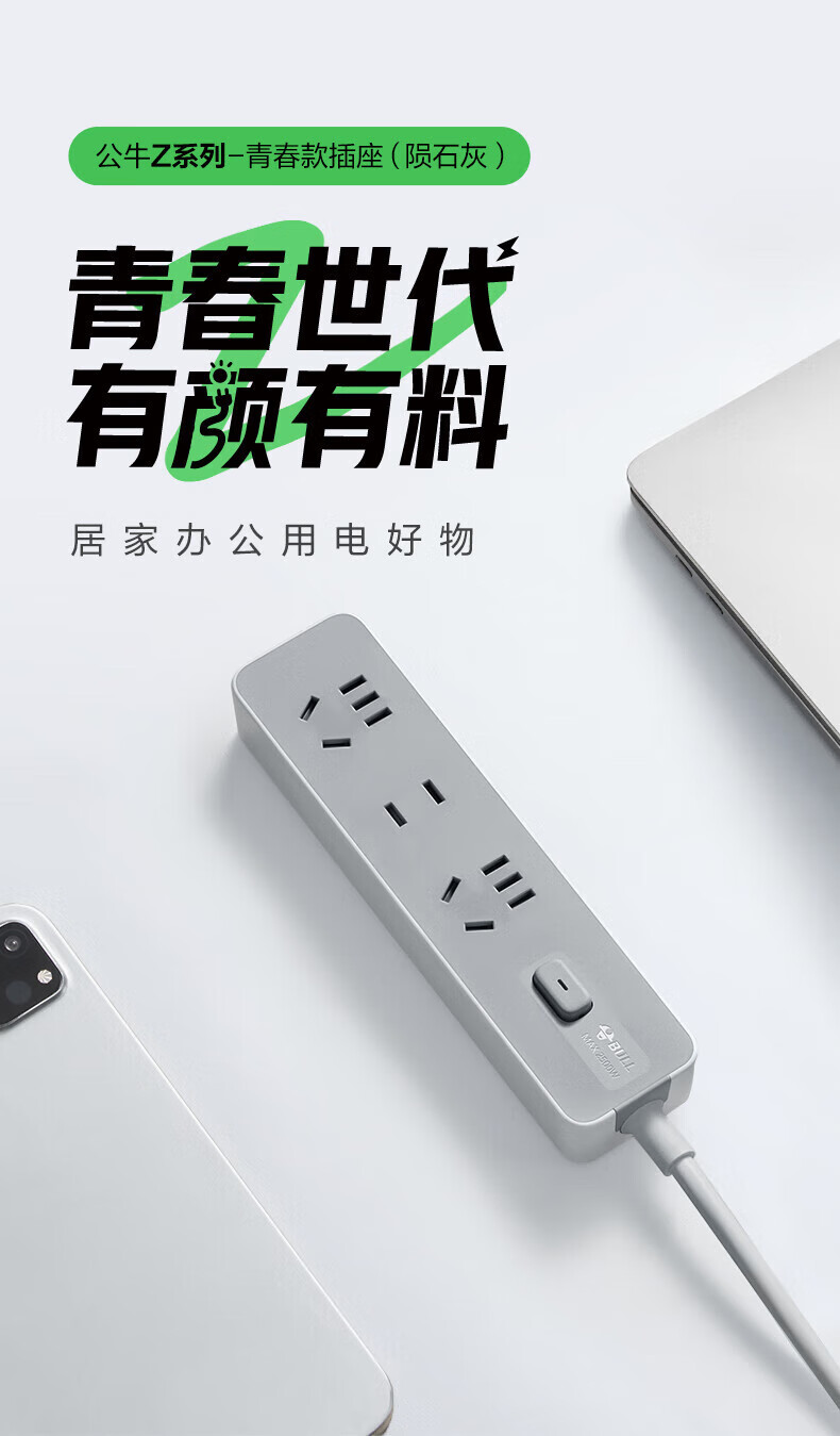 公牛(BULL)短线排插接线板 家用办公多功能一转多插座学生宿舍电源扩展拖线板 插排多孔位短接线电插板扩展器 全长0.5米【3插位总控插板】 官方正品2500W防火阻燃款质保3年