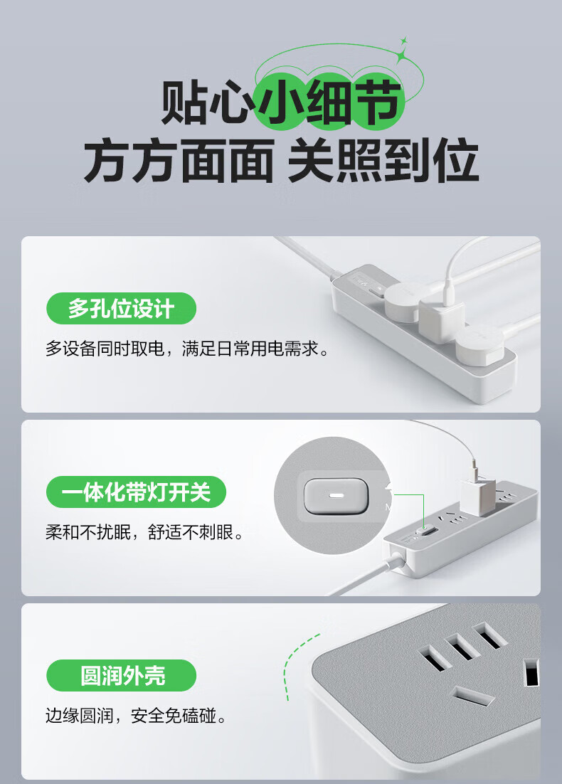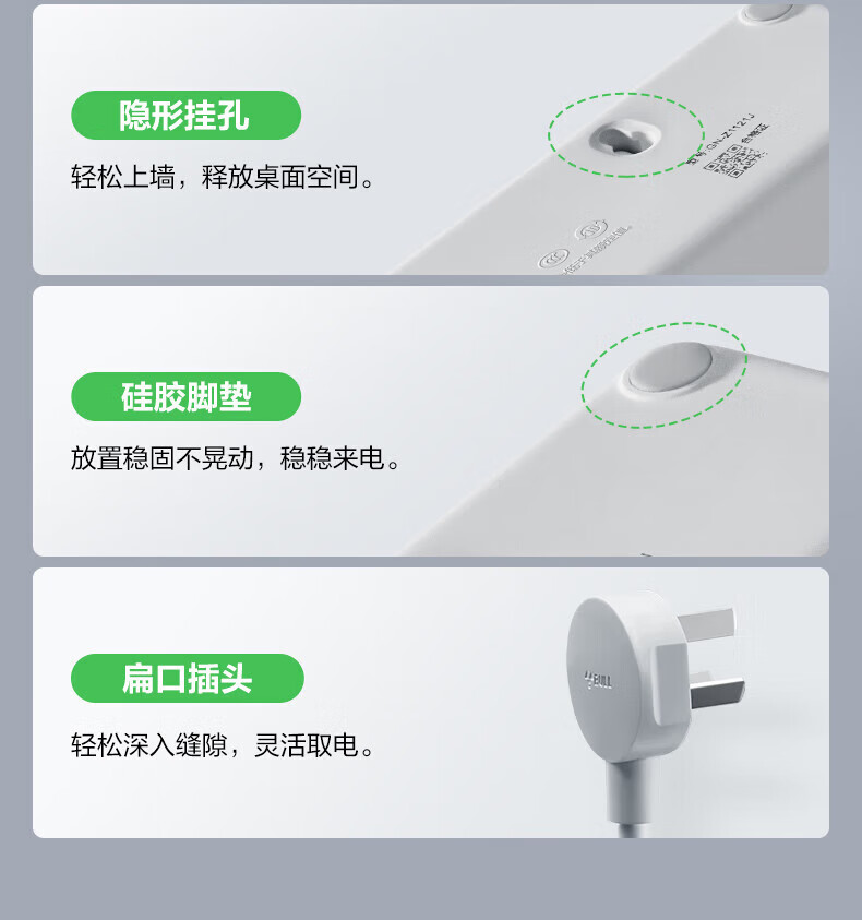 泰力插排防过载插座家用多孔接线板分控独立开关拖线板新国标接线板延长米线 【防过载】8位5孔【1.8米 】总控