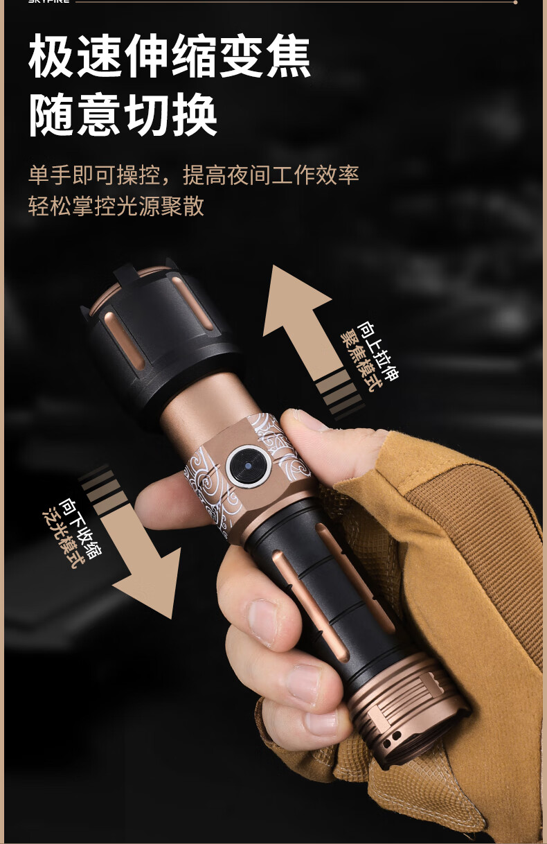 山色手电筒铝合金变焦强光远射充电超亮大功率专用钓鱼便携巡逻激光炮 SSD353D20B/2000mA/亮6-12小时
