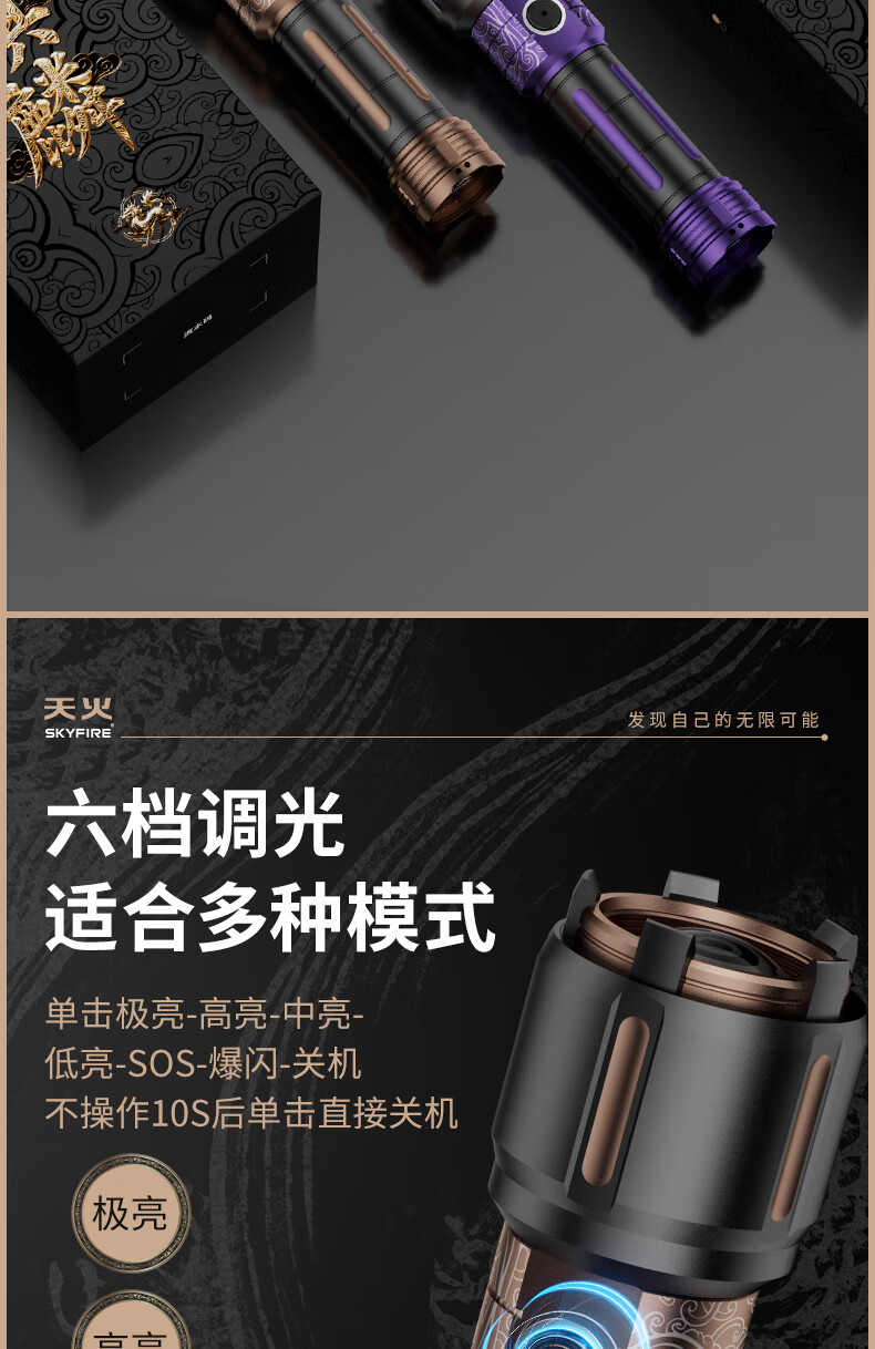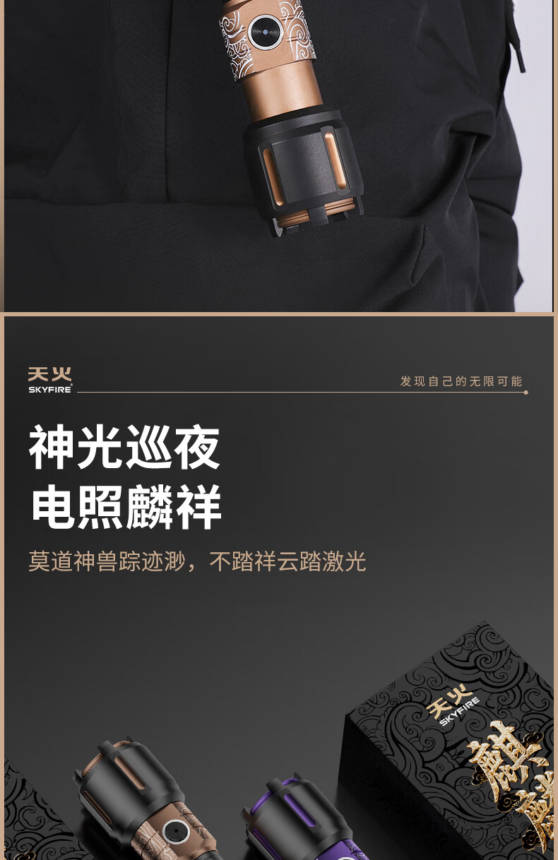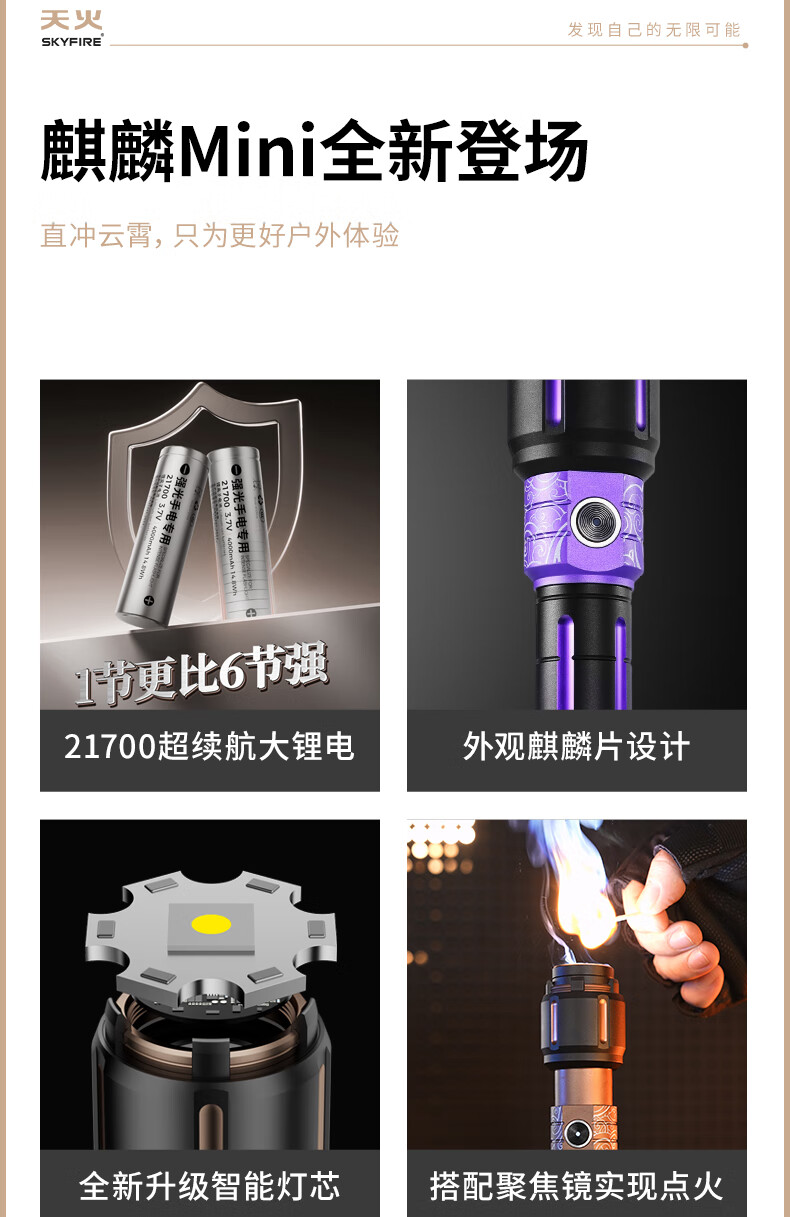 天火乾坤mini手电筒强光充电户外爬山巡逻超亮远射超长续航照明矿灯 【紫乾坤4000毫安】战术聚焦燃火-千米远射