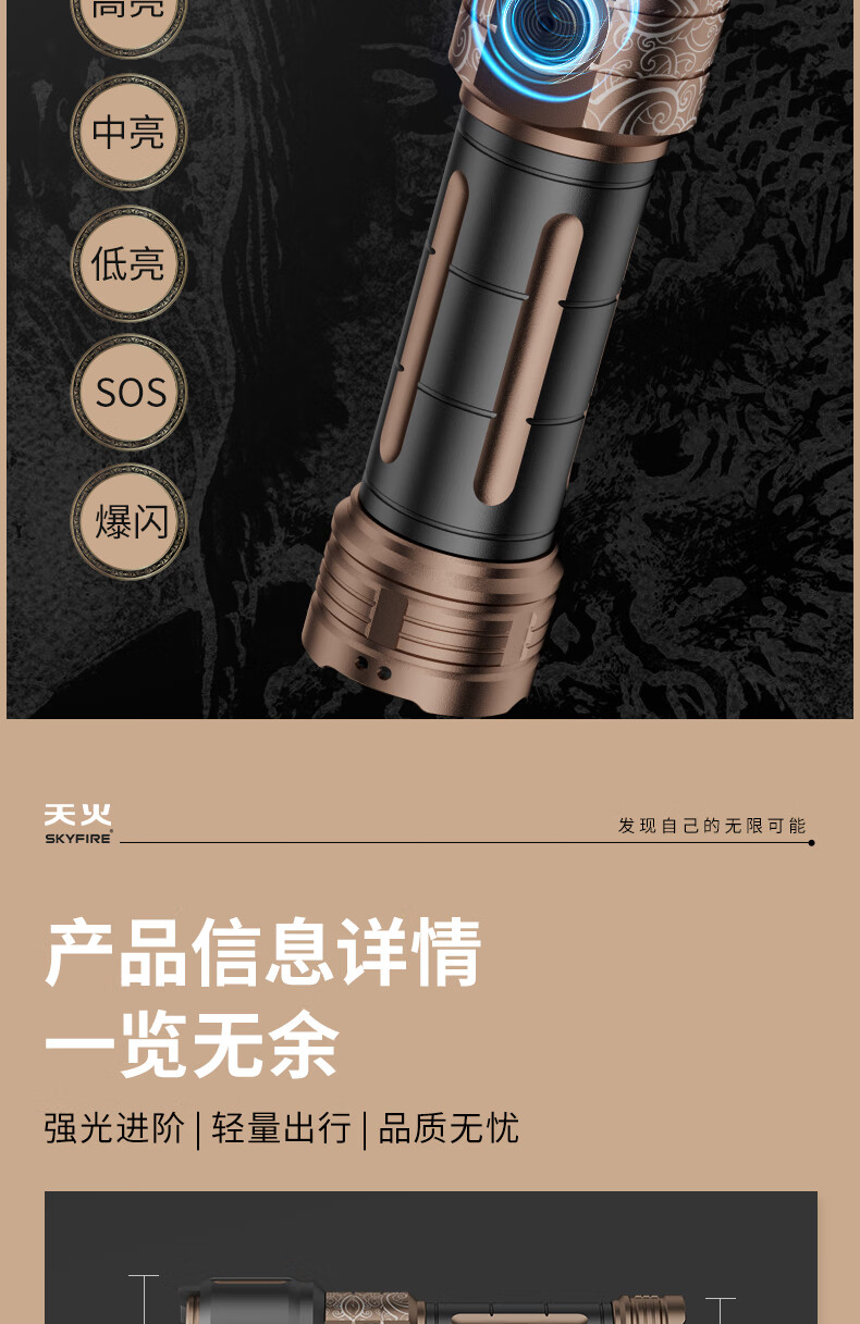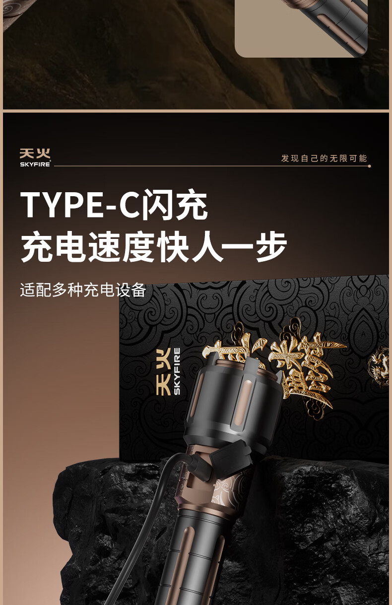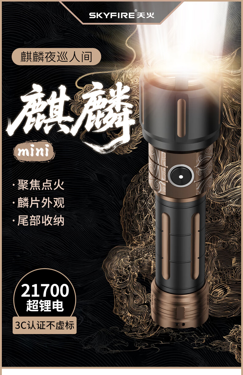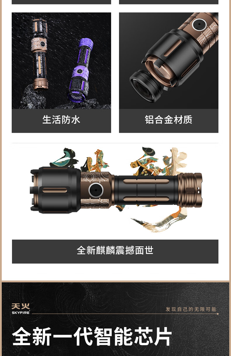 天火乾坤mini手电筒强光充电户外爬山巡逻超亮远射超长续航照明矿灯 【紫乾坤4000毫安】战术聚焦燃火-千米远射