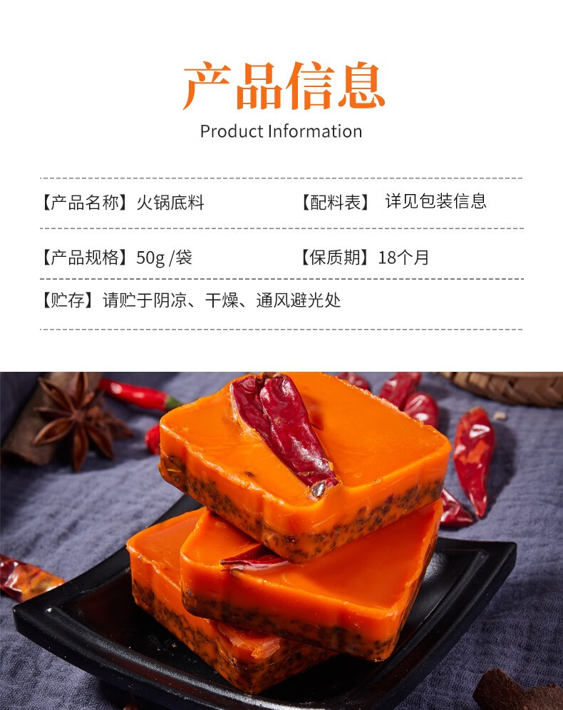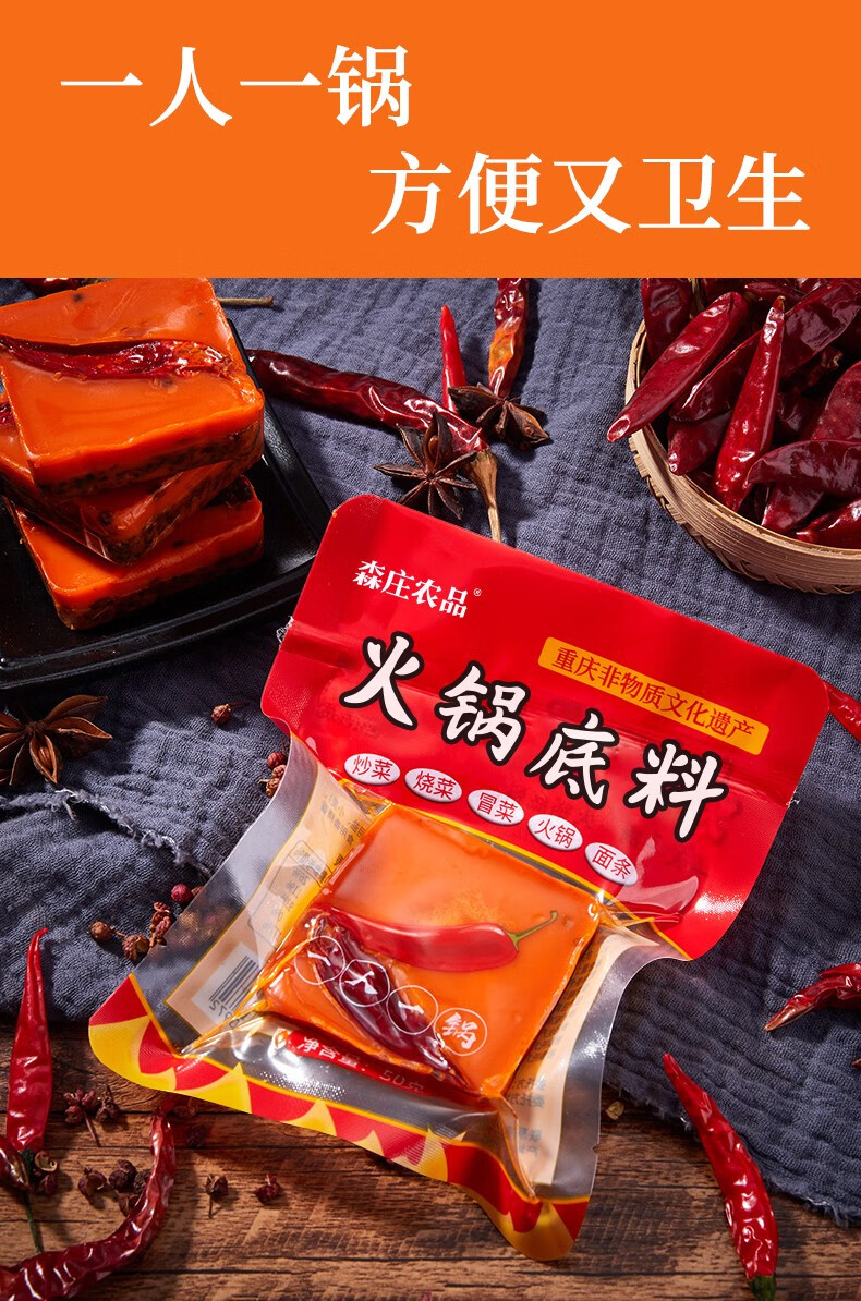 森庄农品重庆火锅底料小块包装家用牛油熬制正宗麻辣火锅料 火锅底料50g*10袋