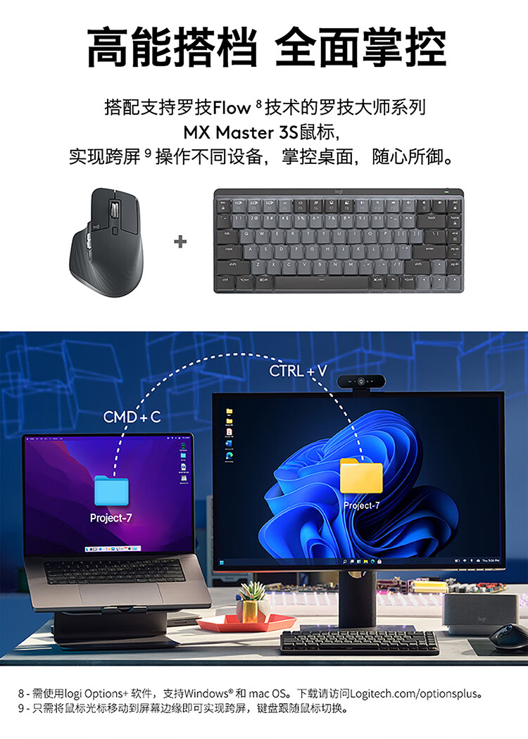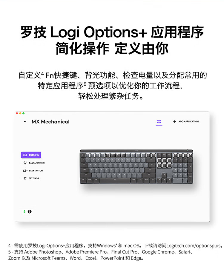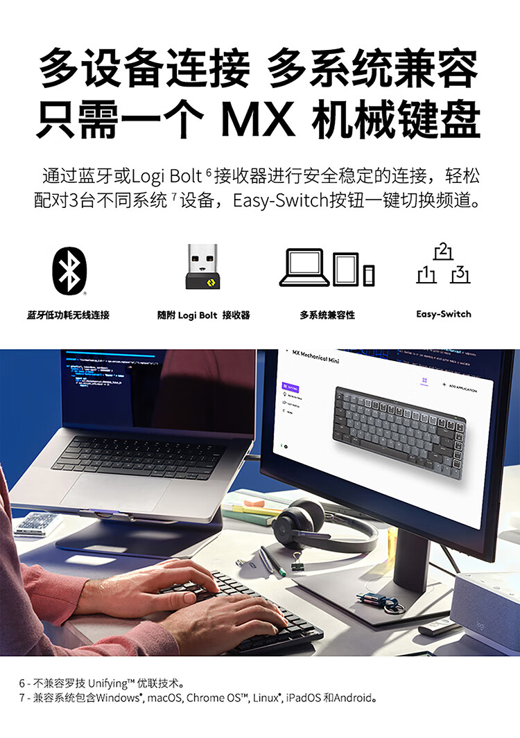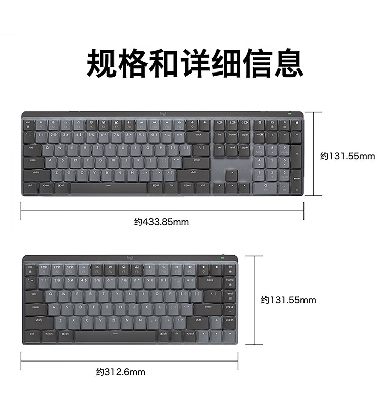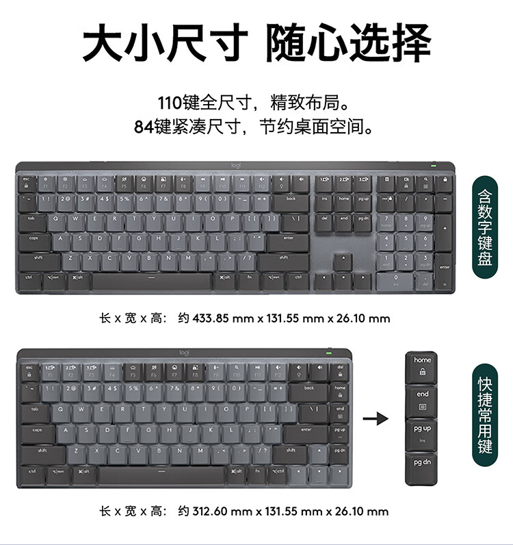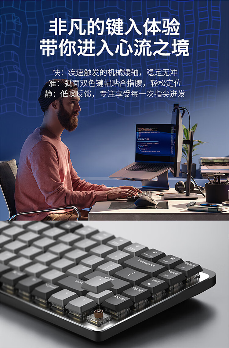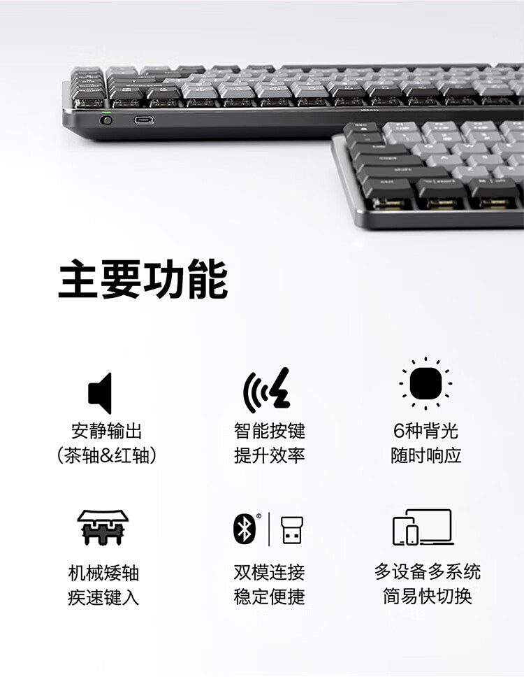 罗技(Logitech)大师系列 MX MECHANICAL高性能低噪无线双模迷你机械键盘 智能键盘 84键 线性红轴