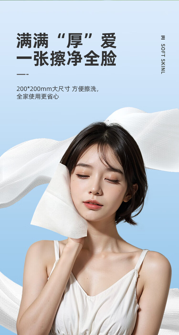 漫花加厚洗脸巾悬挂式大包洁面巾猫咪系列一次性绵柔巾 100抽*3提【加大加厚】