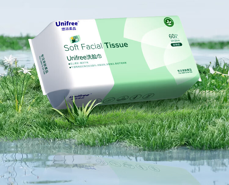 unifree一次性洗脸巾抽取式洗面巾加大加厚擦脸干湿两用卸妆珍珠纹洁面巾 洗脸巾60抽*3包【尝鲜装】
