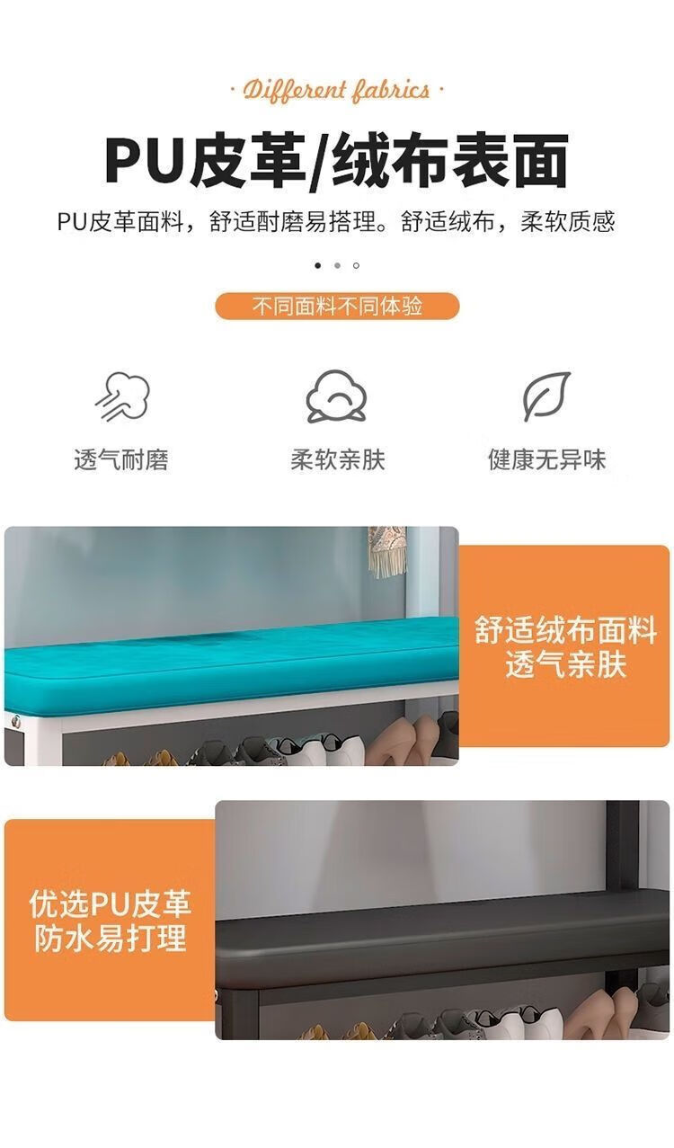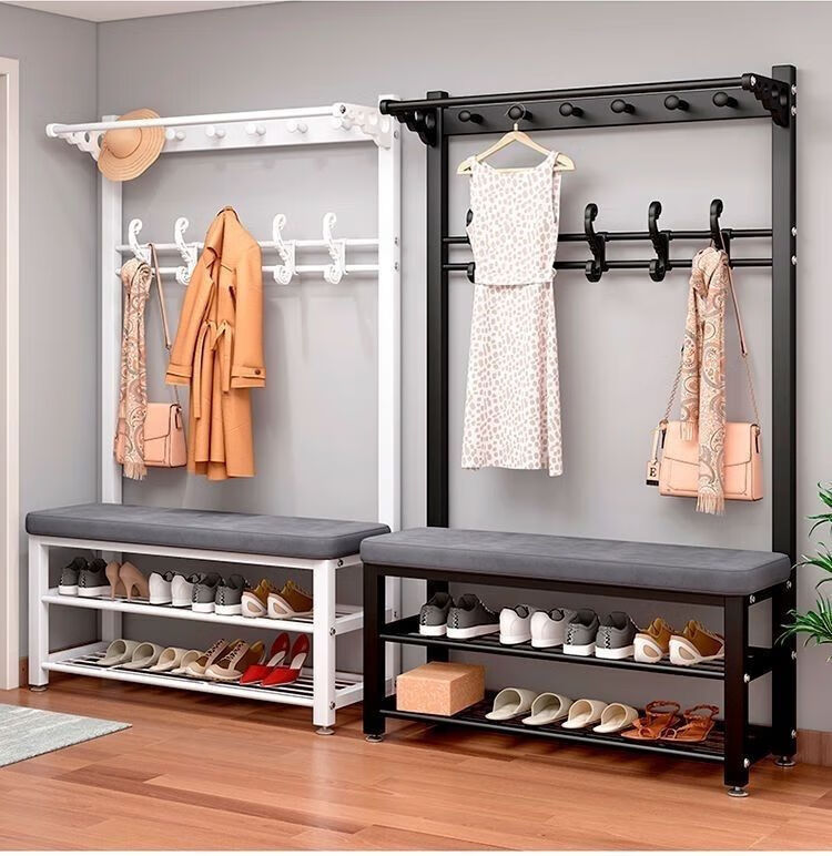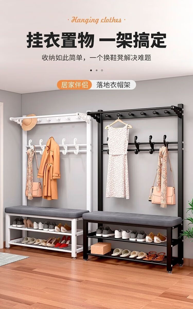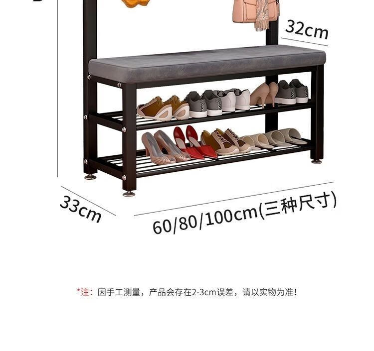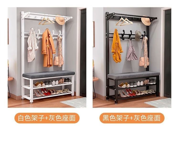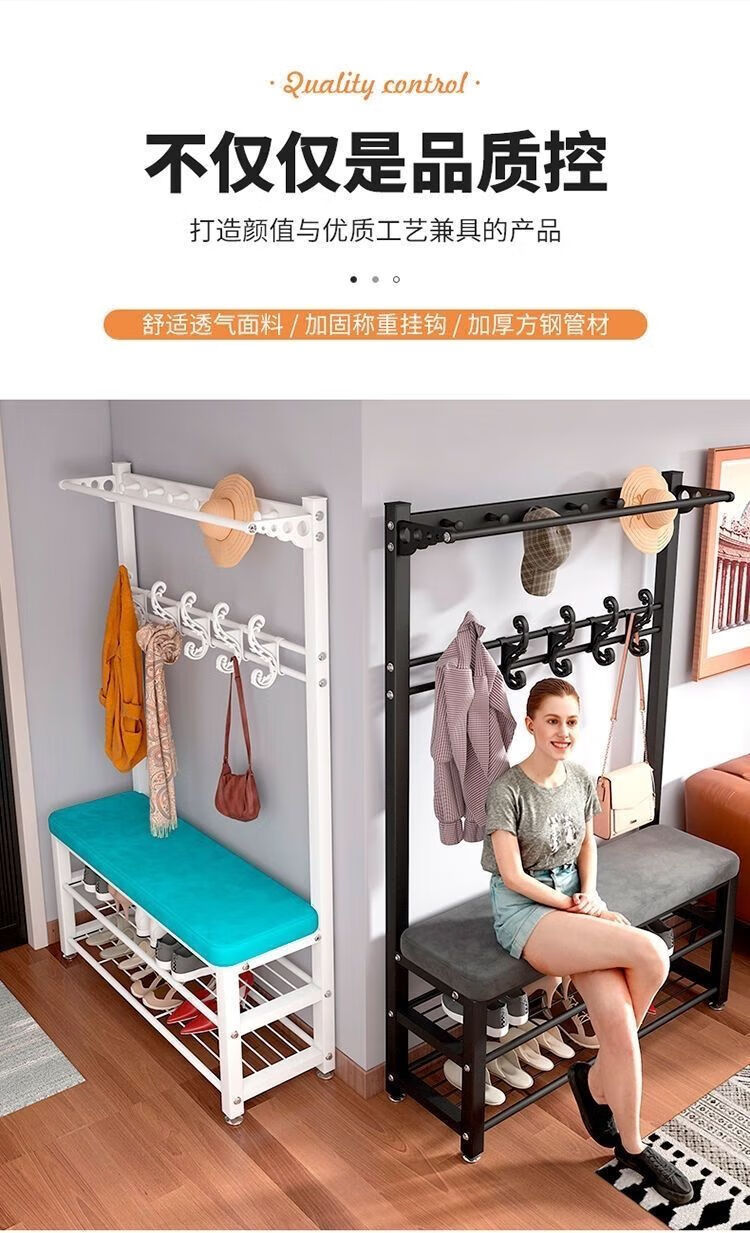倘然之家换鞋凳家用简易多功能衣帽架玄关置物架衣架落地立式门口可坐鞋凳 黑灰绒布-50cm【鞋凳+无衣帽架】