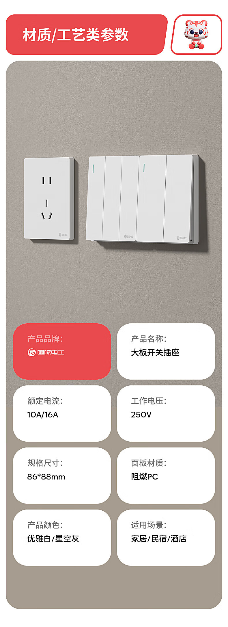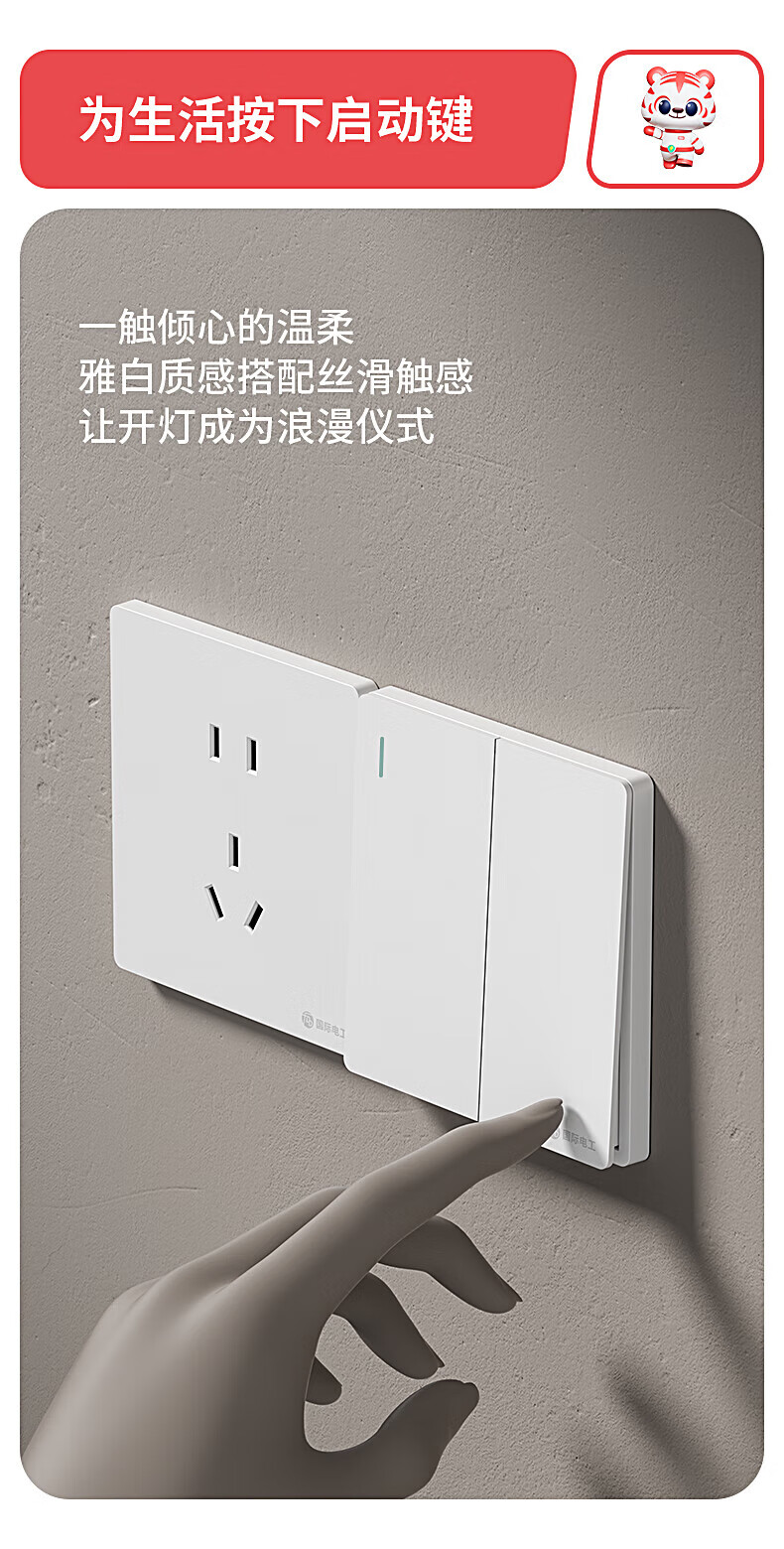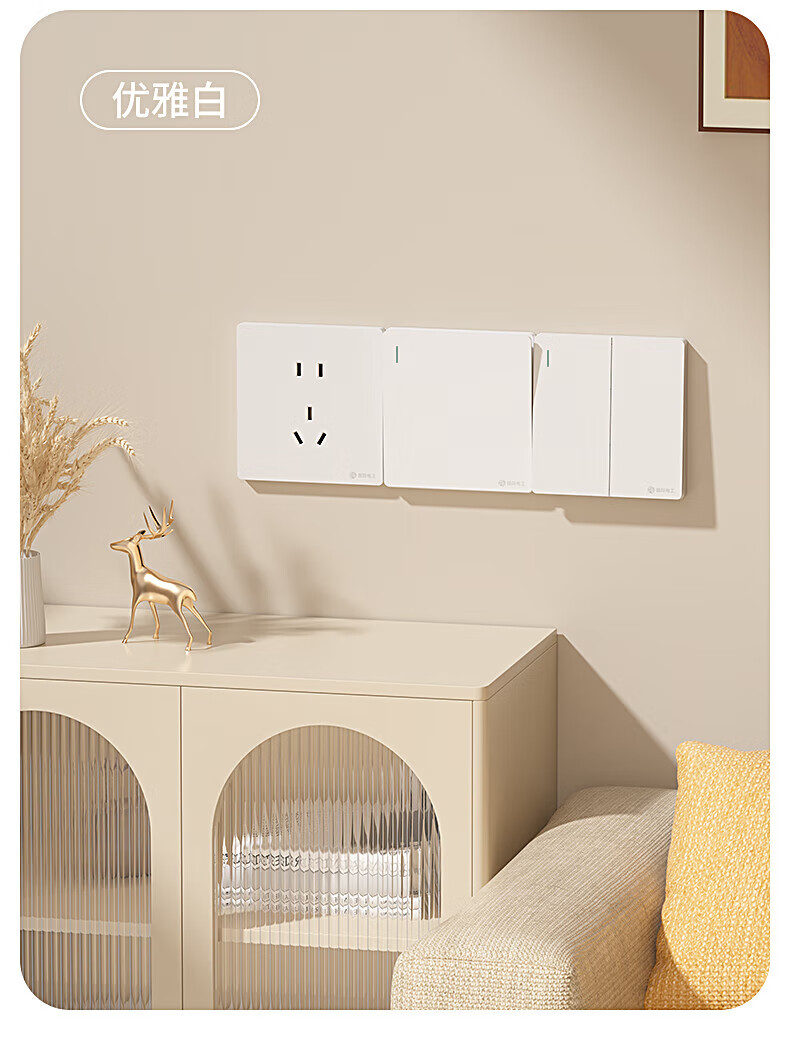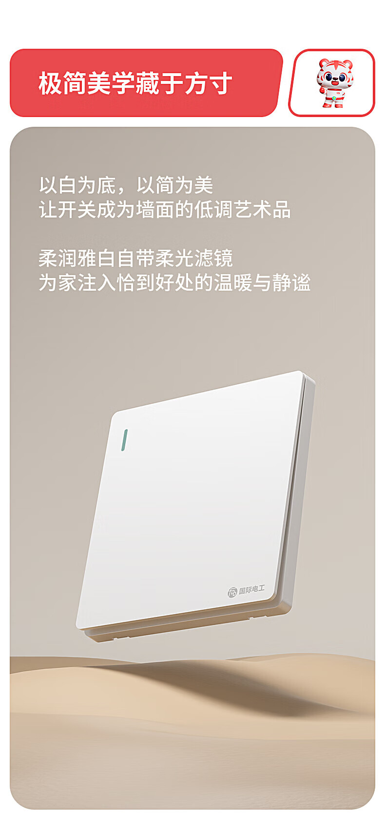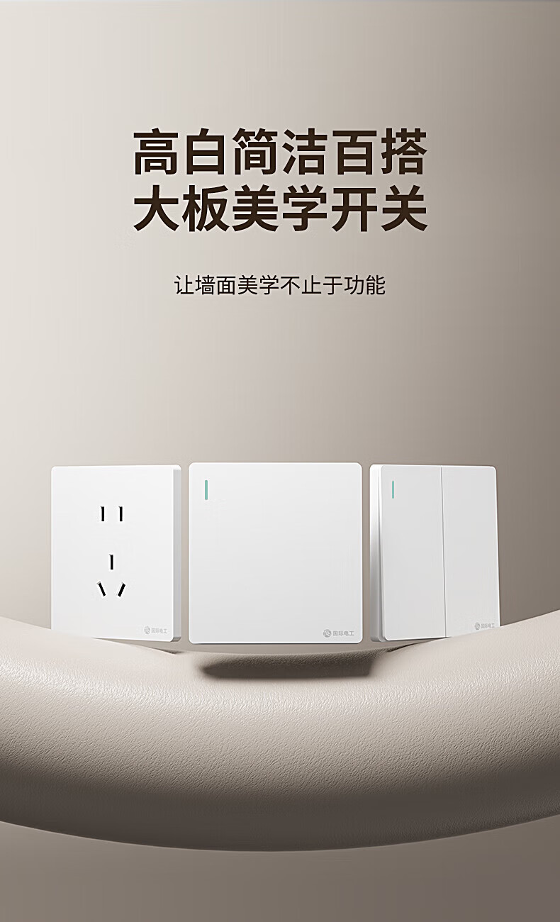 国际电工86型暗装时尚大板白色开关插座面板三开双控一开五孔家用空调16A 二开单控 开关 象牙白