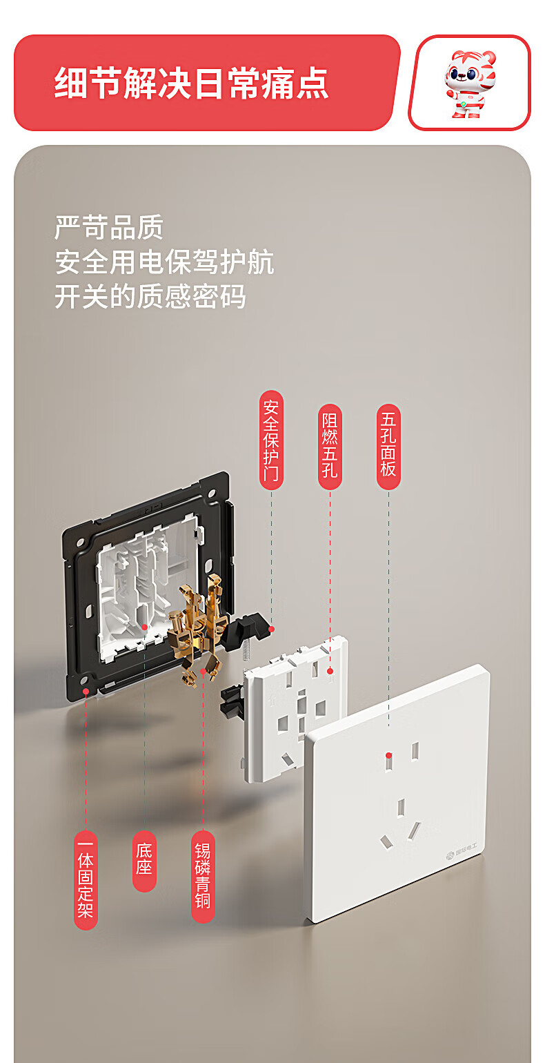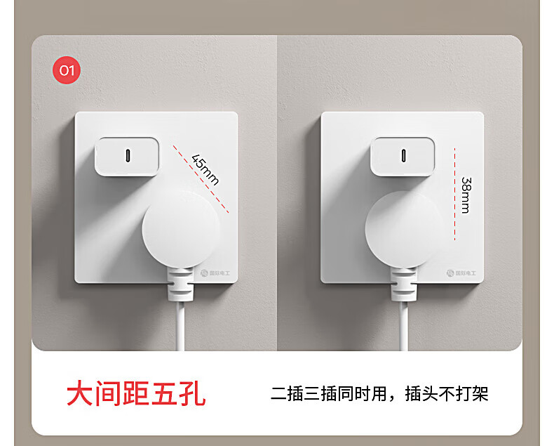 NVC雷士电工 开关插座 10a斜五孔插座 86型暗装插座面板 N25奶油白