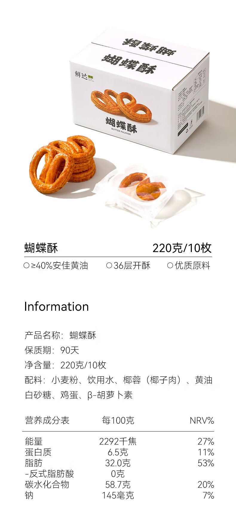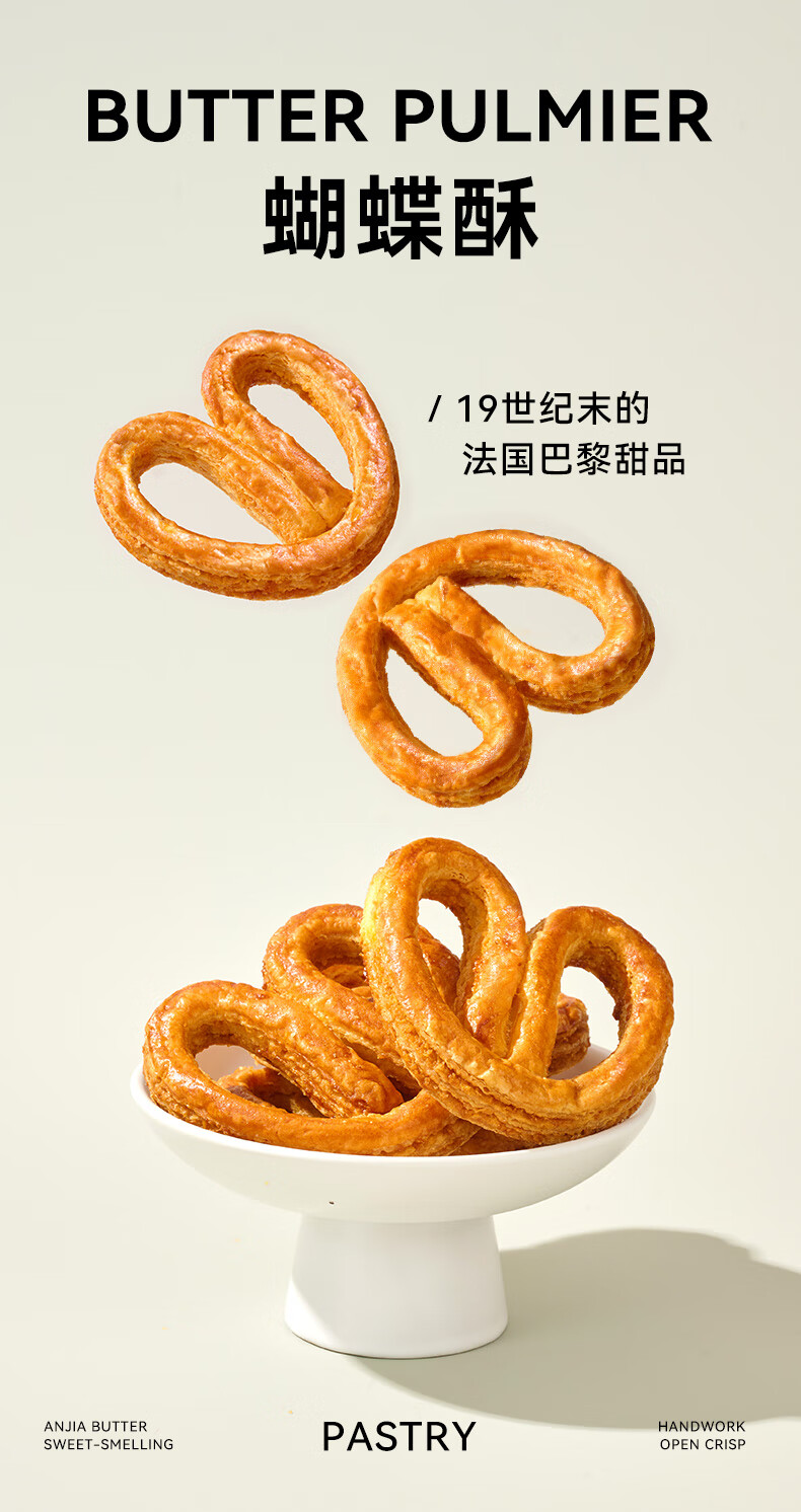 鲜达仓仓法式蝴蝶酥糕点饼干网红千层酥马蹄酥美食解馋小零食小吃休闲食品 2箱【≥40%安佳黄油-非起酥油】 10枚/220g/箱