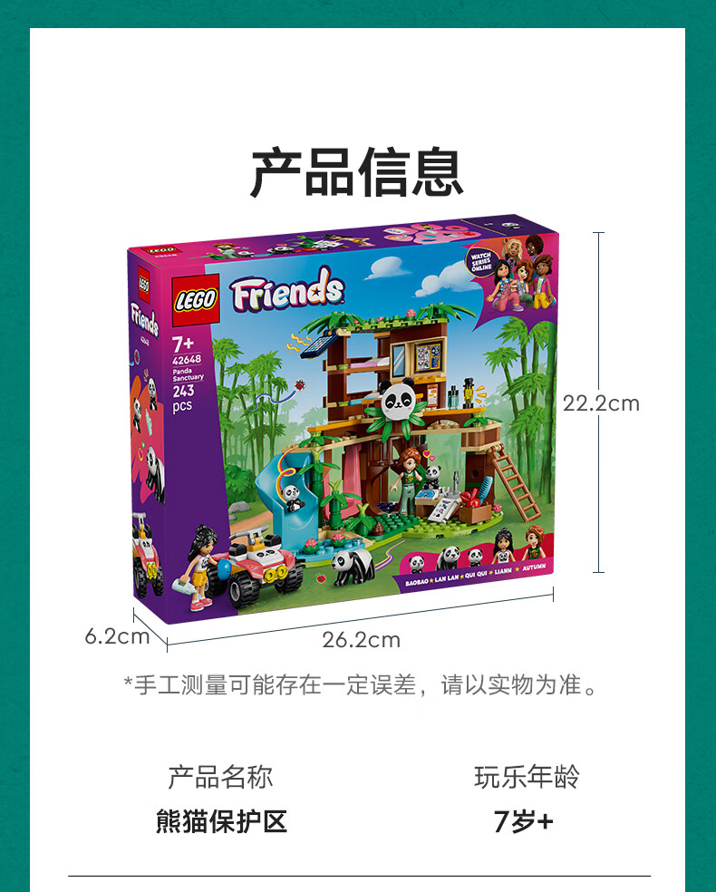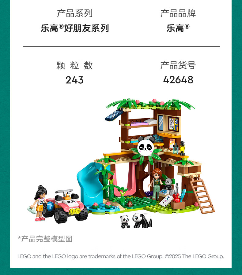 乐高(LEGO)积木拼装好朋友42648 熊猫保护区女孩儿童玩具生日圣诞礼物