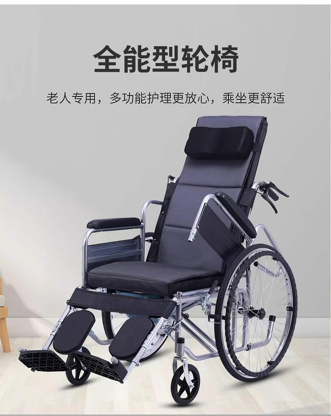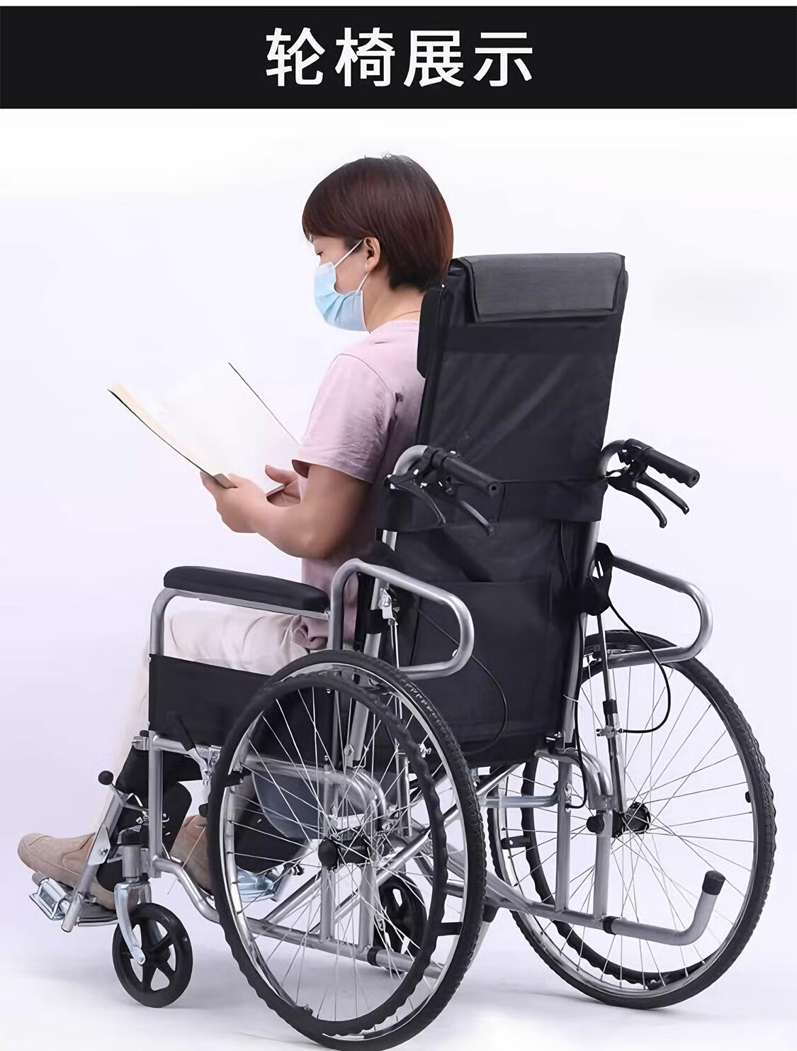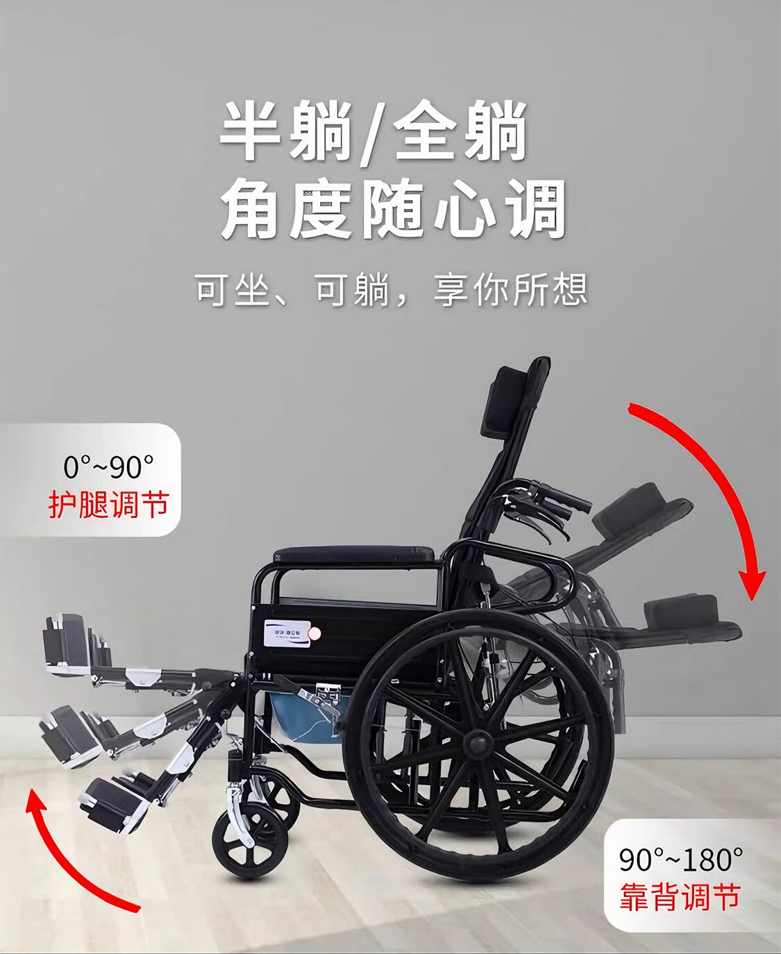 康立普(CANLIPE)轮椅瘫痪老人专用出行轻便折叠全躺多功能可抬腿洗澡大小便手推车 【主图热卖】扶手可掀+轻便铝圈轮+网垫整体可拆
