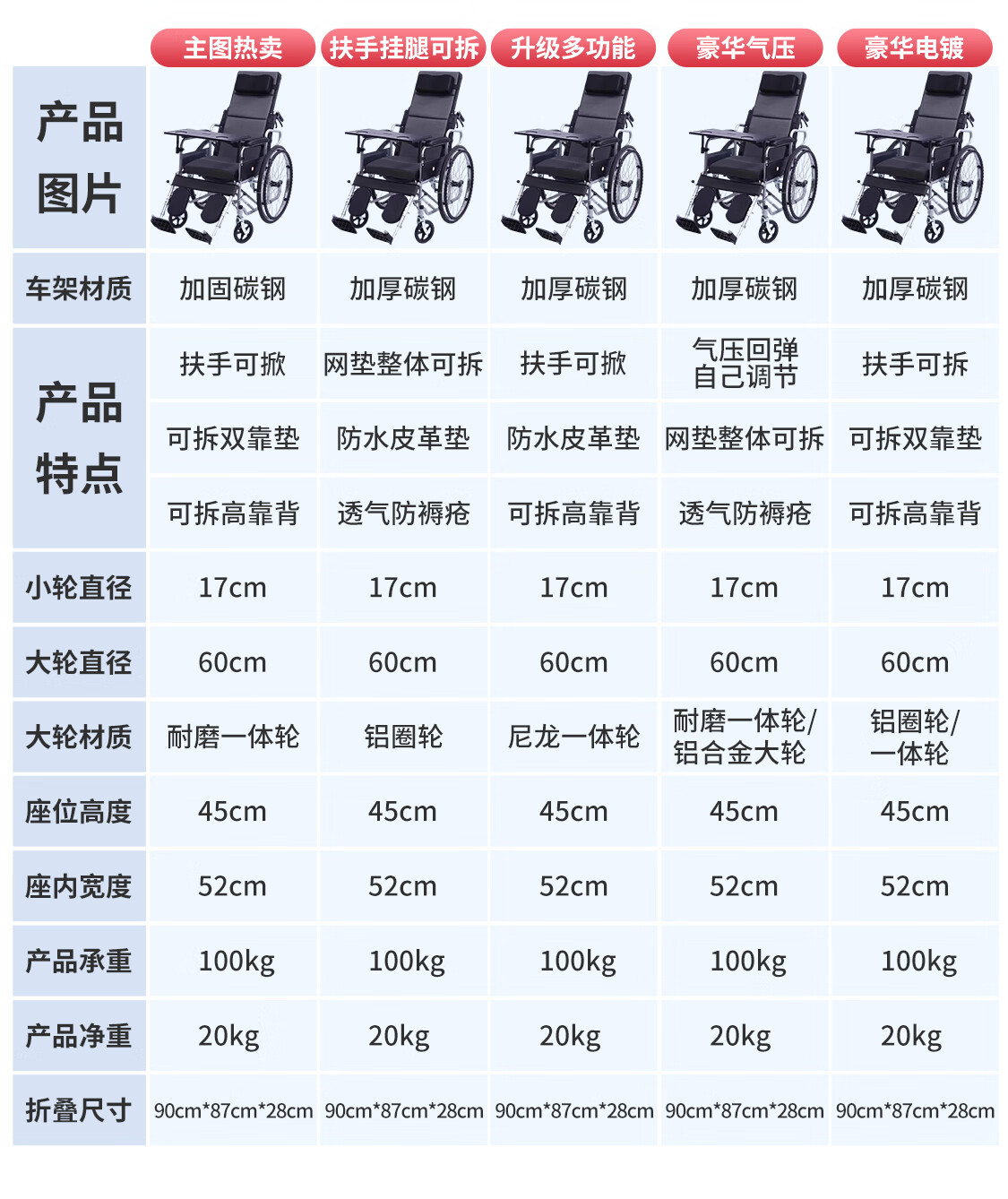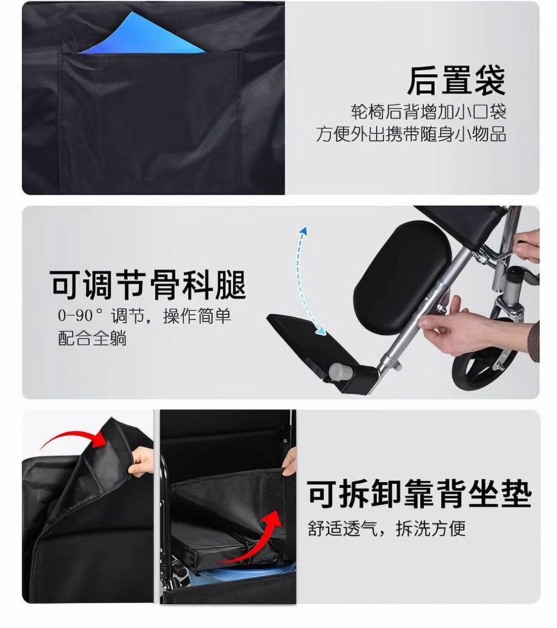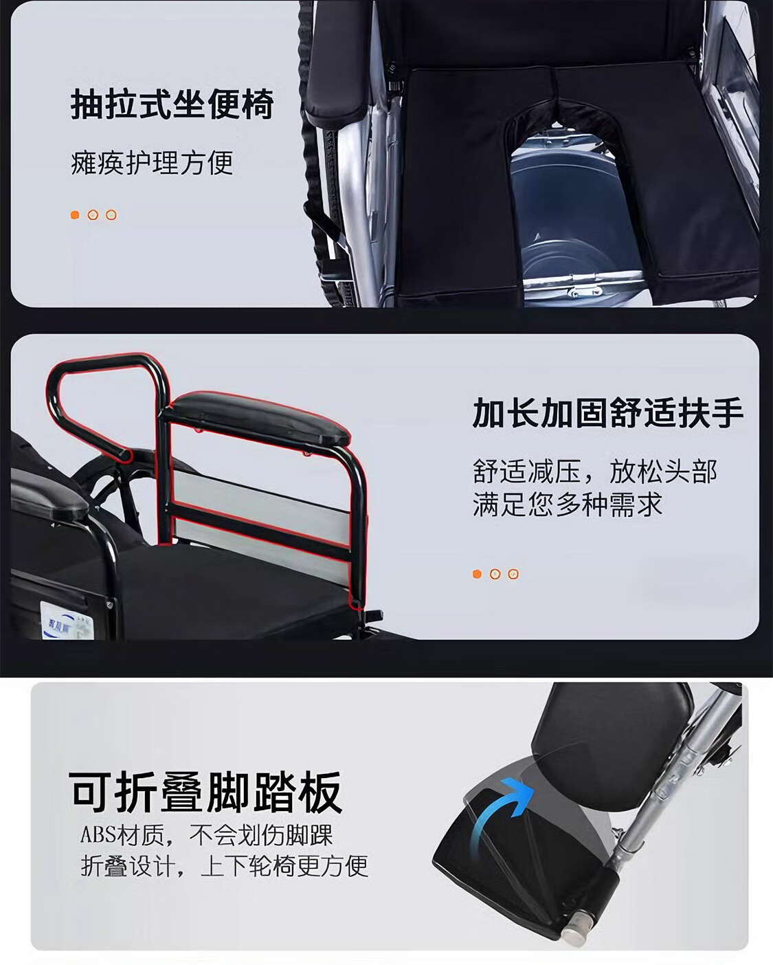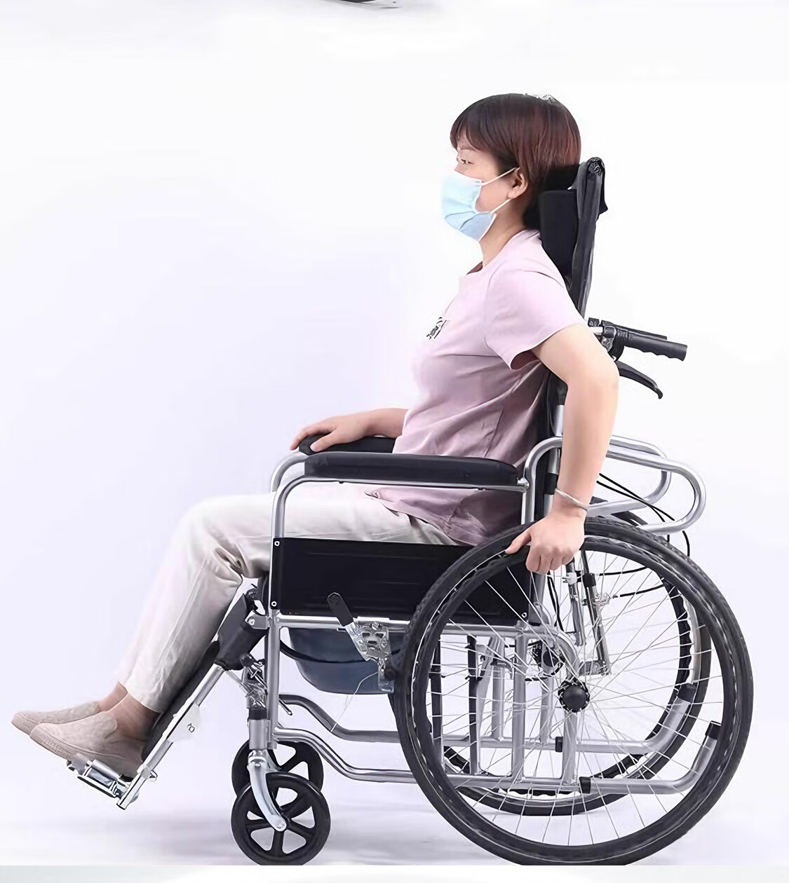 康立普(CANLIPE)轮椅瘫痪老人专用出行轻便折叠全躺多功能可抬腿洗澡大小便手推车 【主图热卖】扶手可掀+轻便铝圈轮+网垫整体可拆