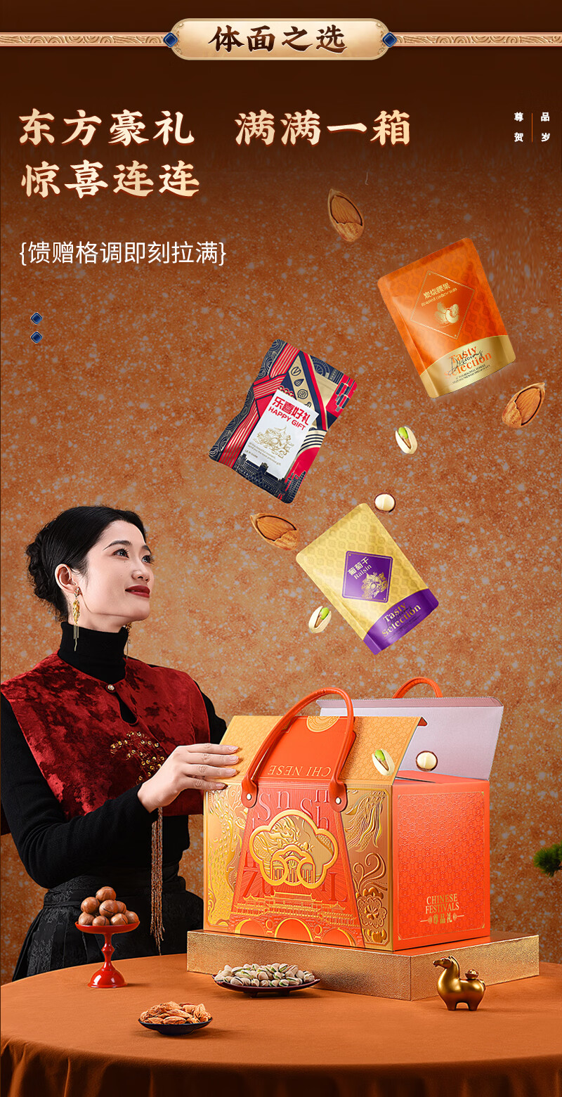 洽多饱年货坚果礼盒送礼干果零食大礼包开心果新年礼品过年走亲戚团购 1520g/16件超3斤【含开心果】