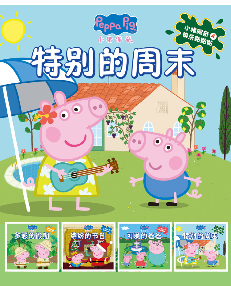 丹米琦小猪佩奇儿童卡通贴纸本游戏书粘贴画男女孩玩具礼物3-6岁4本